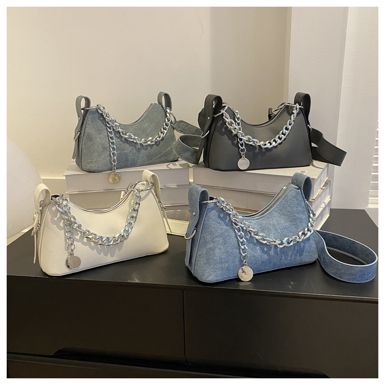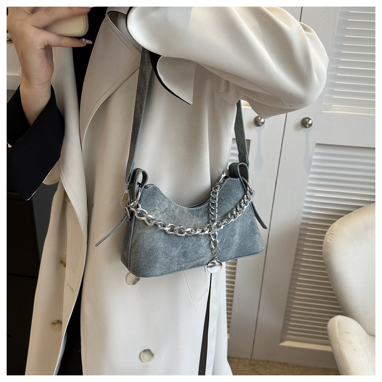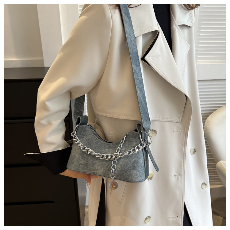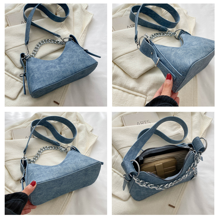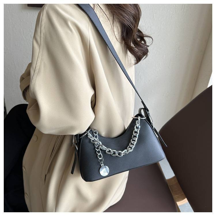 2023 nuevo bolso de media luna casual simple bolso de las axilas retro ins bolsa de cadena de textura de moda bolsa pequeña portátil para mujer