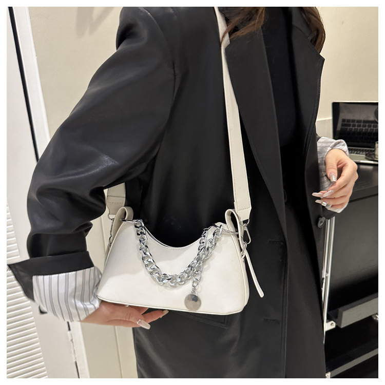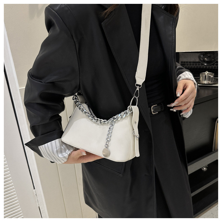 Bolso de mano de cadena de color sólido debajo de la axila para mujeres 2024 nuevo estilo estilo extranjero bolso de hombro de moda textura temperamento mochila casual