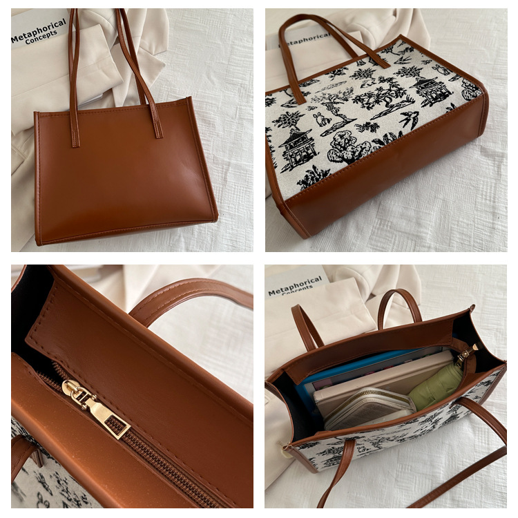 2024 moda de invierno de este año popular color sólido empalme retro textura de viaje coreano temperamento tote bolso de hombro