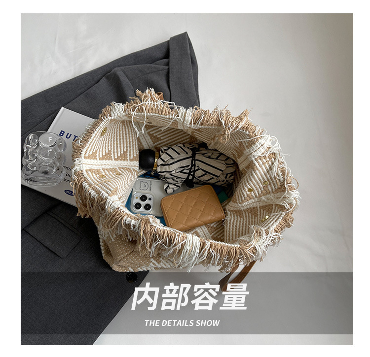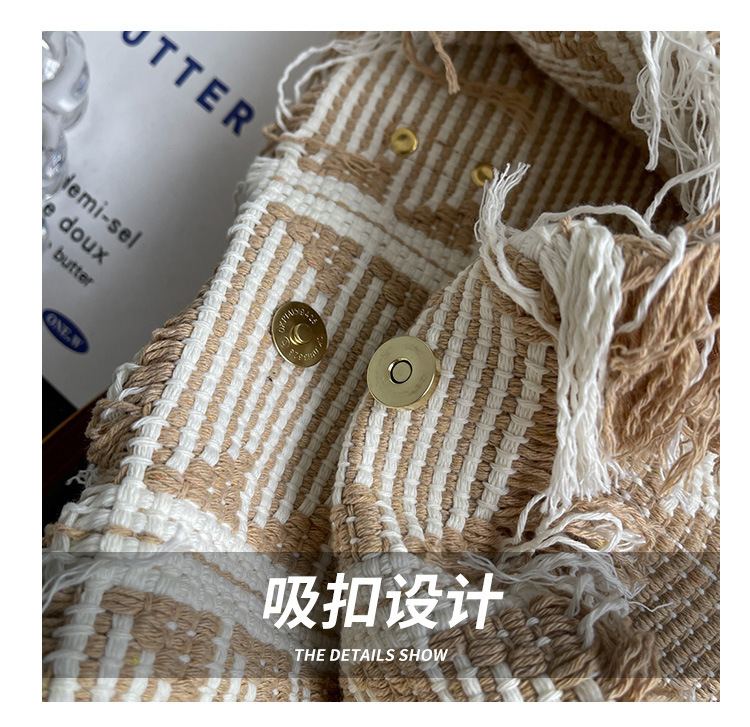Bolsa de algodón de paja de verano, bolsa de hombro simple, bolsa de celosía de tela de tela retro creativa, bolsa para móviles, bolsa pequeña para mujeres