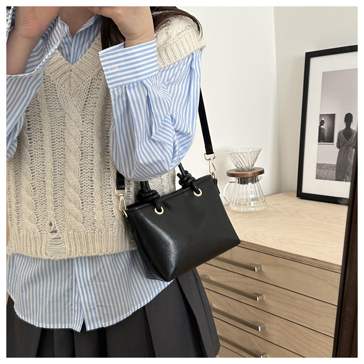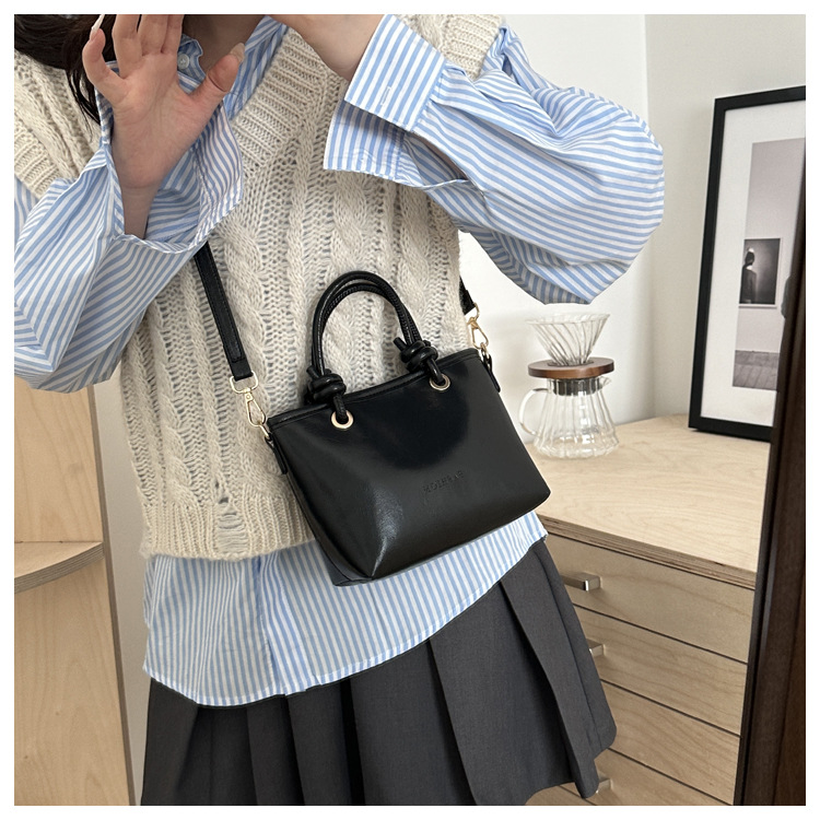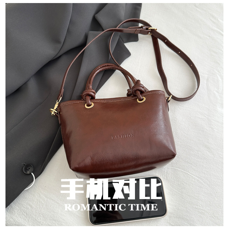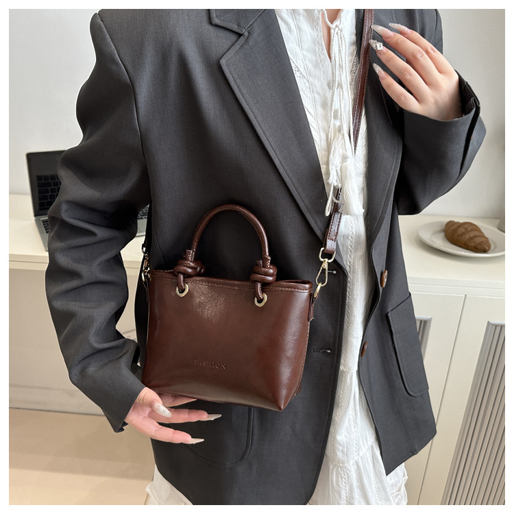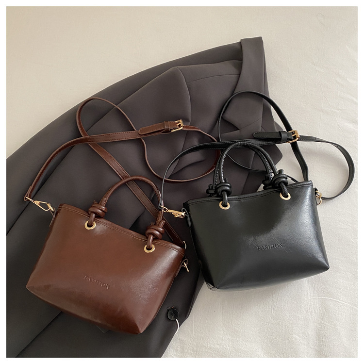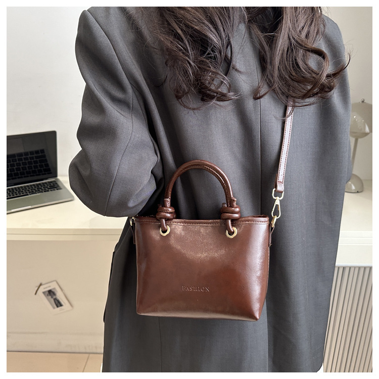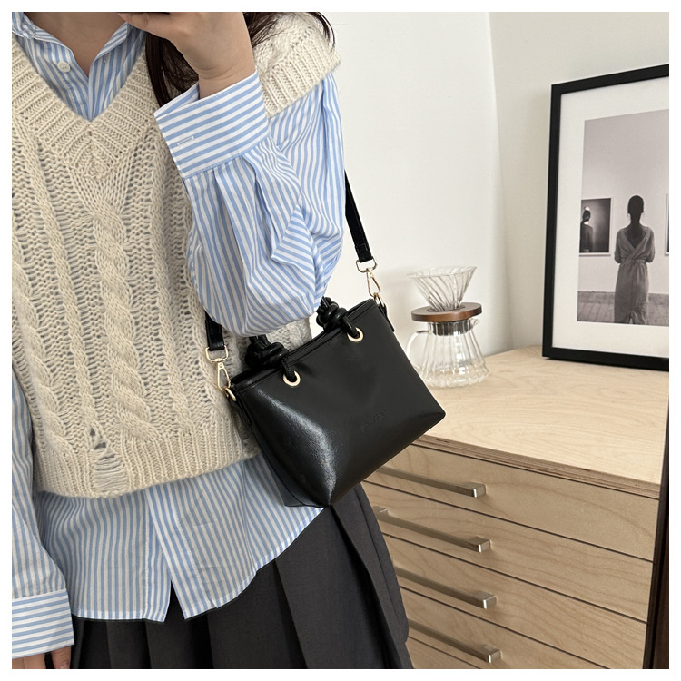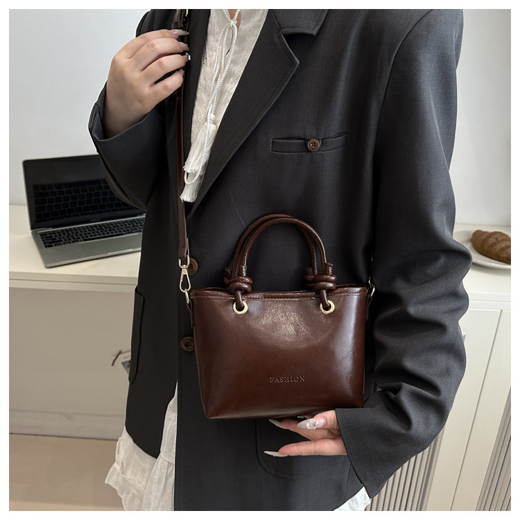 Bolso de moda simple 2025 primavera nuevo retro textura bolso de cubo de moda color sólido viaje mochila de hombro
