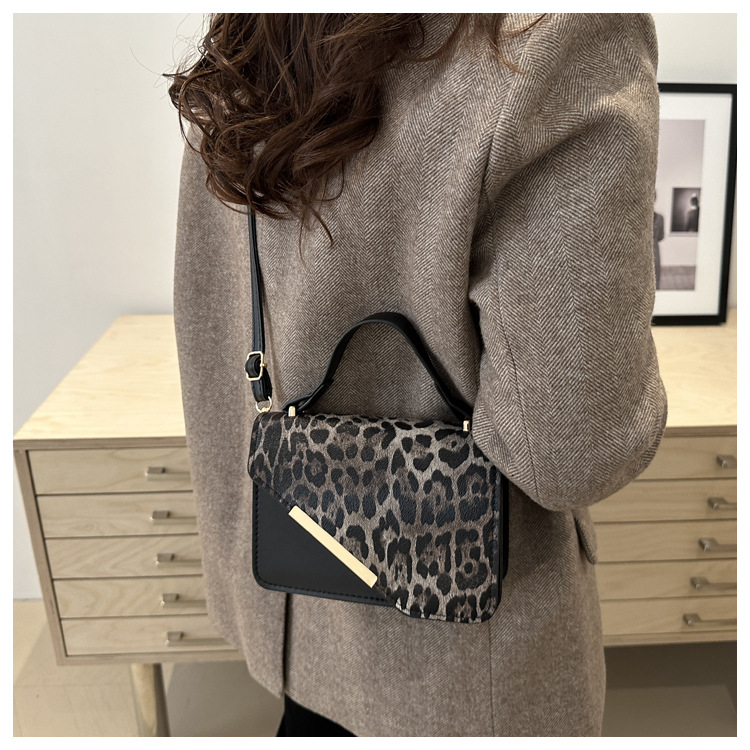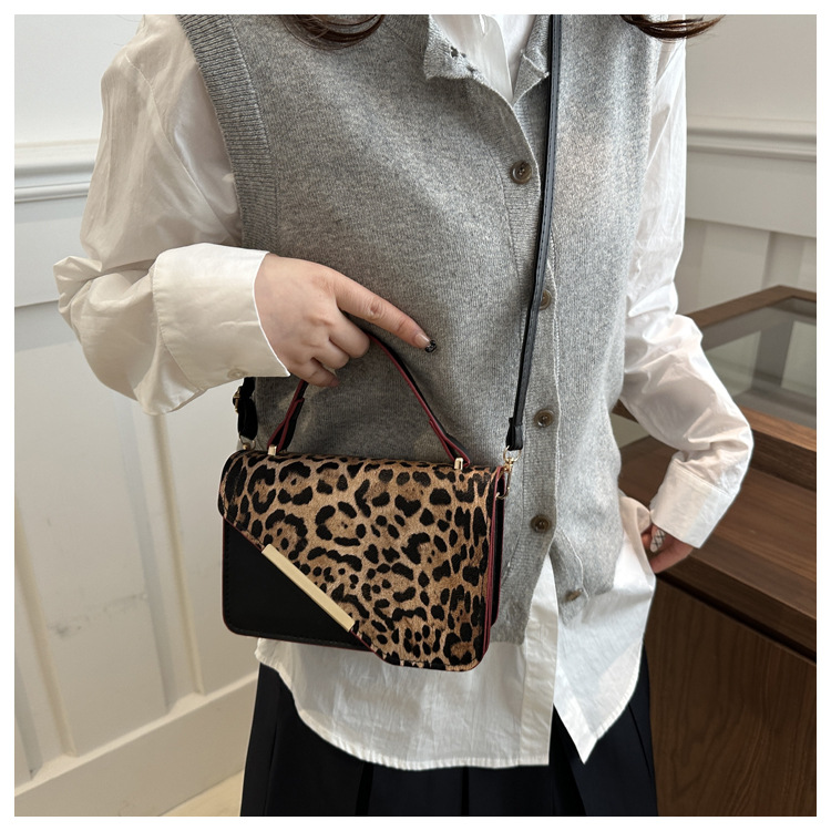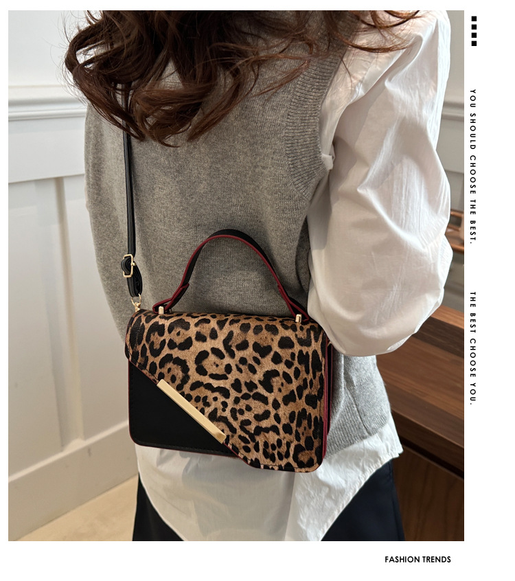 Niche Zhong bajo la axila bolsa de mujer de gran capacidad 2025 nuevo nicho de primavera estampado leopardo retro moda empalme bolso cuadrado