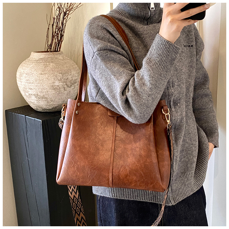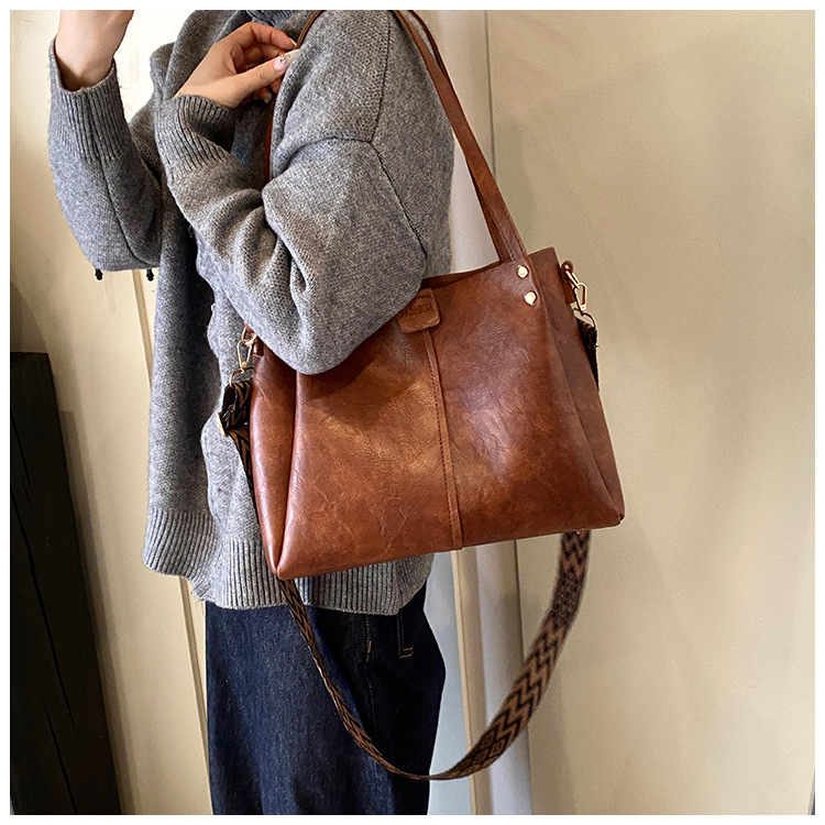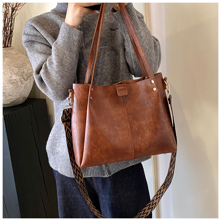 Europa y los Estados Unidos retro gran capacidad de transporte tote2025 nuevo bolso textura ancha cintura de hombro mochila bolso de hombro