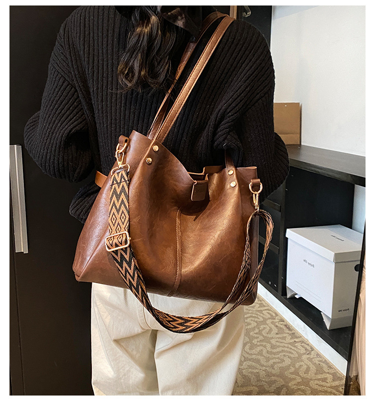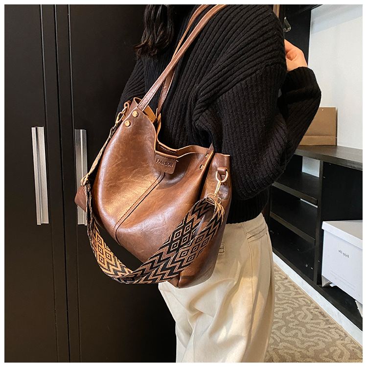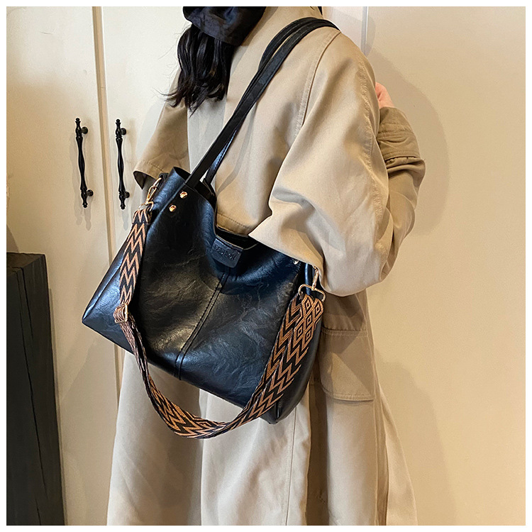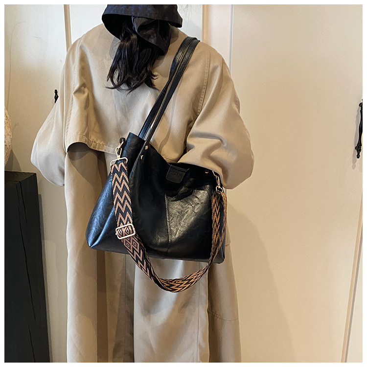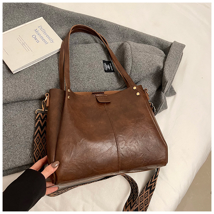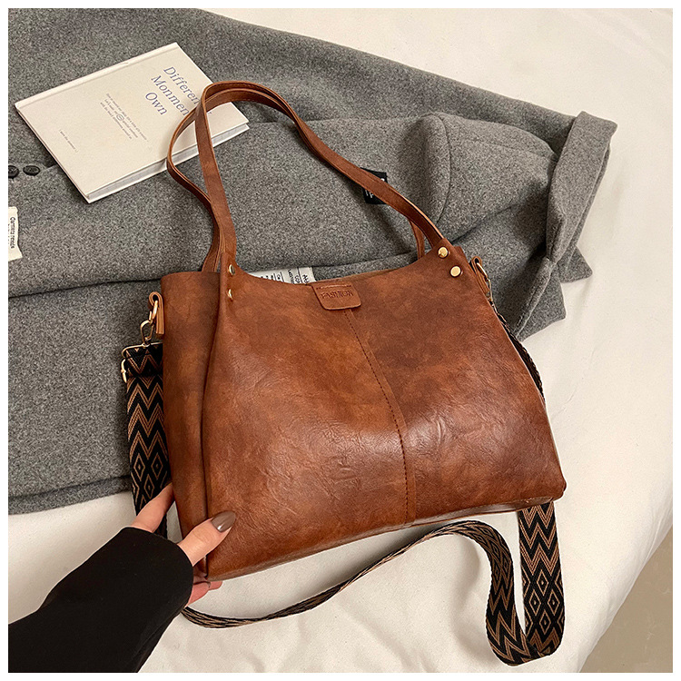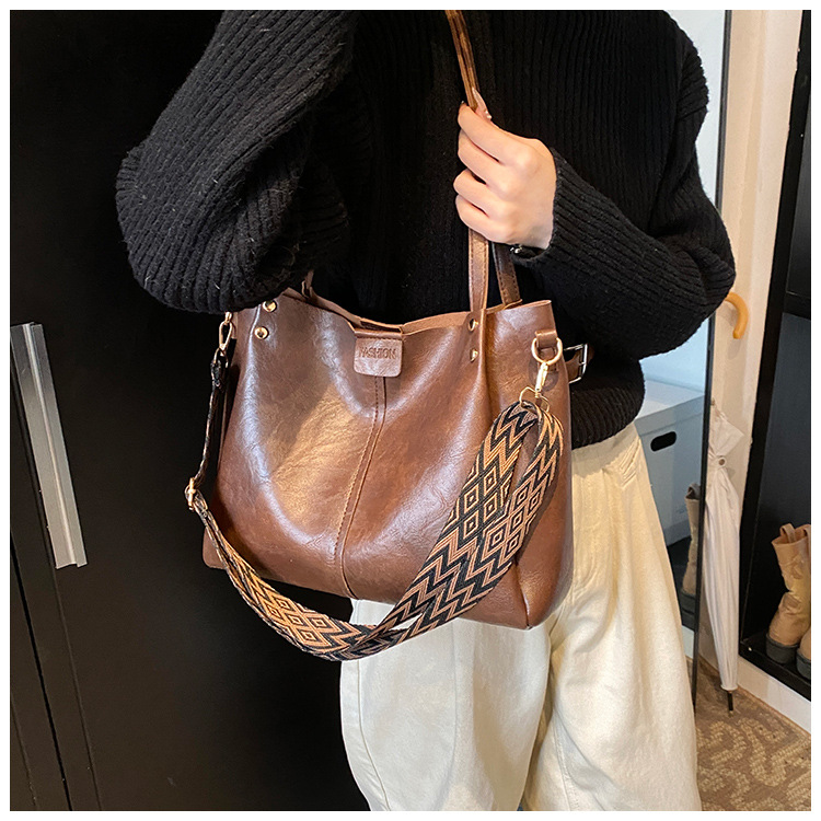 Moda 2024 invierno nuevo tipo de correa de hombro ancha estilo extranjero simple bolso de hombro casual de color sólido bolso de transporte ligero