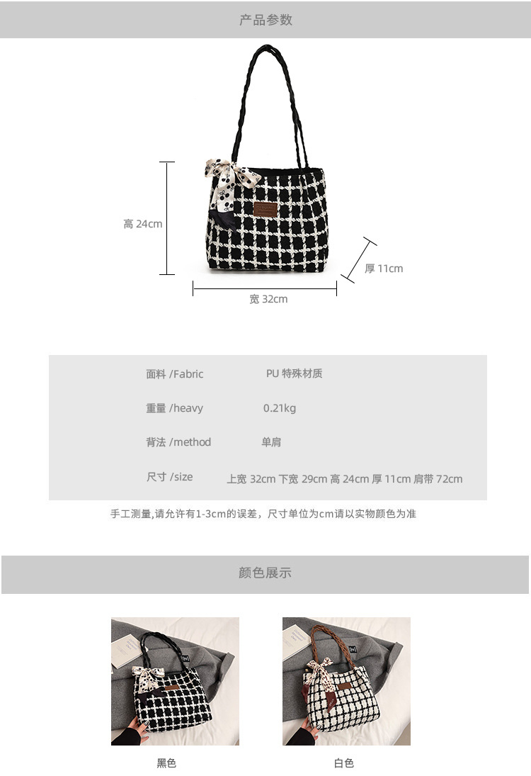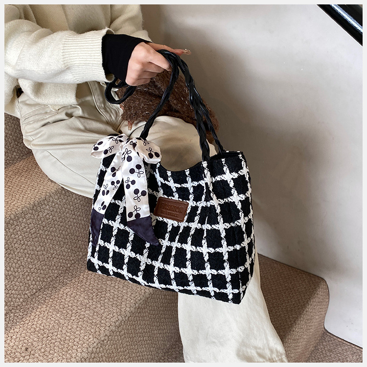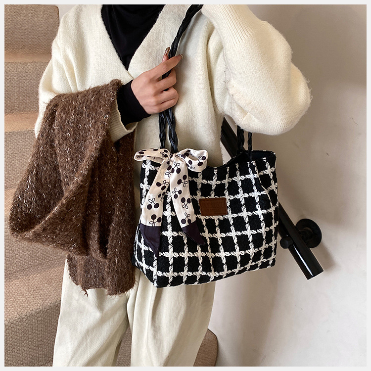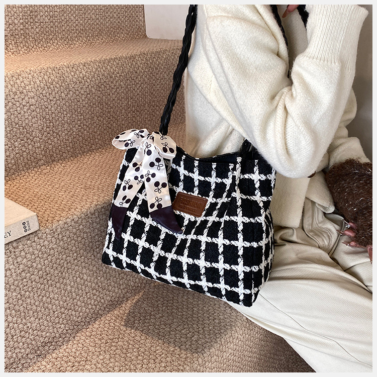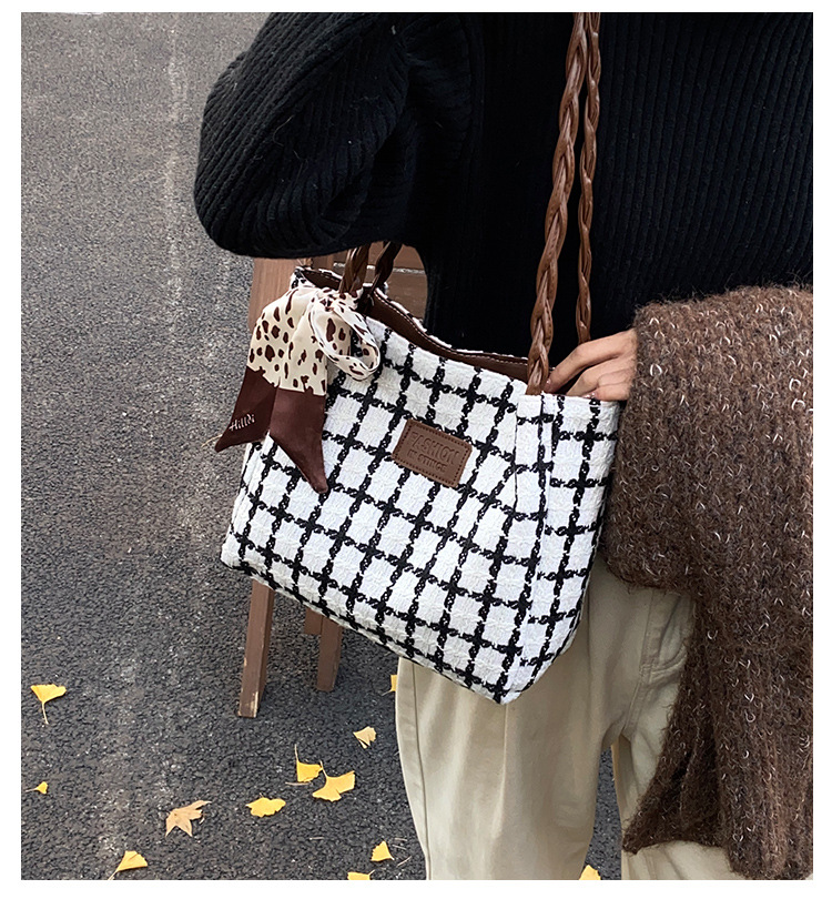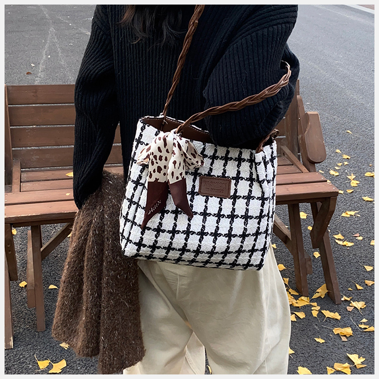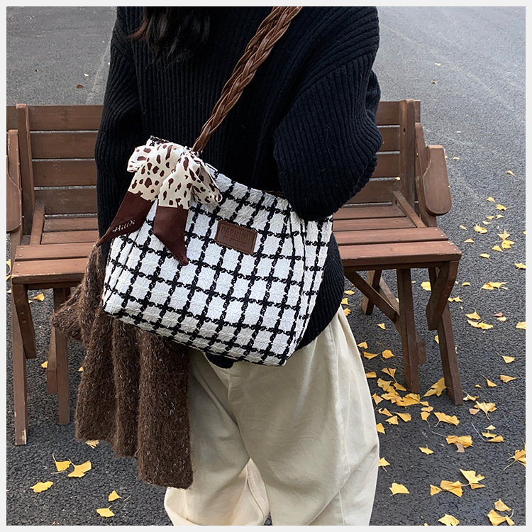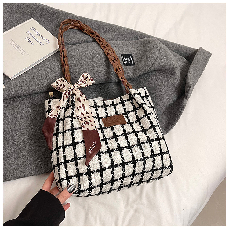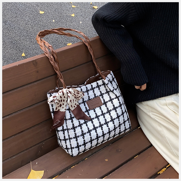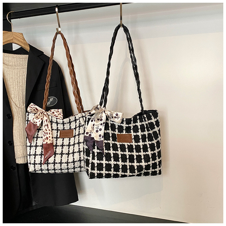 Escuela de tendencia brazo bolso 2025, primavera nuevo tween cuadriculado de color contrapeso trenzado viaje bolso de hombro de mujer