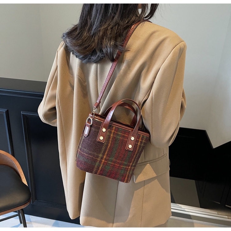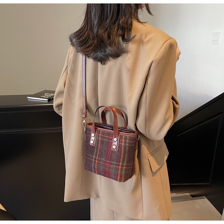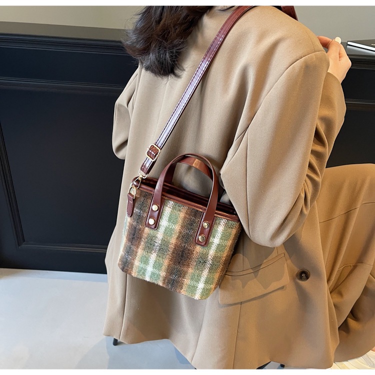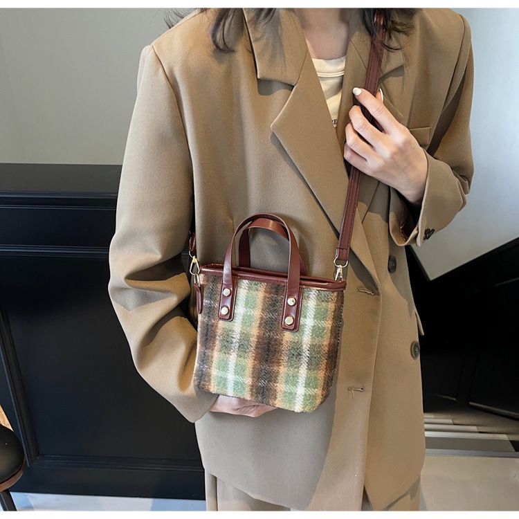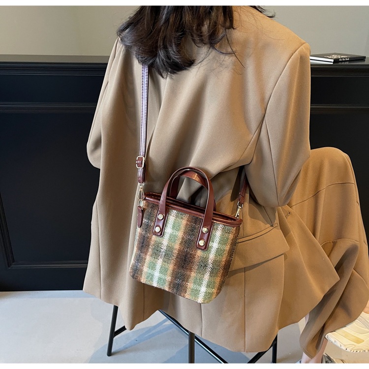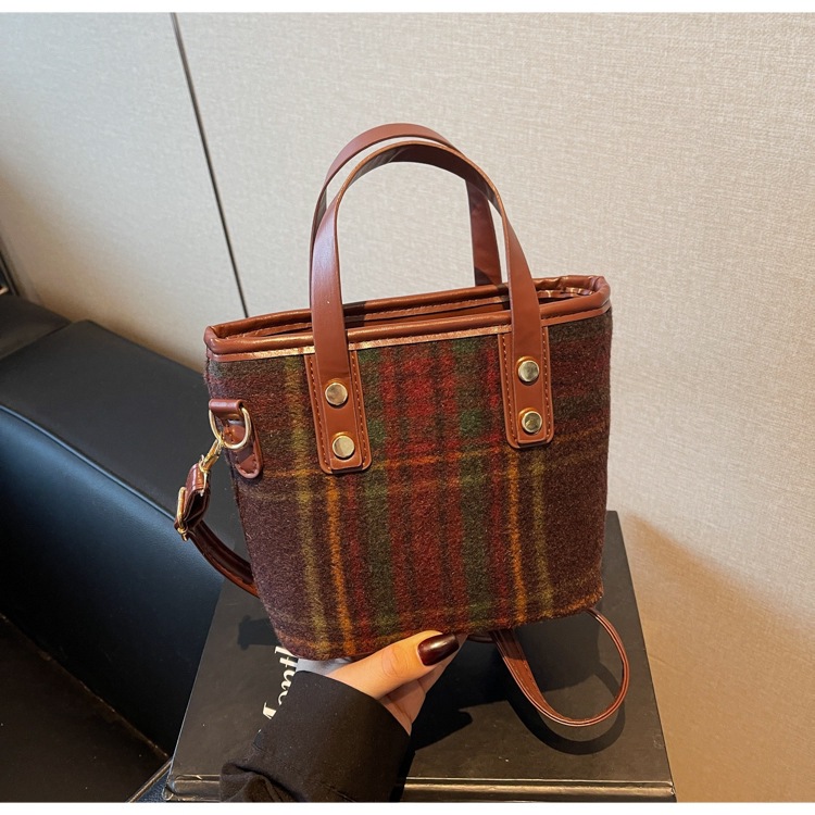 Bolsa de mano de invierno a cuadrillas versátiles nueva moda 2024 bolso de hombro popular retro bolso de balde de mujer