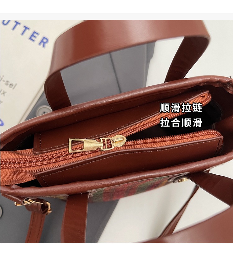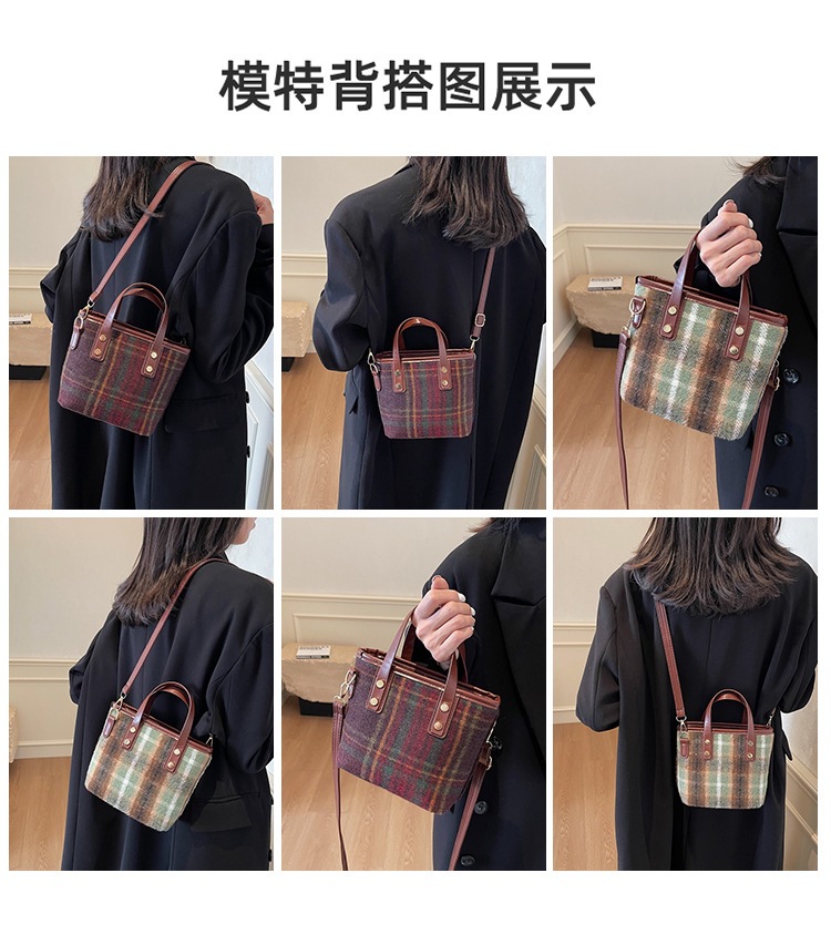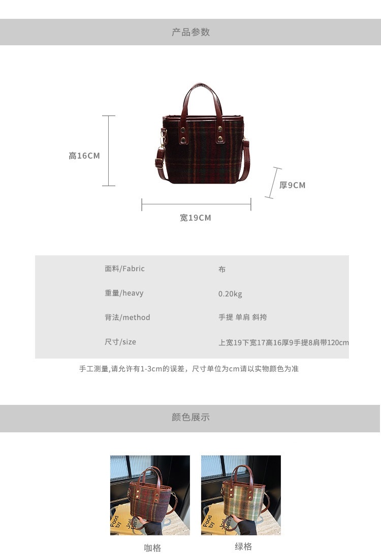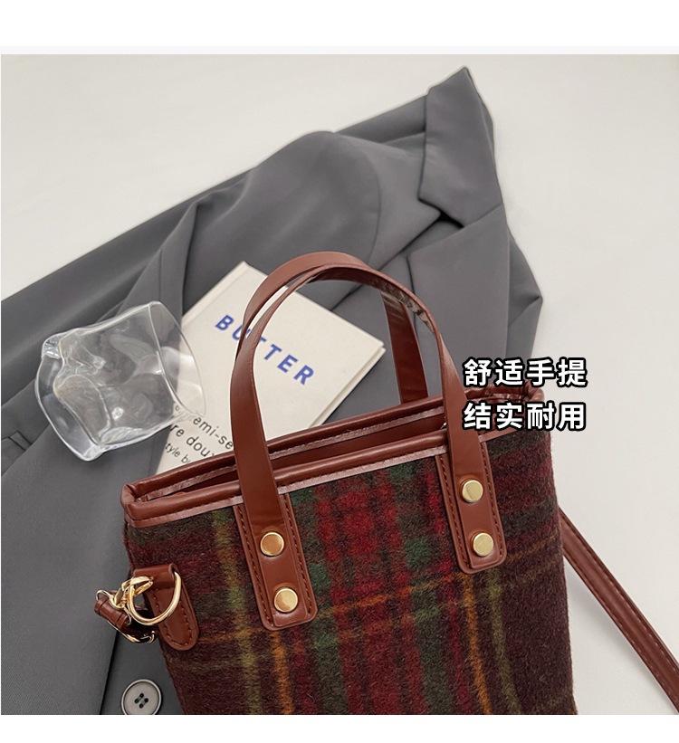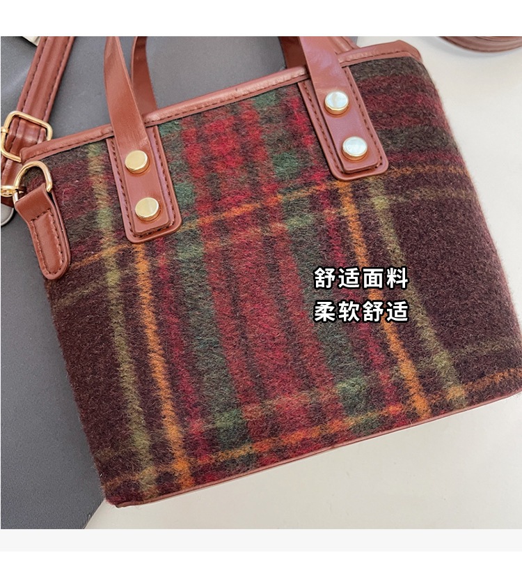 Bolsa de mano de invierno a cuadrillas versátiles nueva moda 2024 bolso de hombro popular retro bolso de balde de mujer