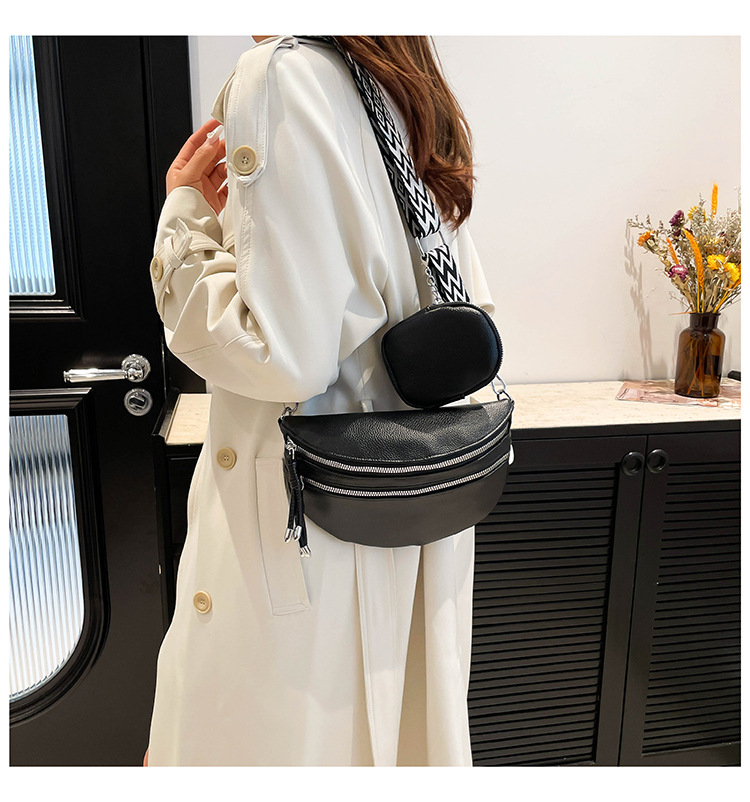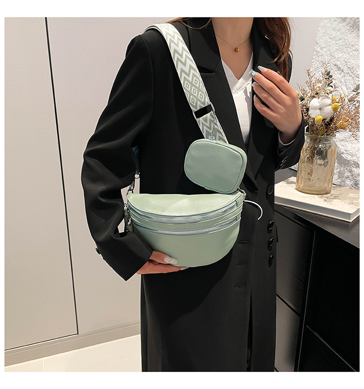 Moda 2024 invierno nuevo tipo de correa de hombro ancha estilo extranjero simple bolso de hombro casual de color sólido bolso de transporte ligero