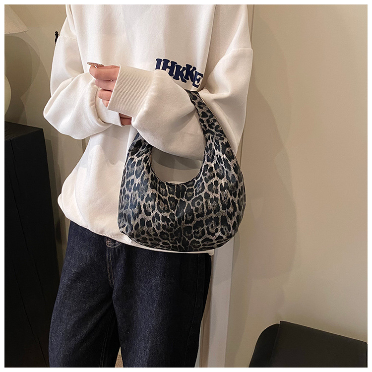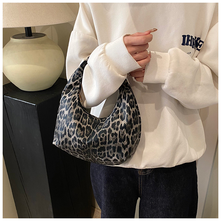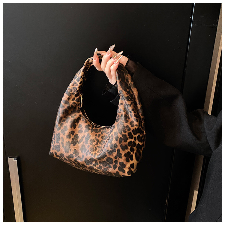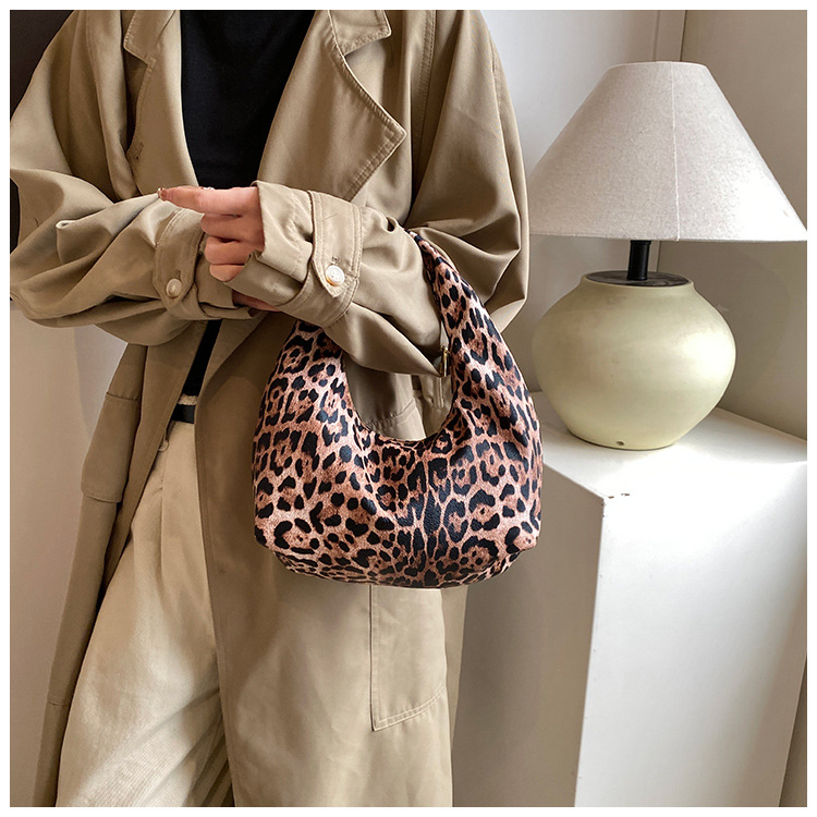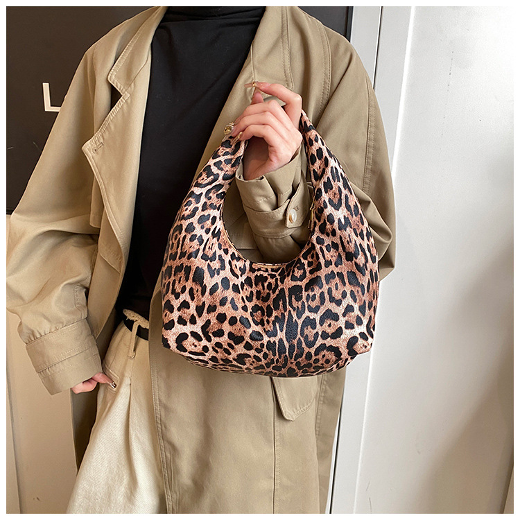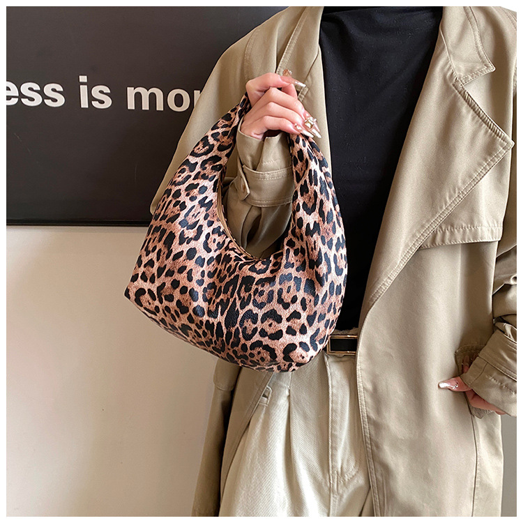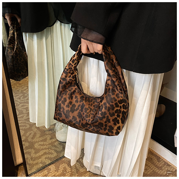 Otoño y invierno nuevo bolso de hombro de lana de viento de gran capacidad de moda estampado de leopardo bolso de lana de tote bolso retro debajo de la axila