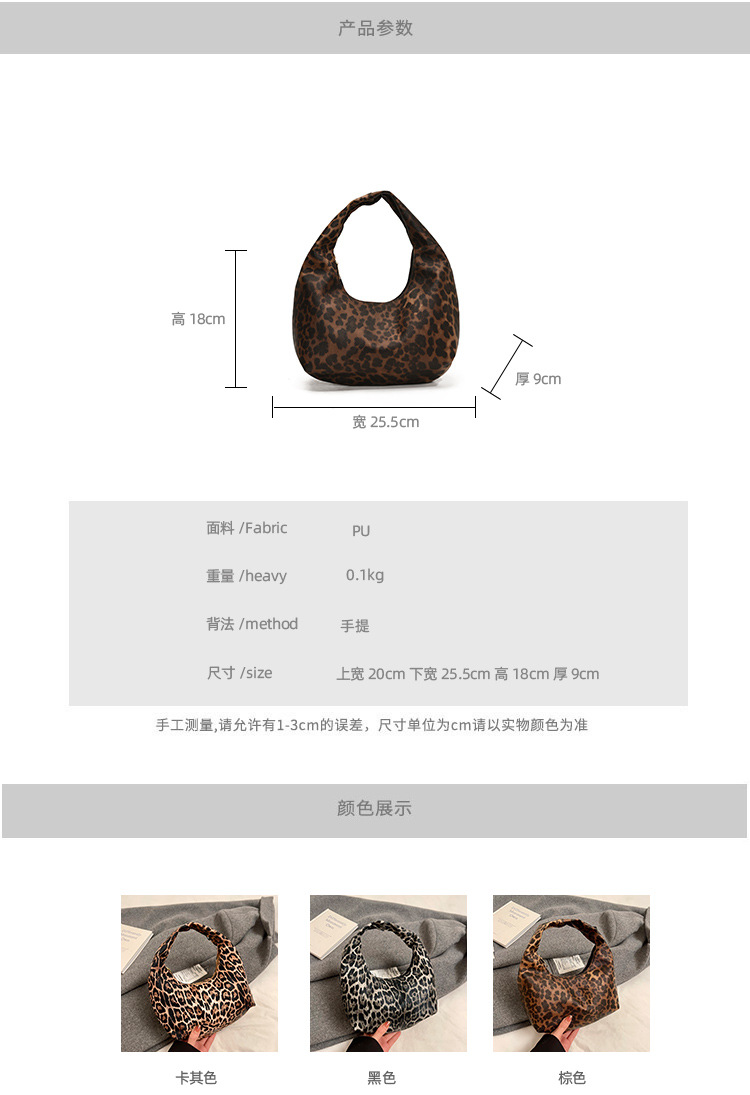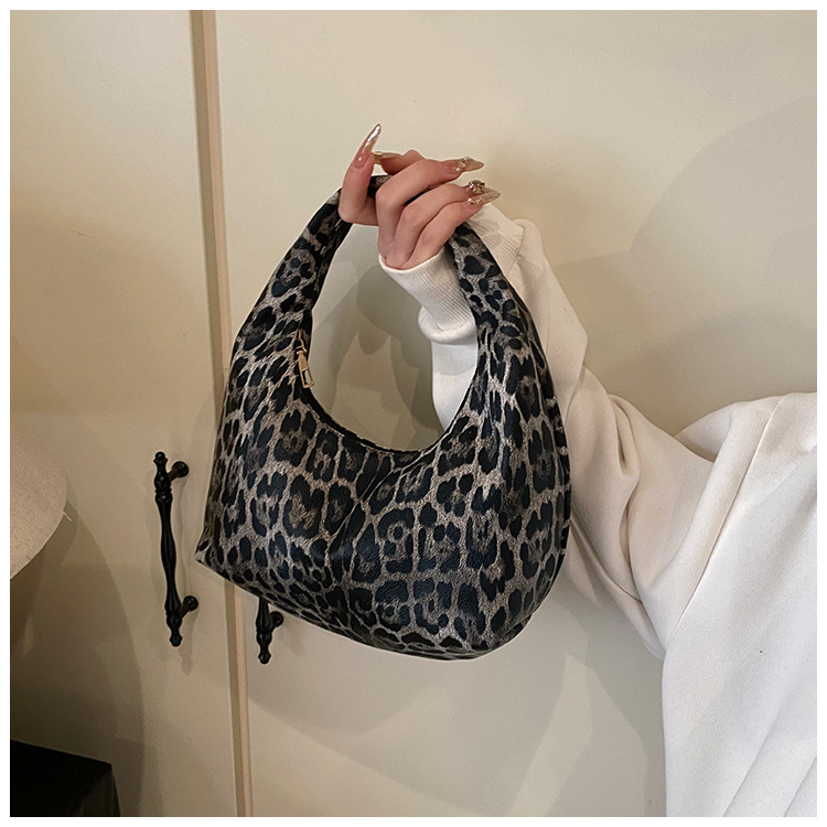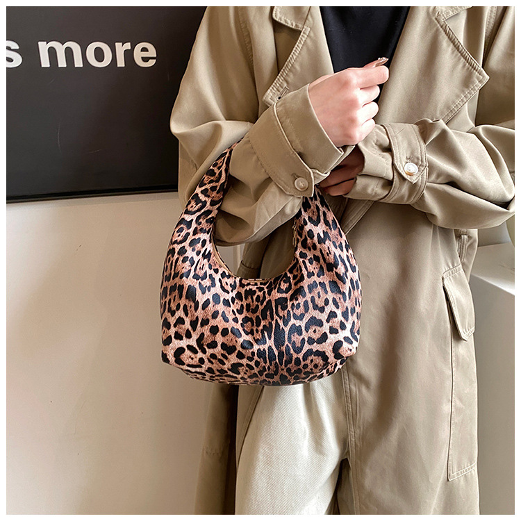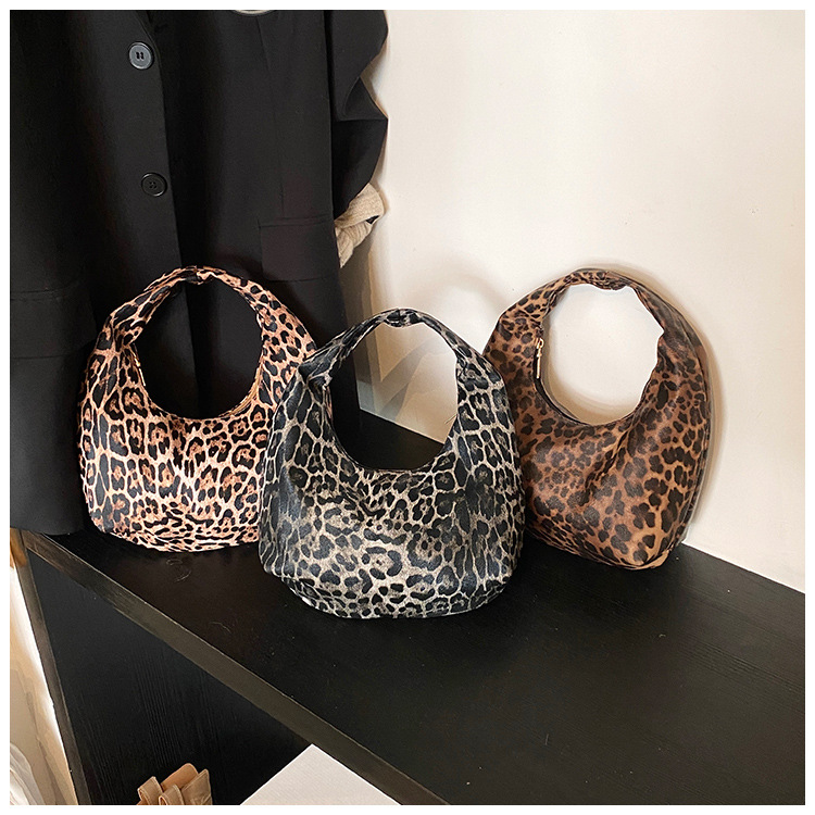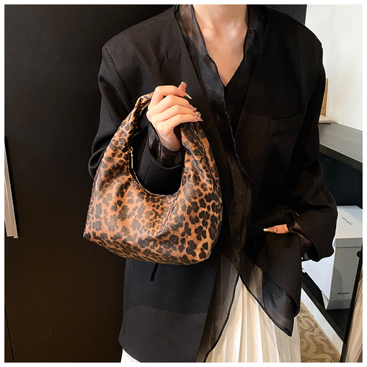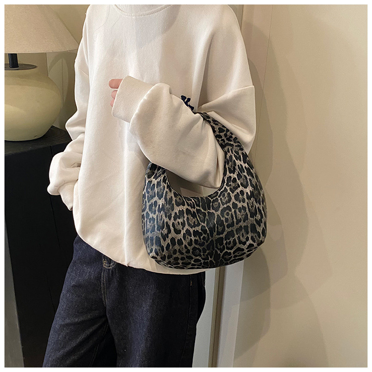 Otoño y invierno nuevo bolso de hombro de lana de viento de gran capacidad de moda estampado de leopardo bolso de lana de tote bolso retro debajo de la axila