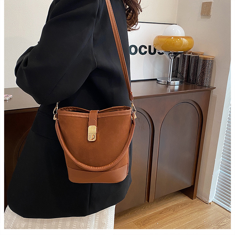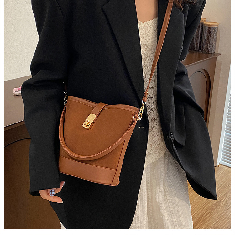 Bolso de invierno para mujeres 2024 nuevo estilo retro simple nicho de moda diseño de hombro mochila de moda moda bolso de cubo portátil