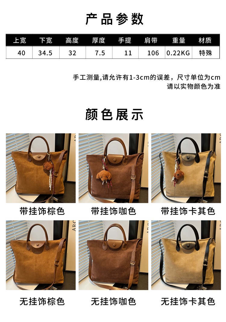 Bolsa de mano de peluche de gamuz para mujeres 2024 nuevo otoño y invierno mirad retro bolso de hombro de gran capacidad tote