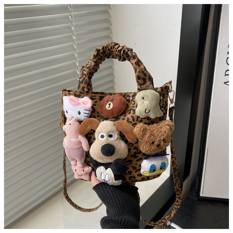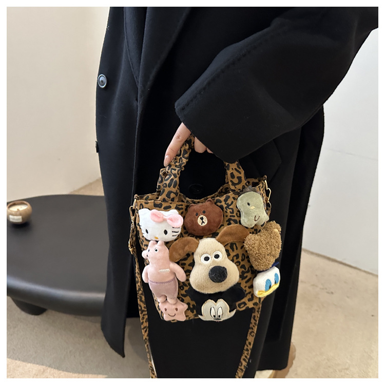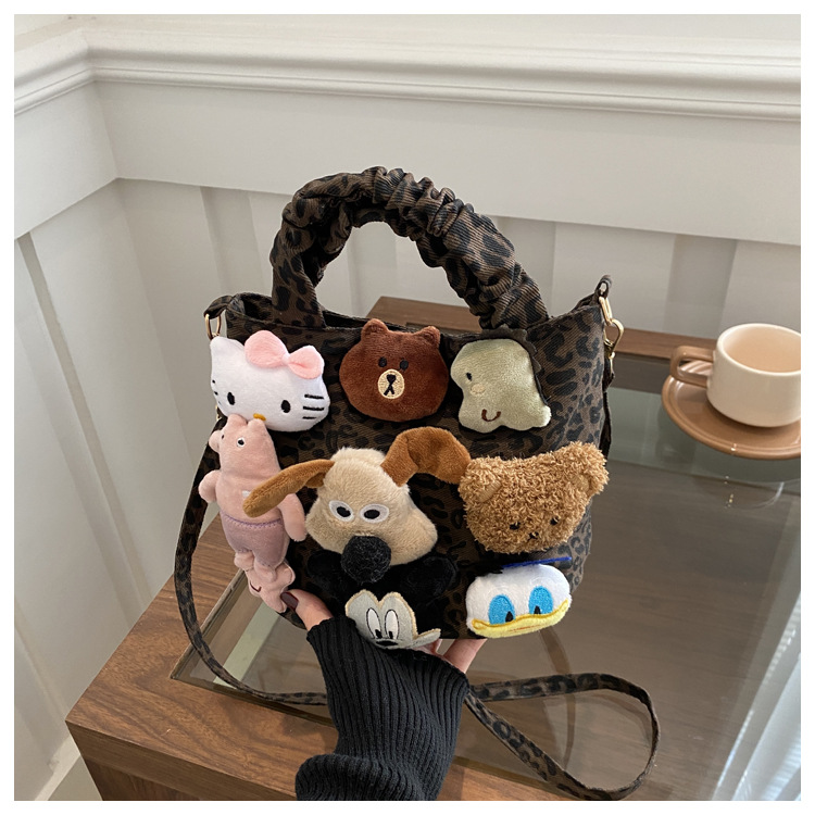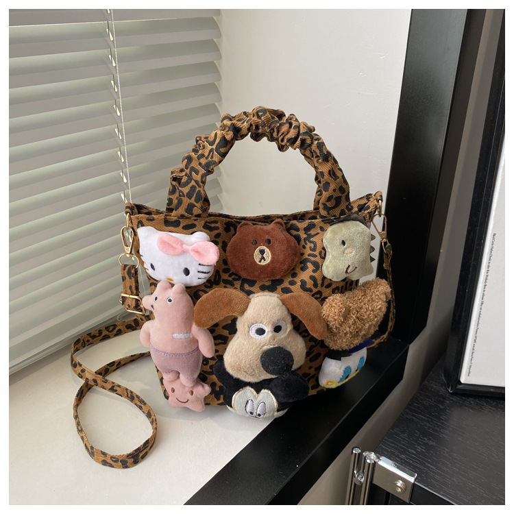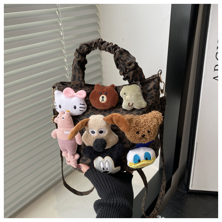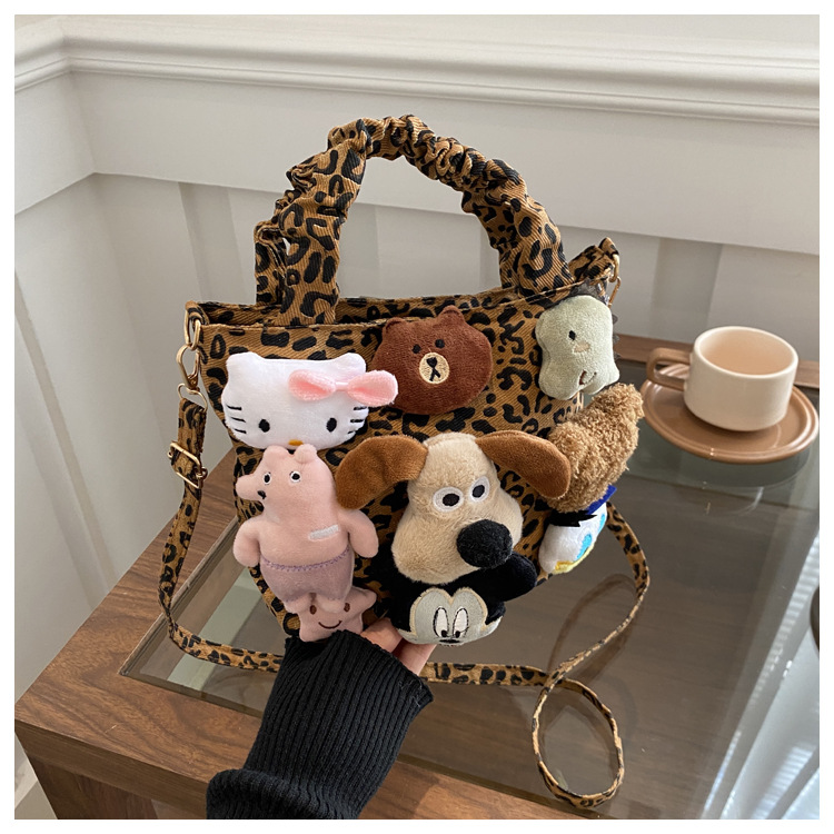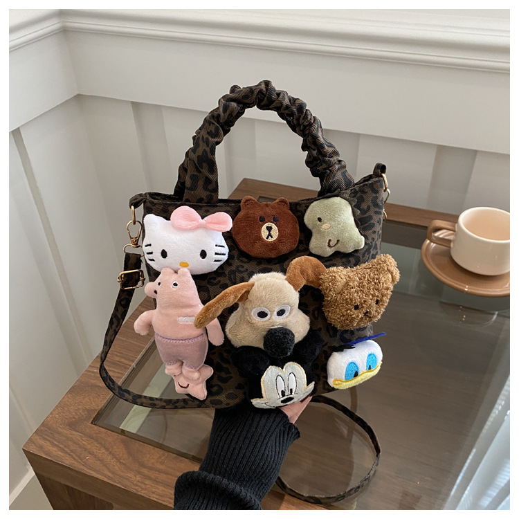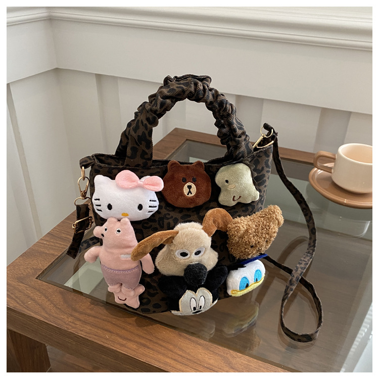 Cartoon puppy bolso de muñeca mujer 2024 nueva moda leopardo estampado bolso de mano bolso de lona versátil
