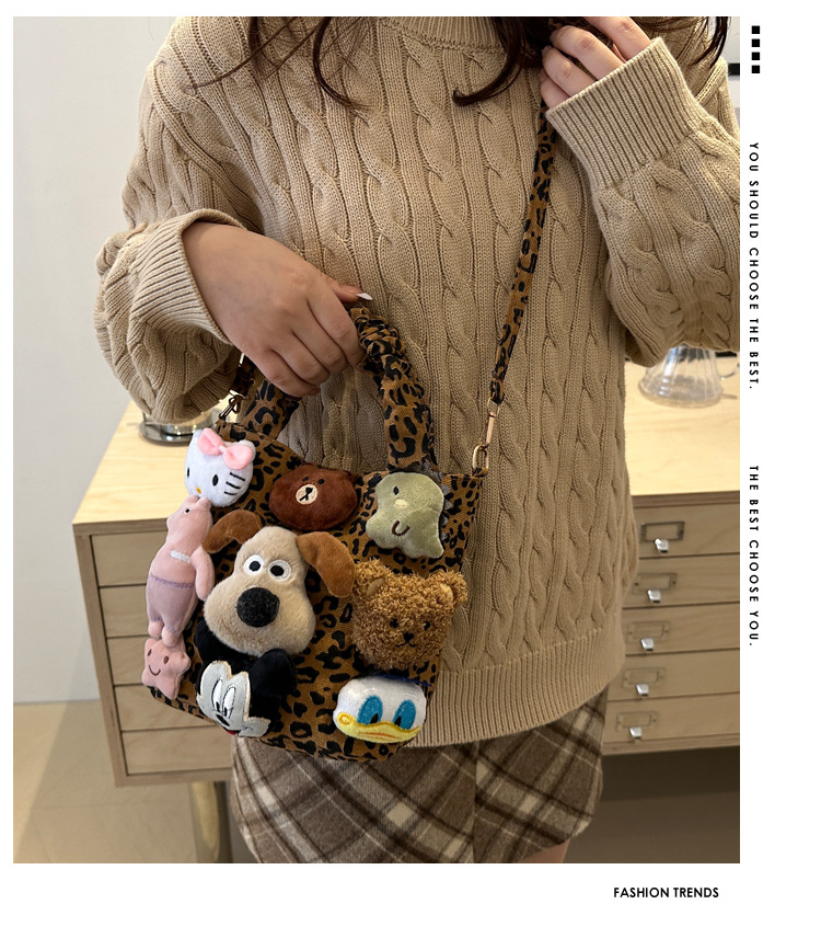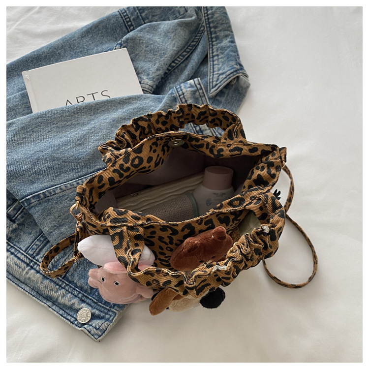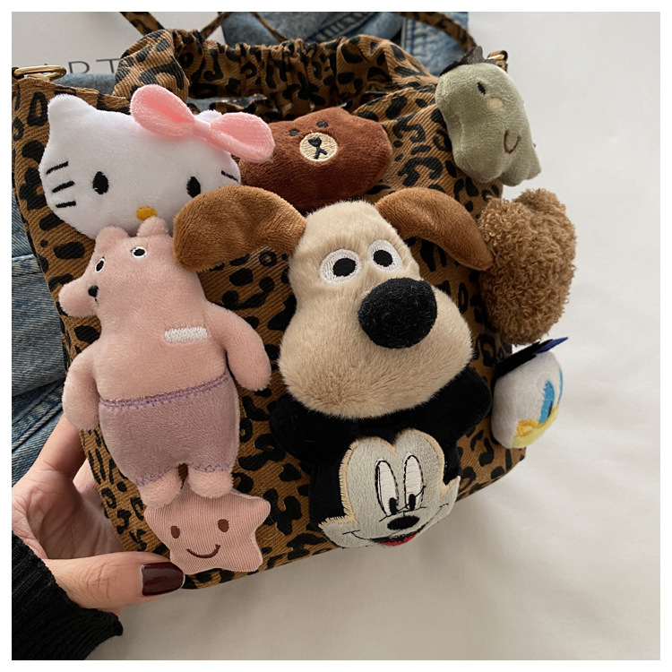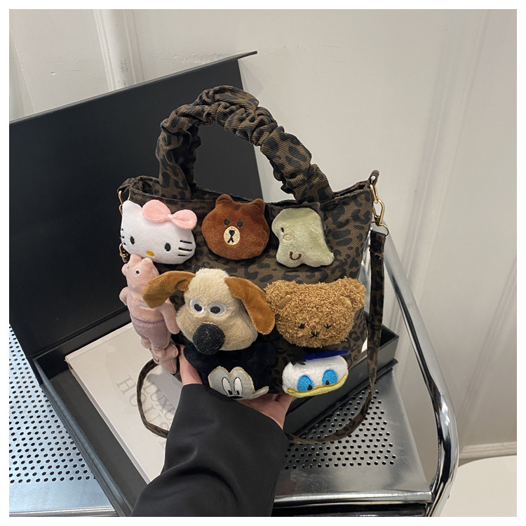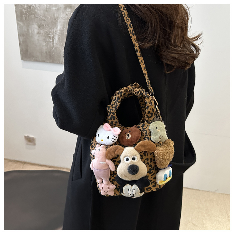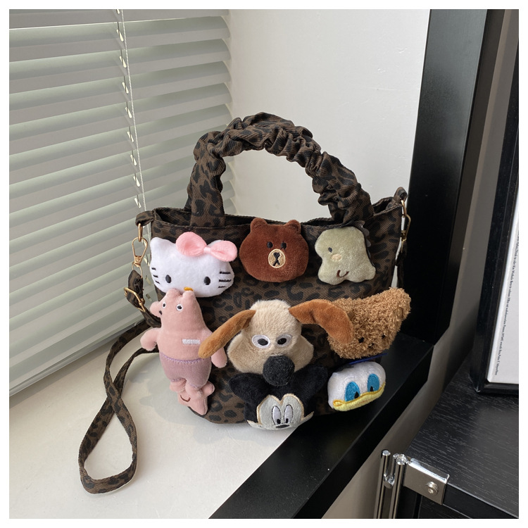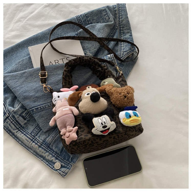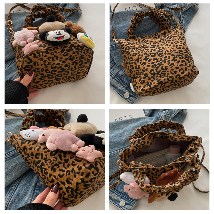 Cartoon puppy bolso de muñeca mujer 2024 nueva moda leopardo estampado bolso de mano bolso de lona versátil