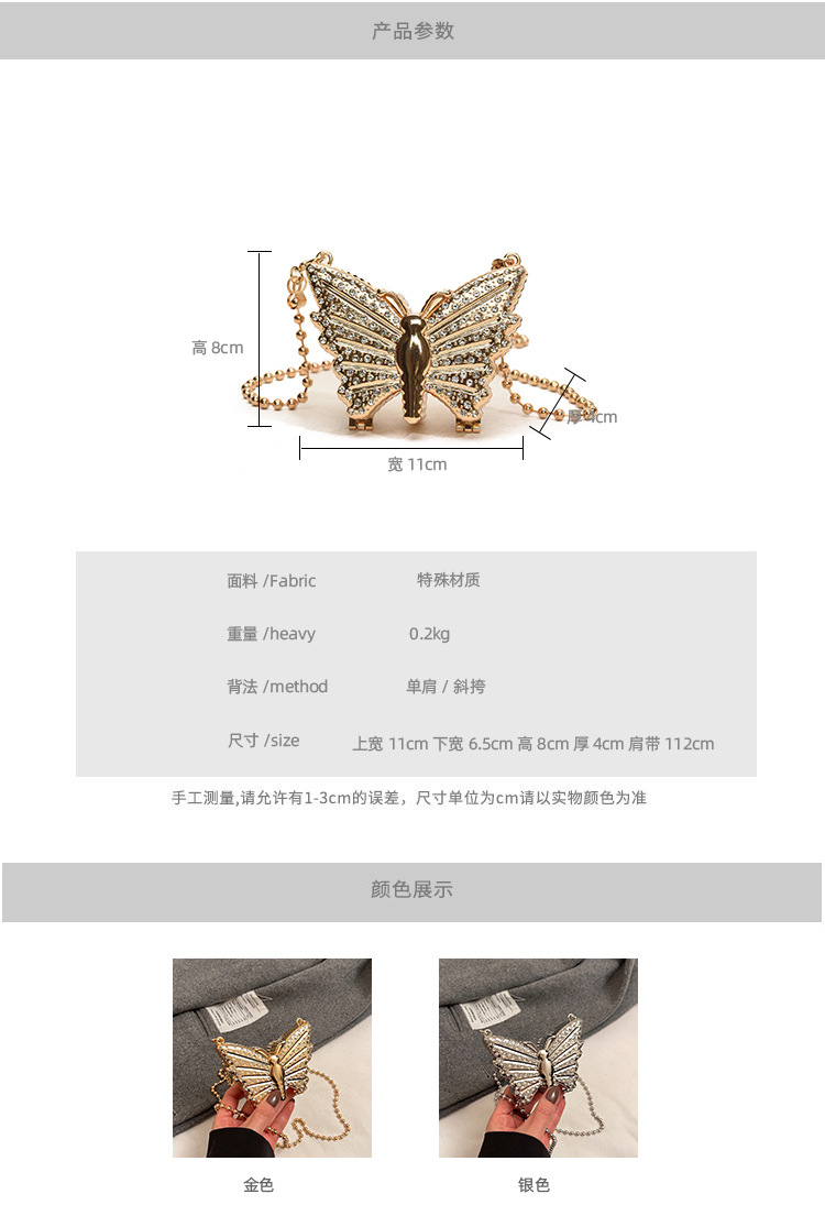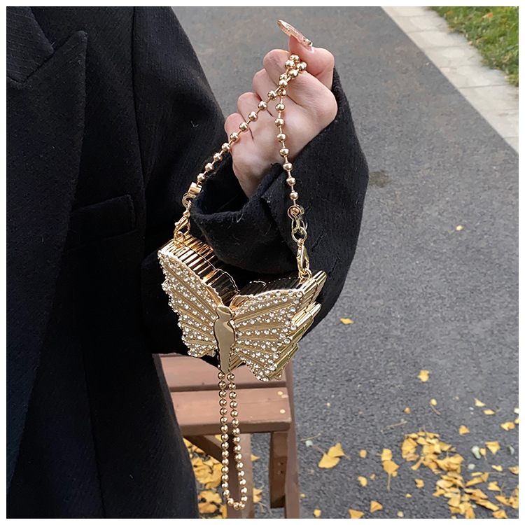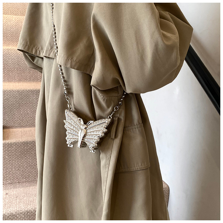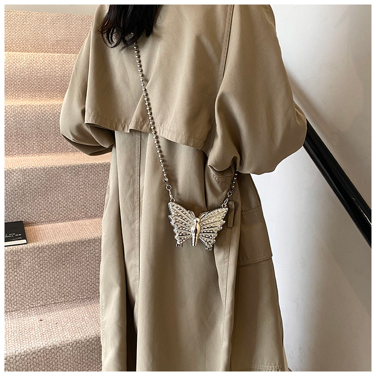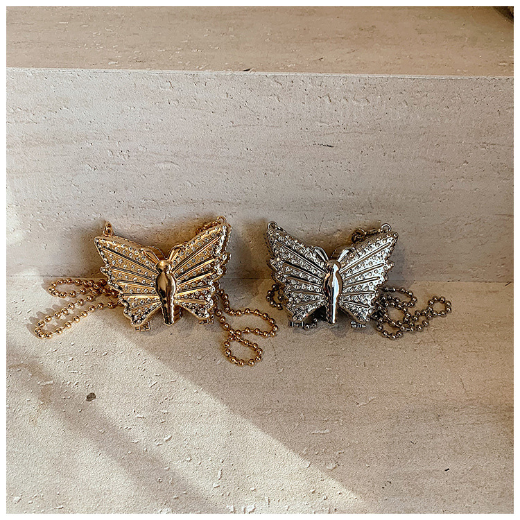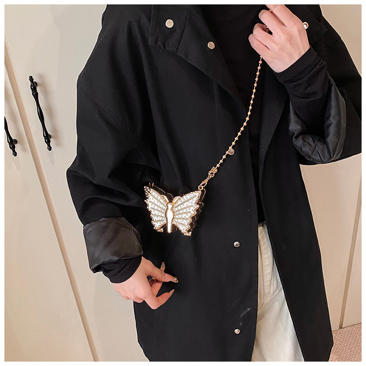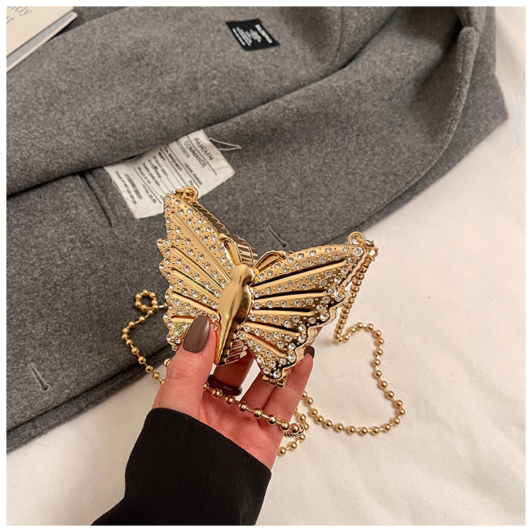 Bolsa de cena de moda mariposa para mujeres 2025 nueva cadena de diamante simple bolso de hombro mini bolso de lápiz labial de diamante