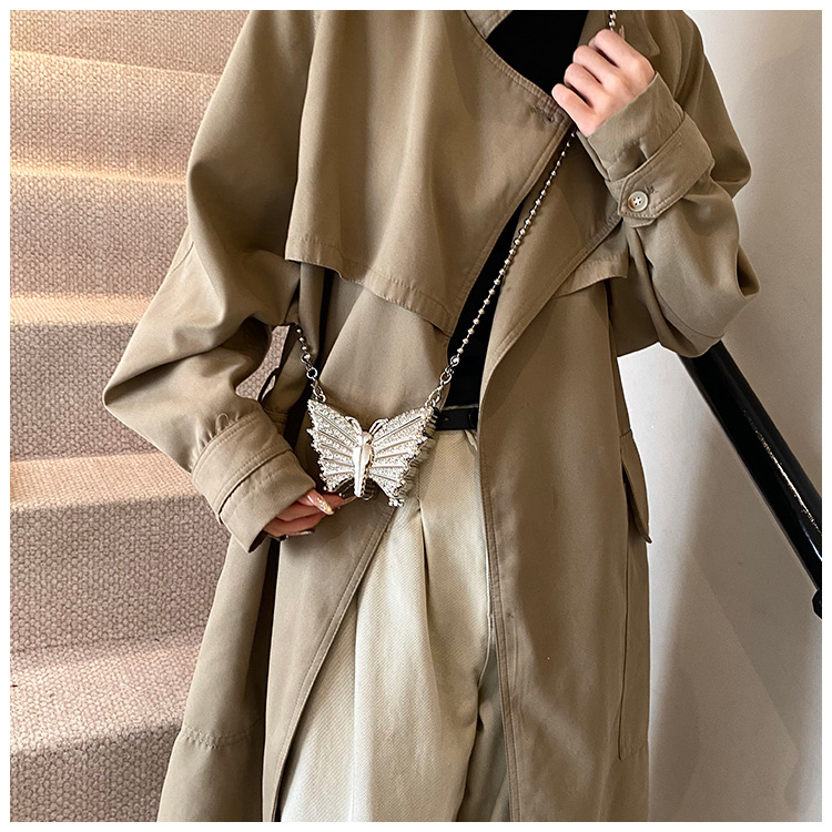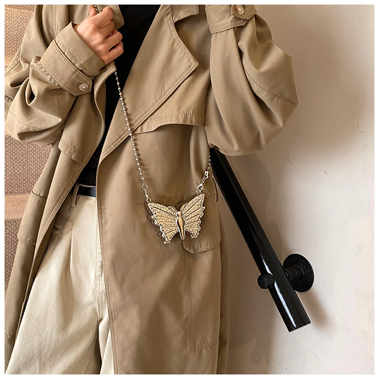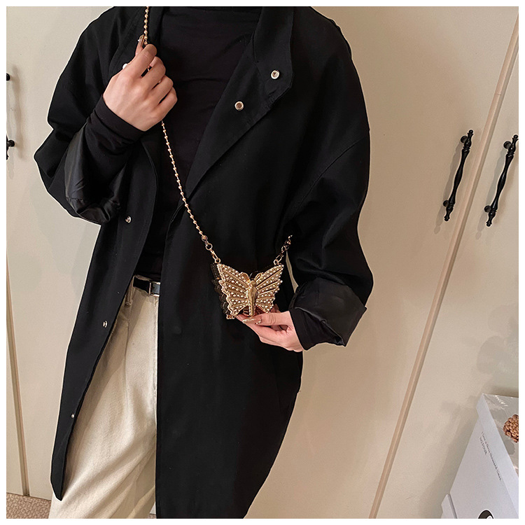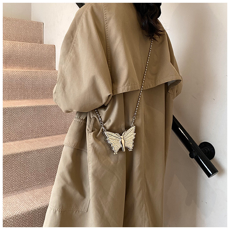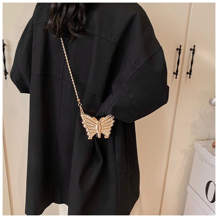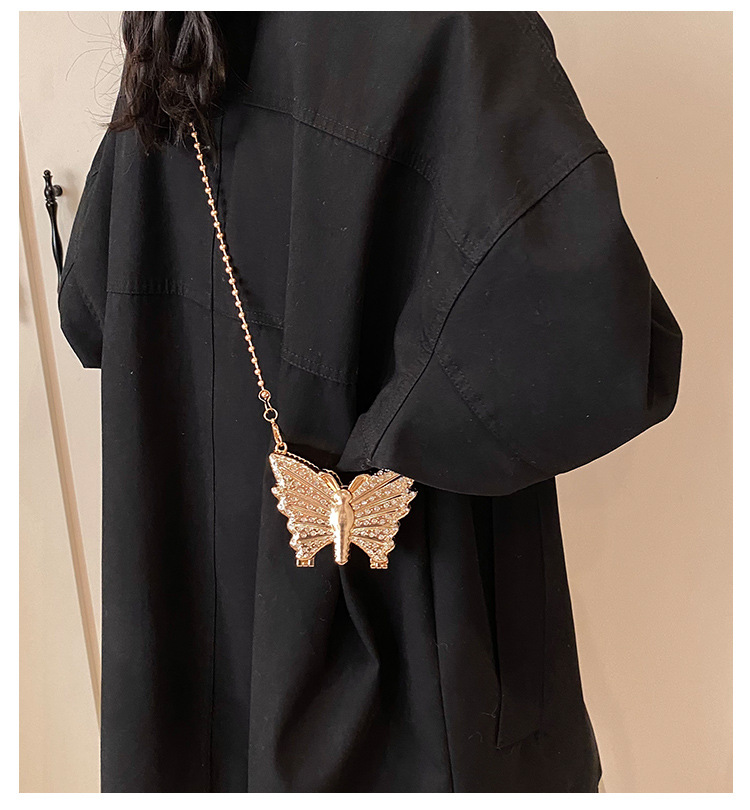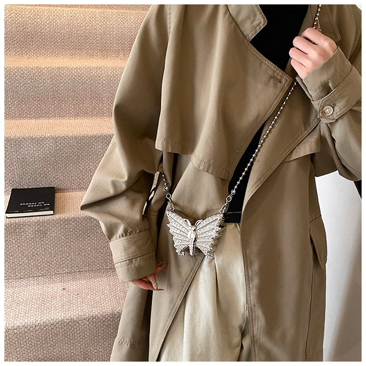 Bolsa de cena de moda mariposa para mujeres 2025 nueva cadena de diamante simple bolso de hombro mini bolso de lápiz labial de diamante