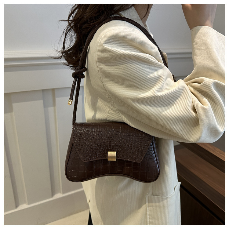Mori cocodrilo patrón bolso de axila de todo fósforo de alto valor 2024 nueva moda de primavera y verano popular bolso de palo francés retro de lujo ligero
