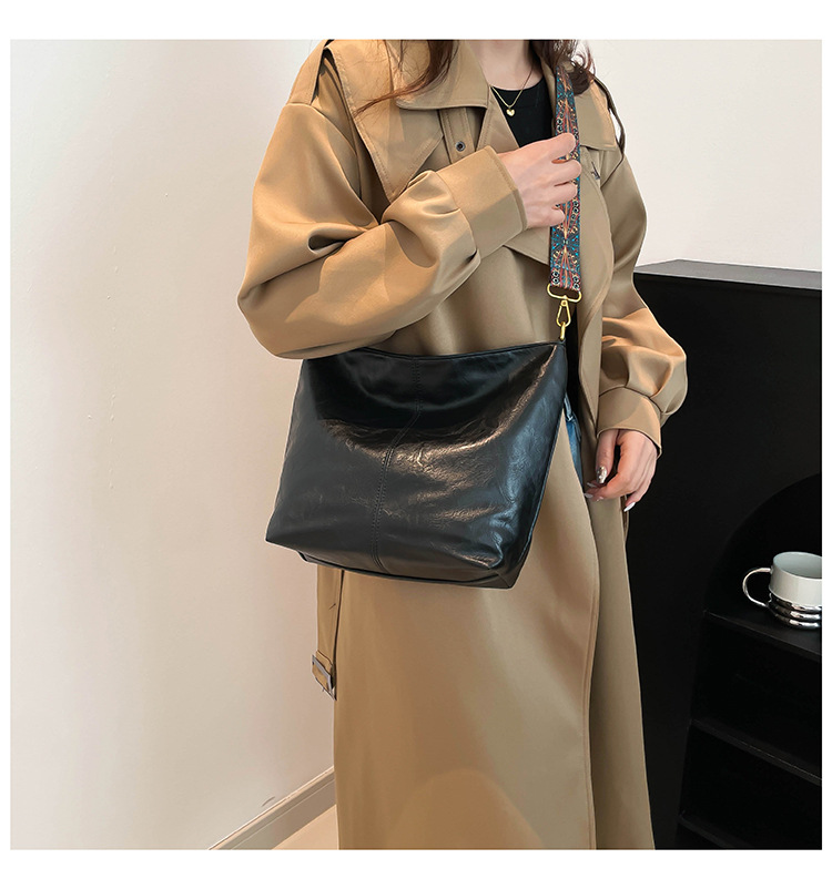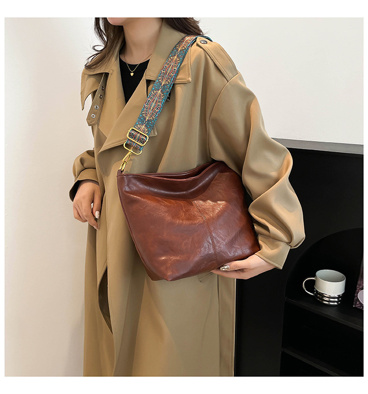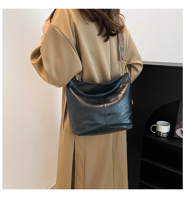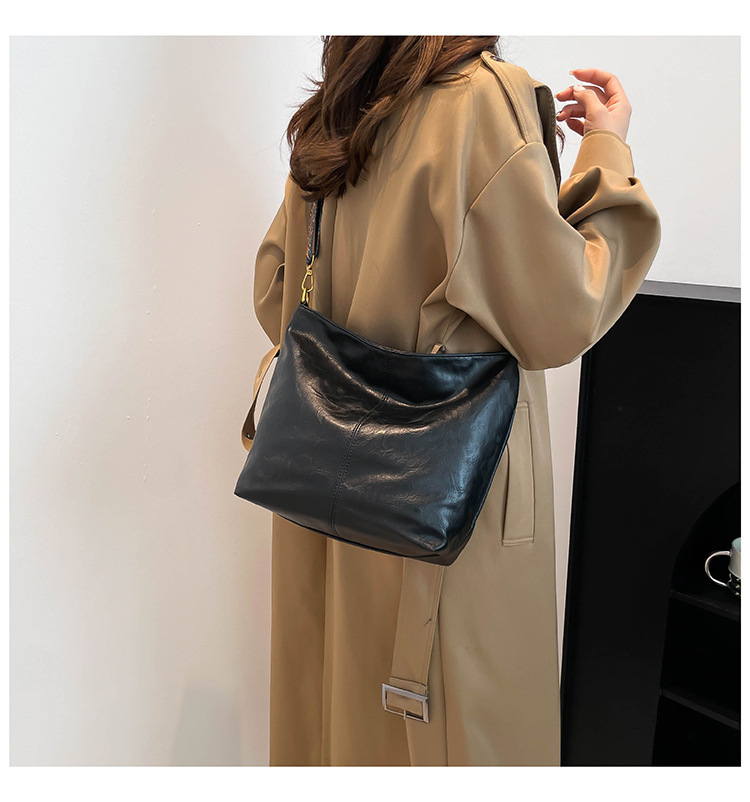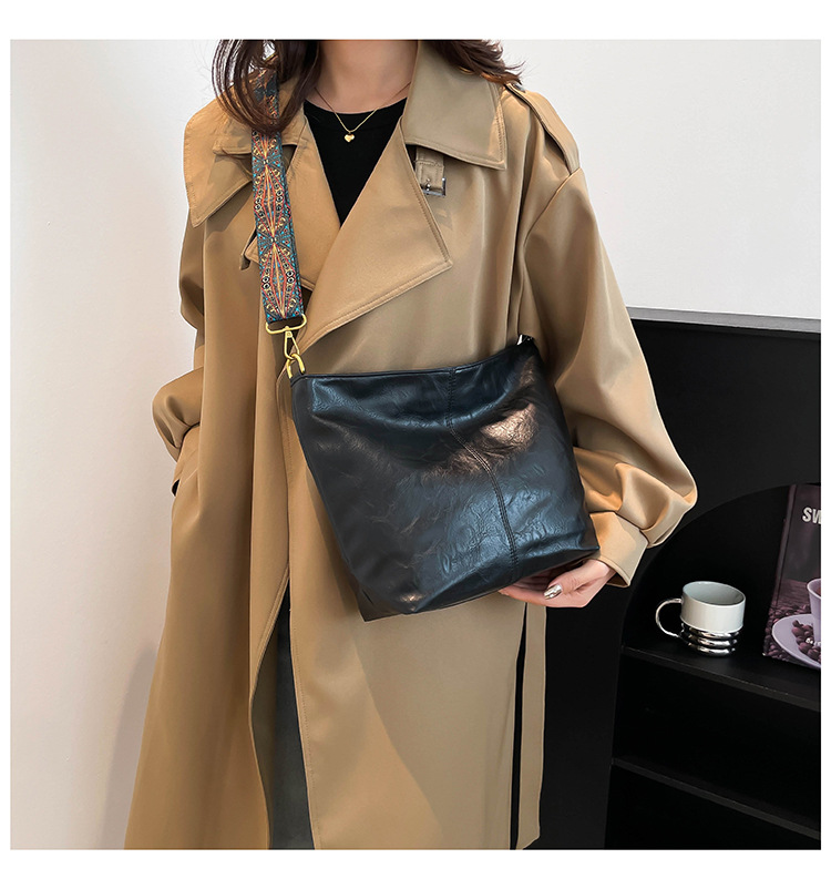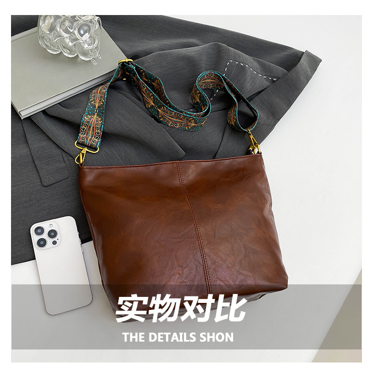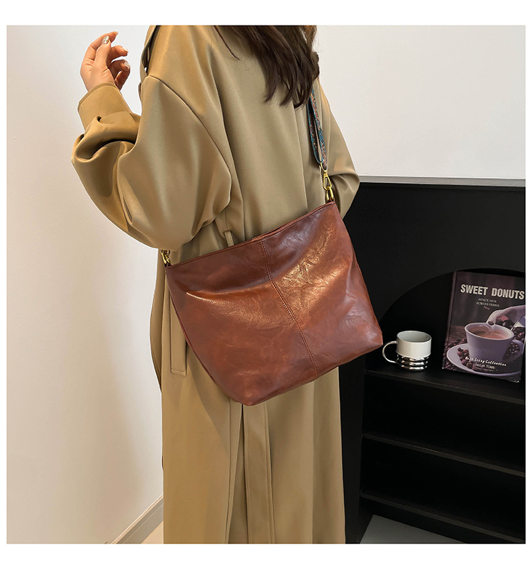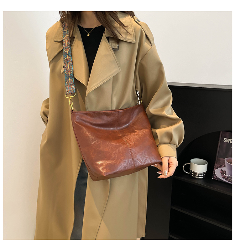 Bolso coreano de gran capacidad para mujeres 2024 otoño y invierno nuevo retro banda ancha mochila de hombro texturizada bolso de cubo de viaje