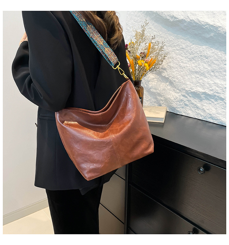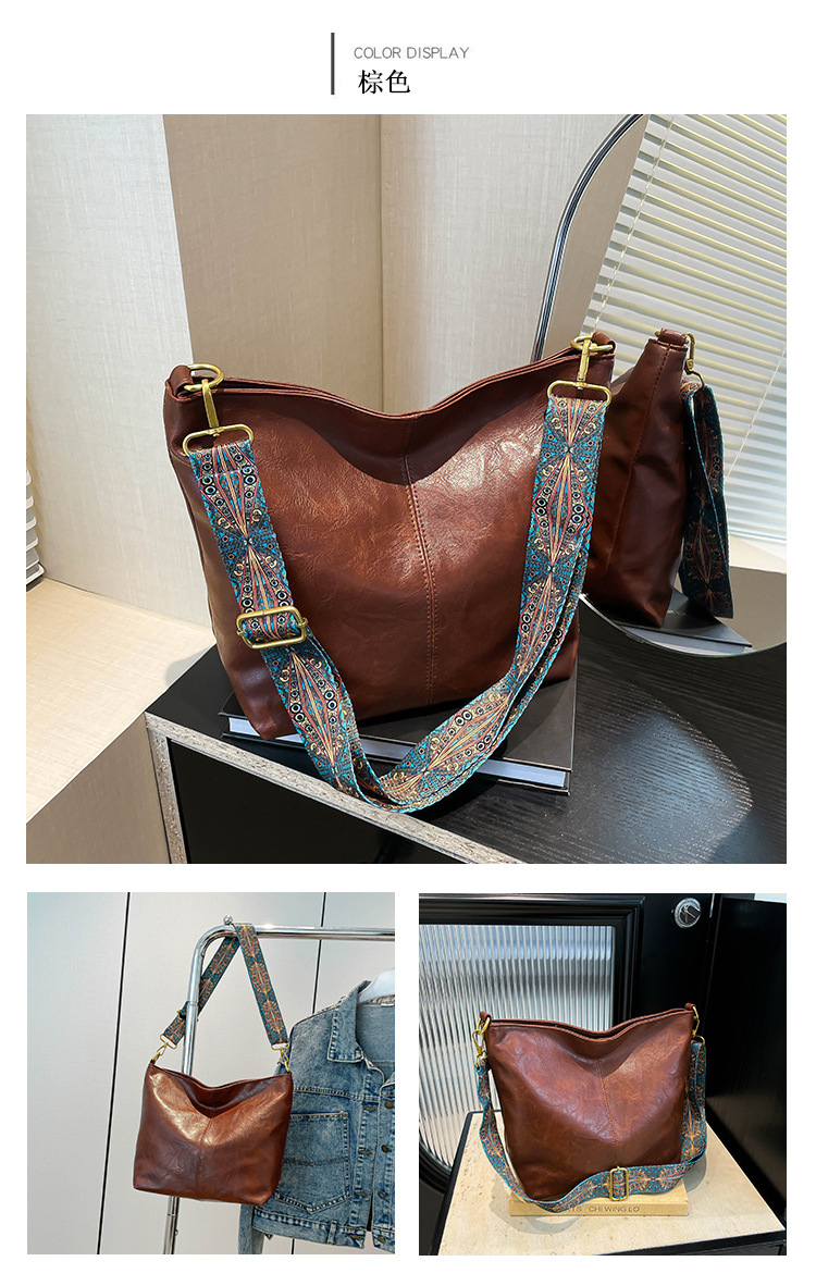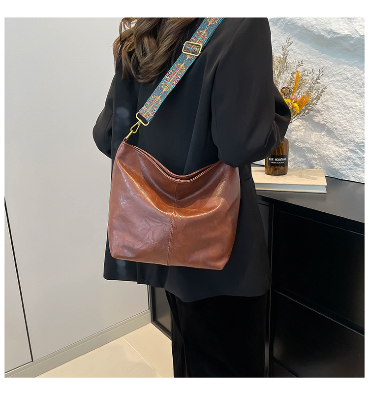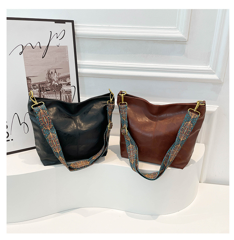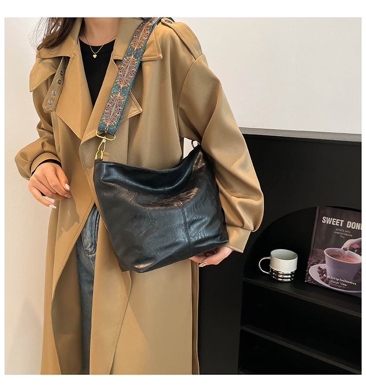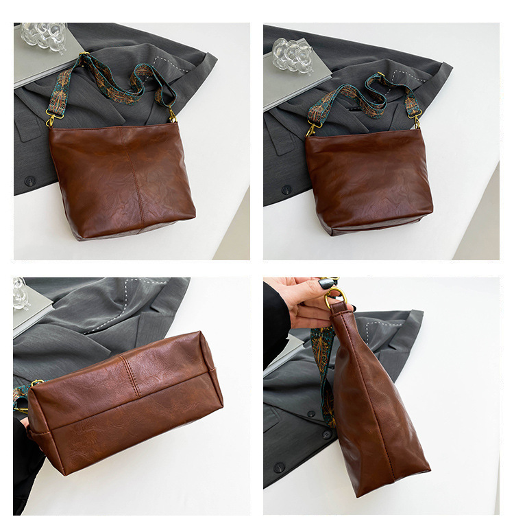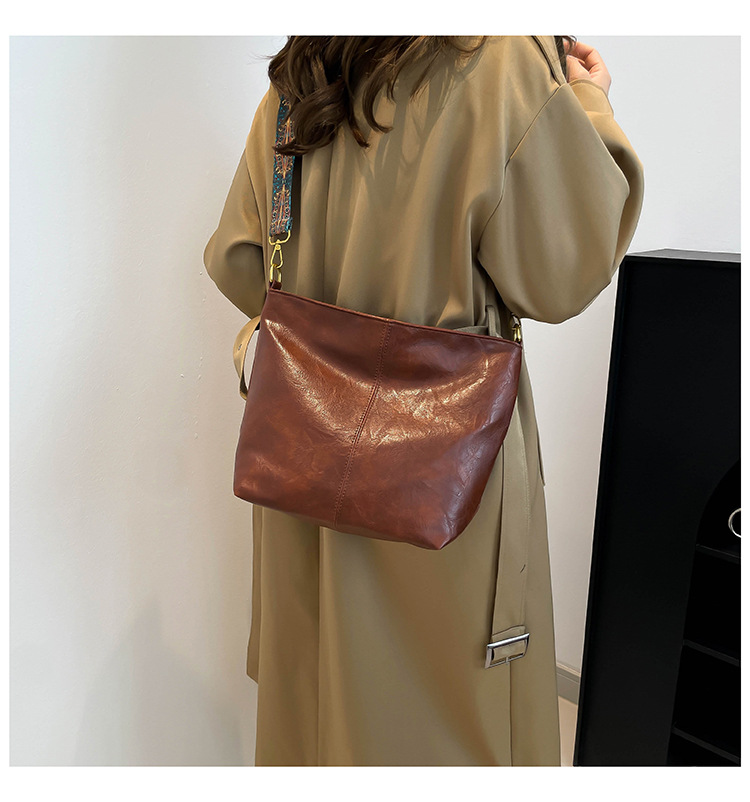 Bolso coreano de gran capacidad para mujeres 2024 otoño y invierno nuevo retro banda ancha mochila de hombro texturizada bolso de cubo de viaje