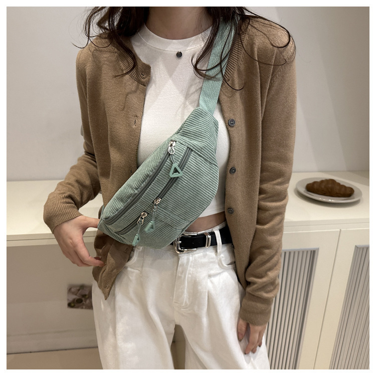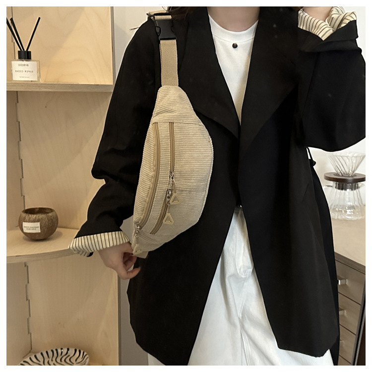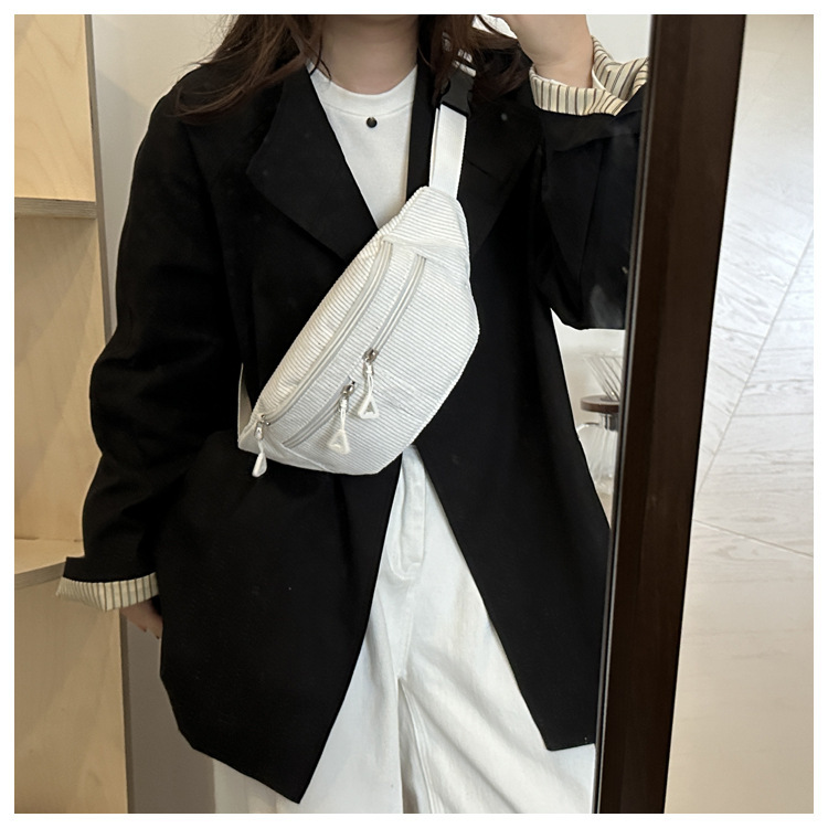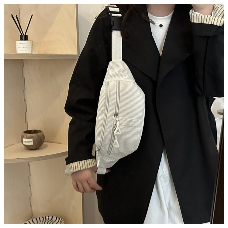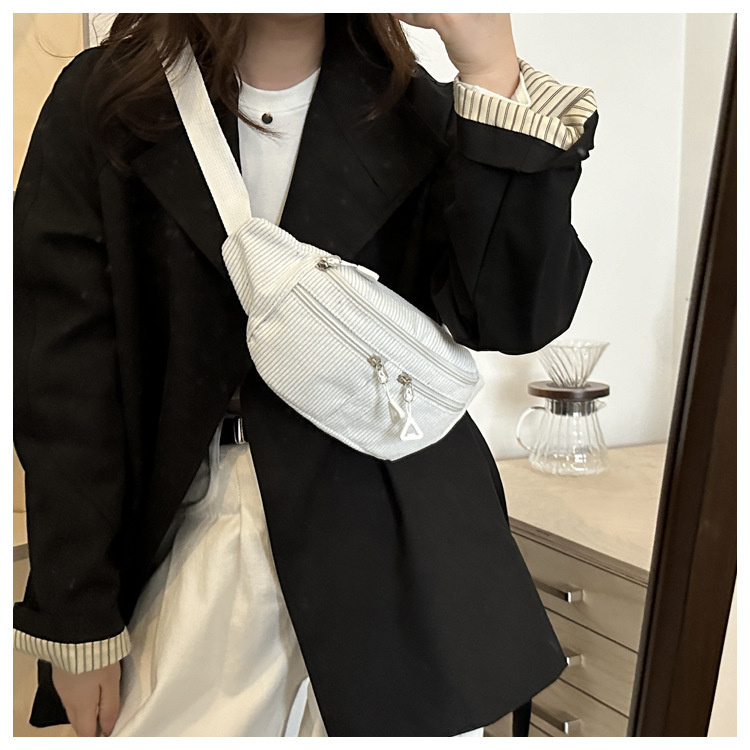 Bolso de cintura a rayas verticales japonesas inns lindos, frescos y simples, bolso de mochila, bolso de pecho para chicas