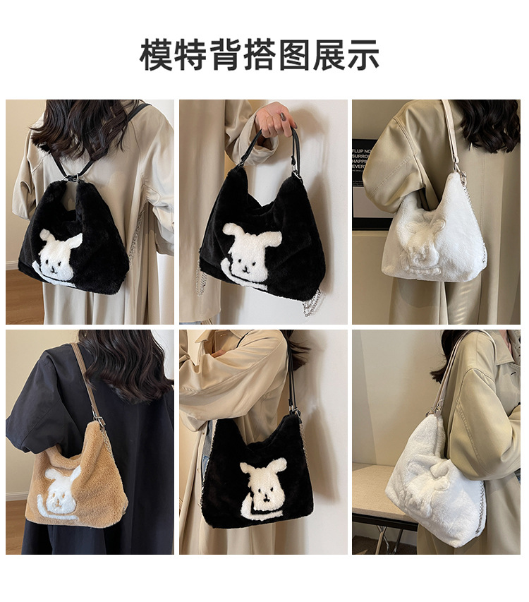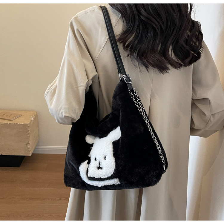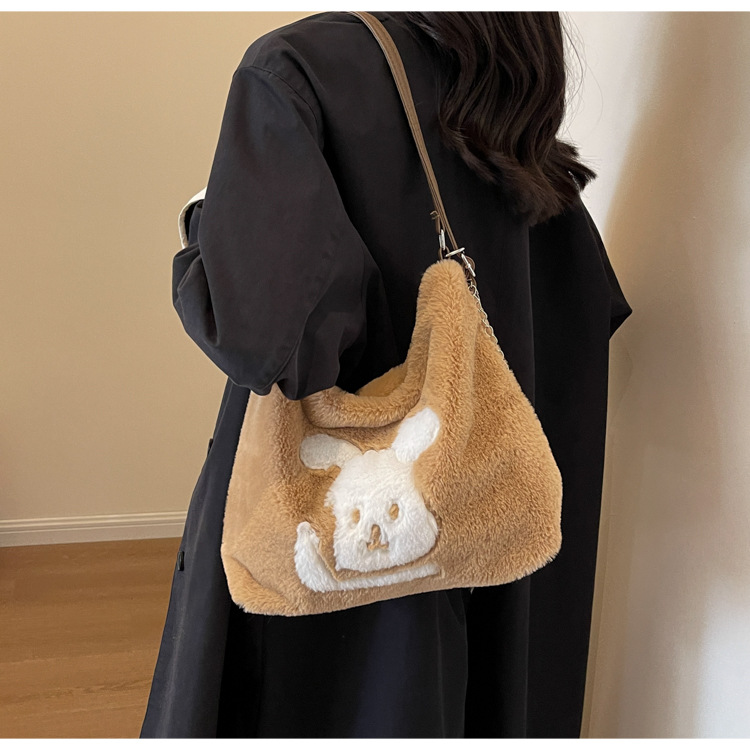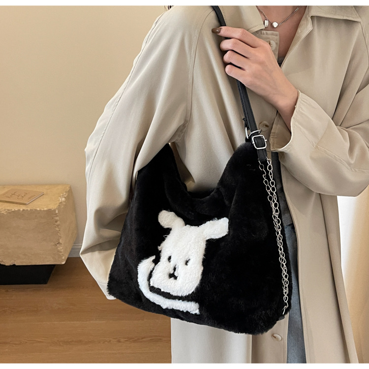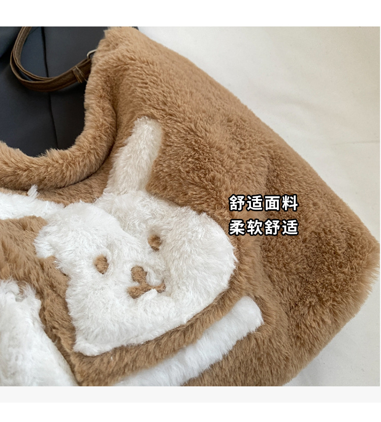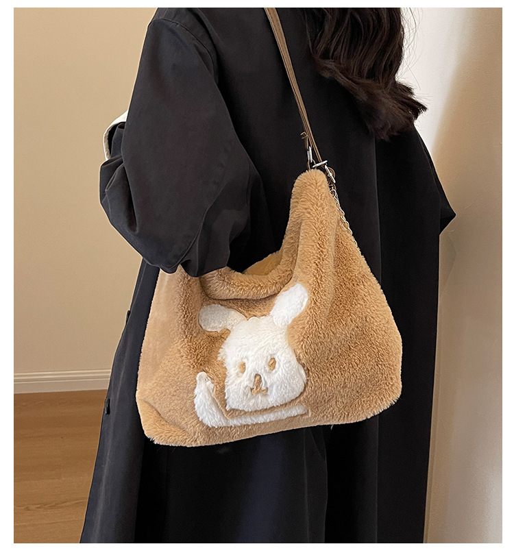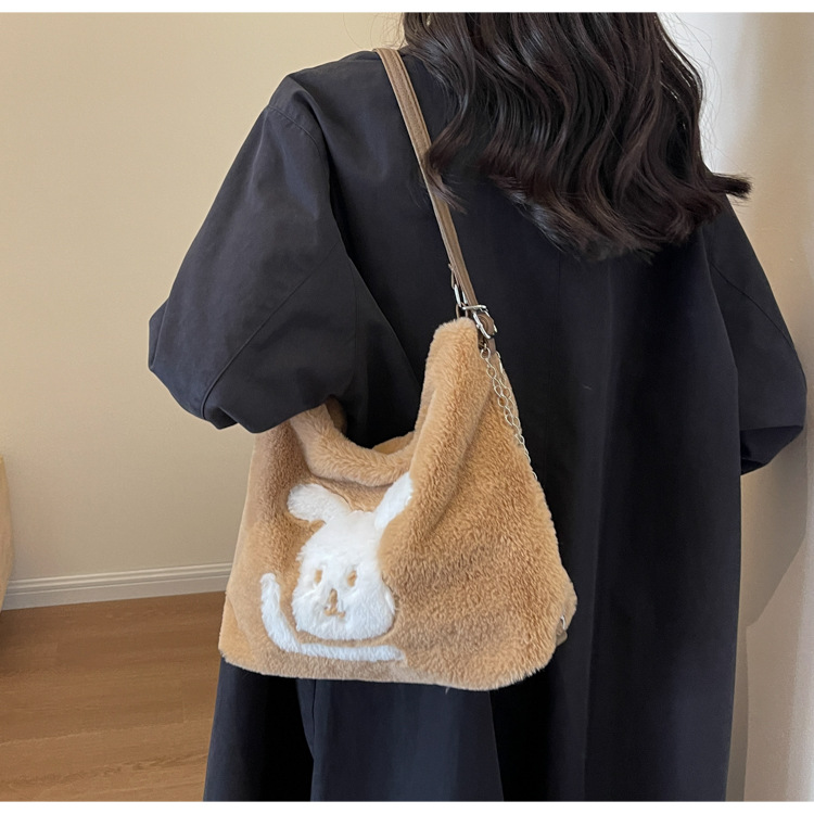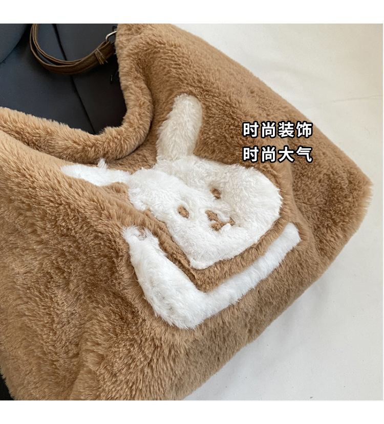 Bolso de felpa para mujer 2024 nuevo bolso de hombro de dibujos animados lindo bolso de otoño e invierno bolso de conejo de lana de gran capacidad