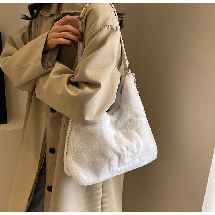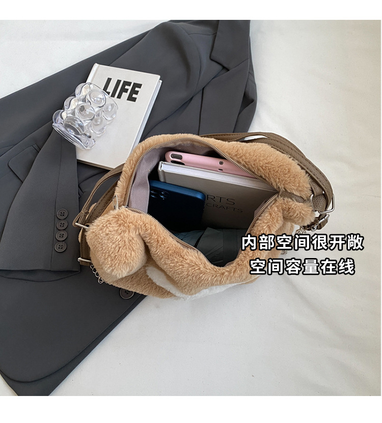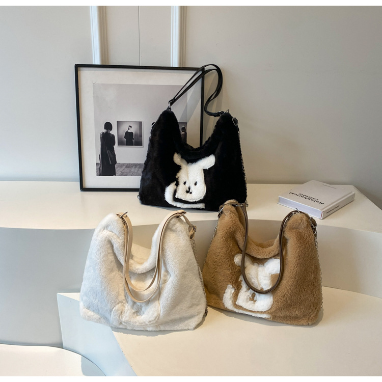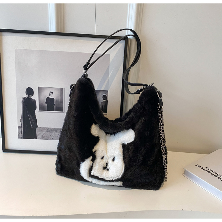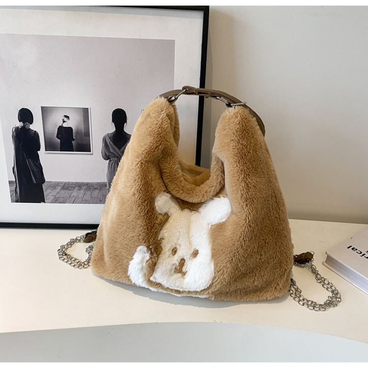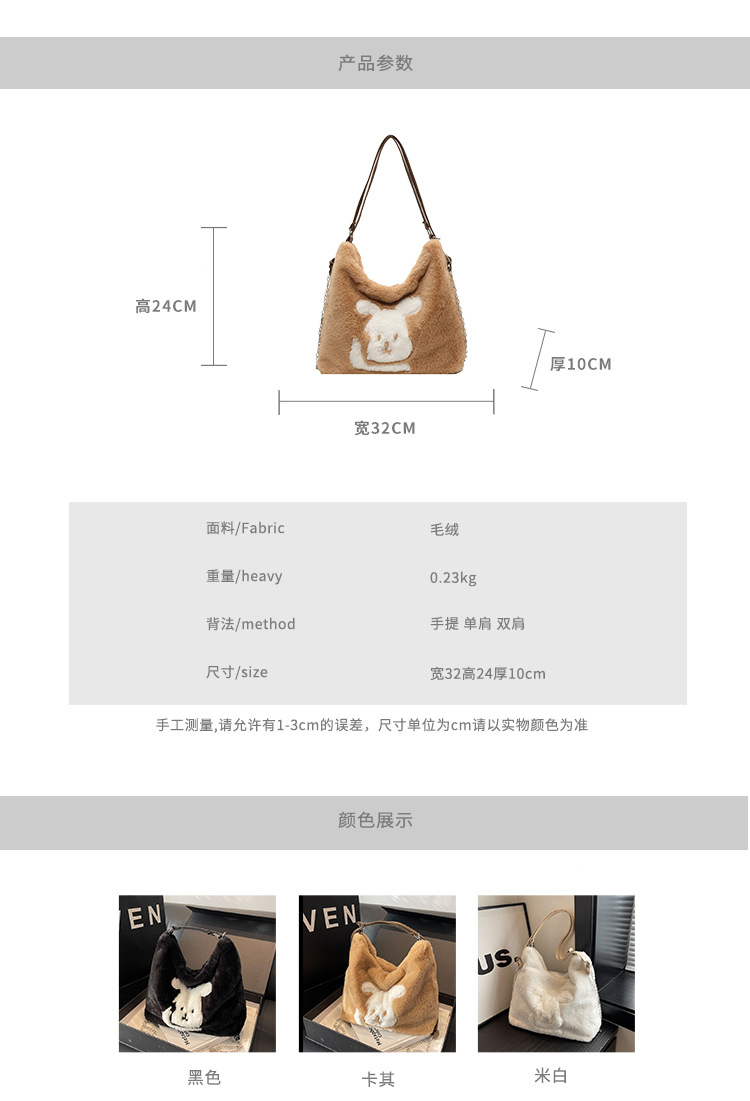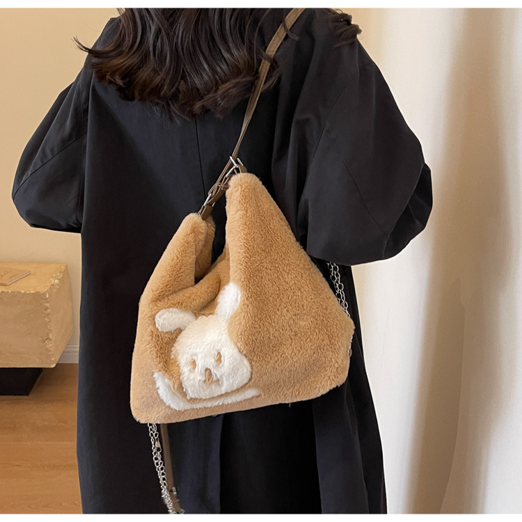 Bolso de felpa para mujer 2024 nuevo bolso de hombro de dibujos animados lindo bolso de otoño e invierno bolso de conejo de lana de gran capacidad