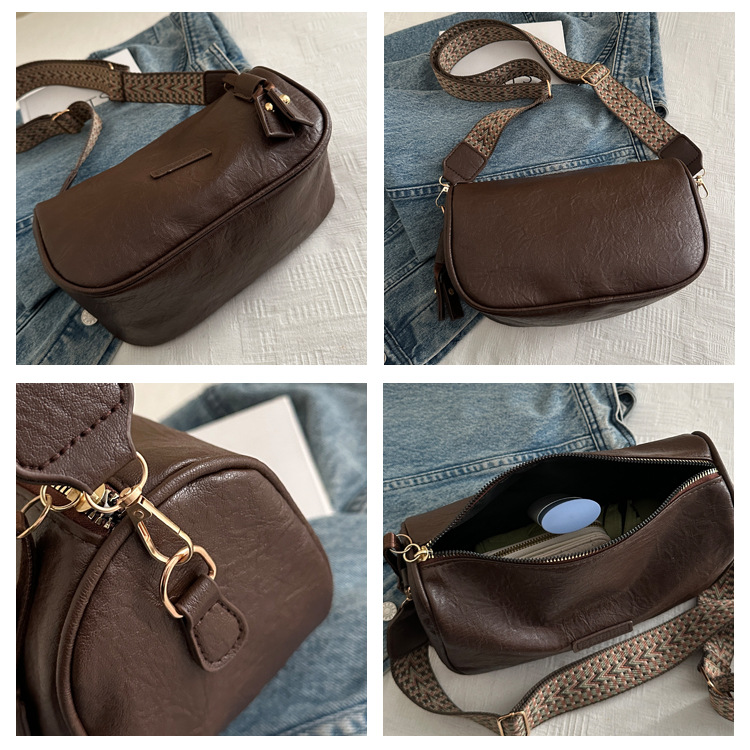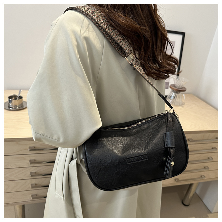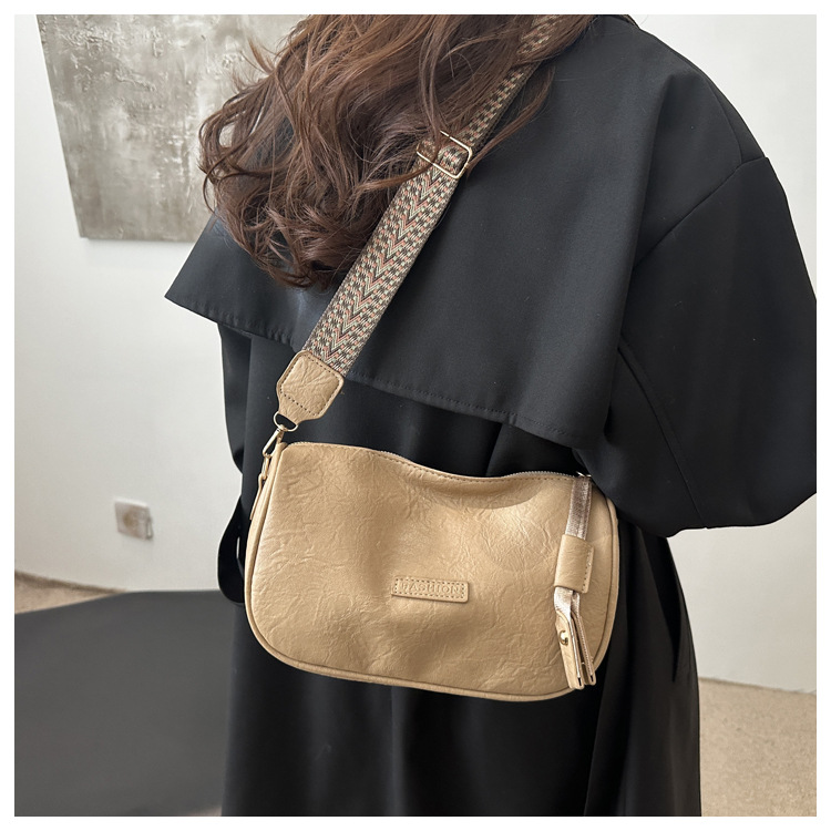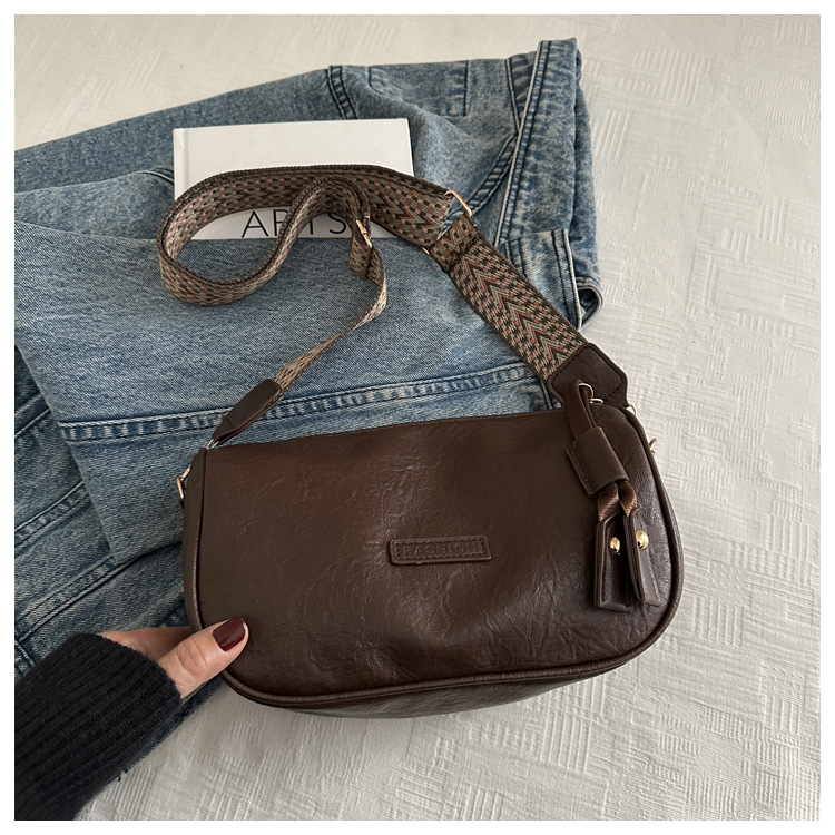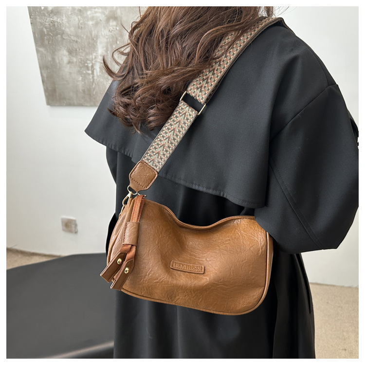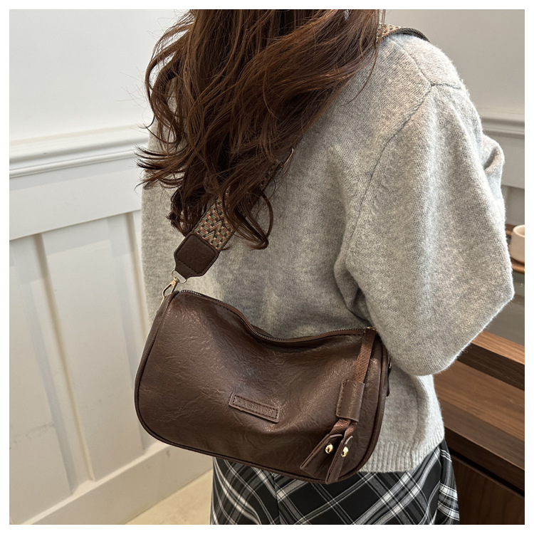 2024 otoño y invierno nuevo bolso de hombro de banda ancha de mujer bolso de mochila casual retro puerto de aire exterior bolso bajo la axila