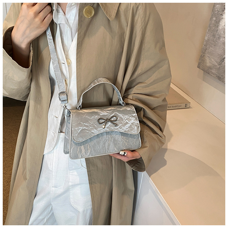 Bolso de moda coreano 2025 verano nuevo bolso femenino de alta calidad textura bolso de hombro lindo lazo bolso de mensajero
