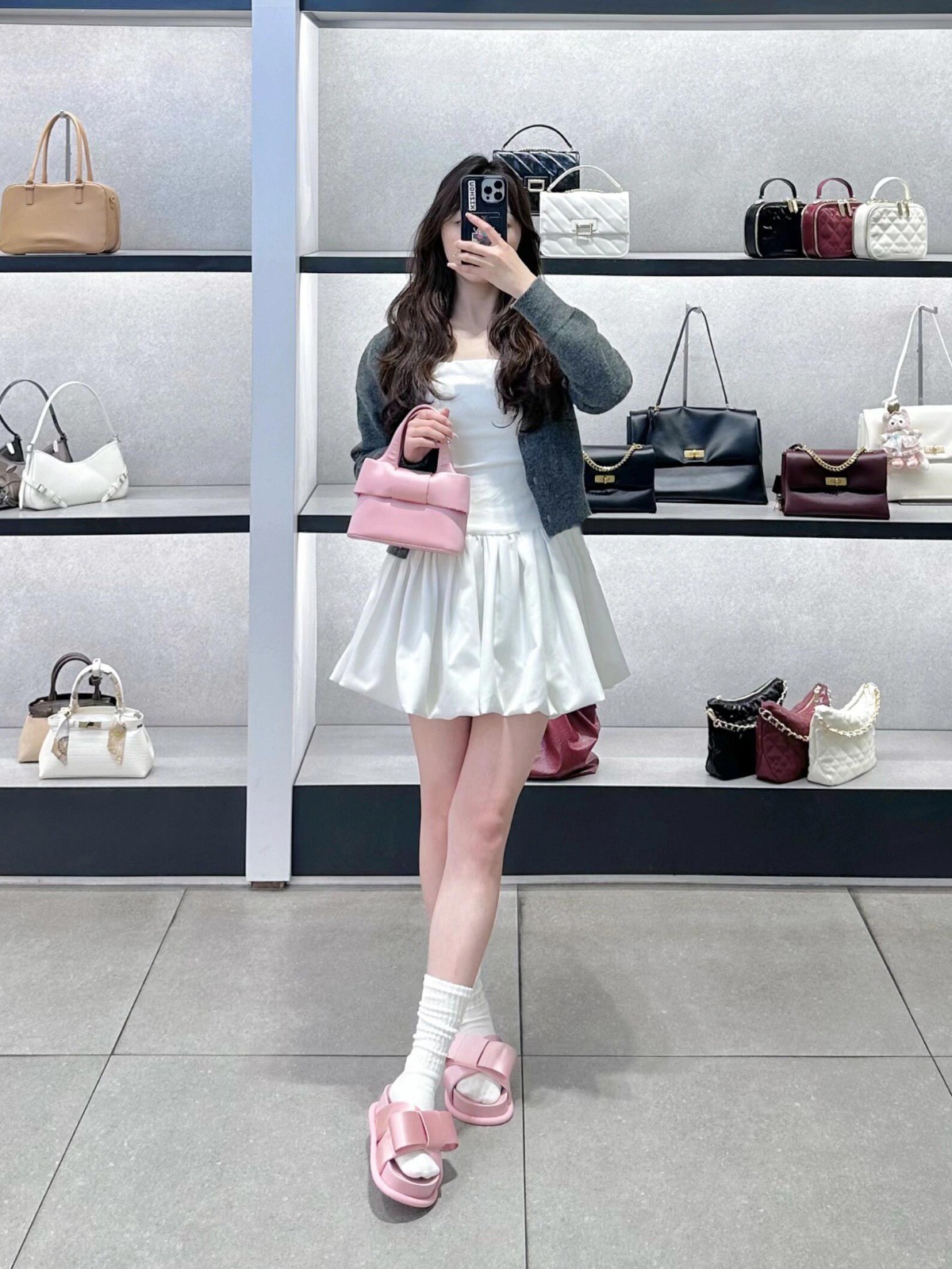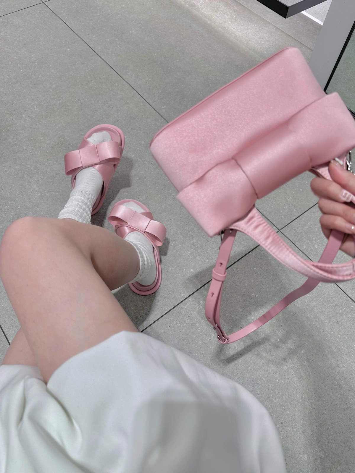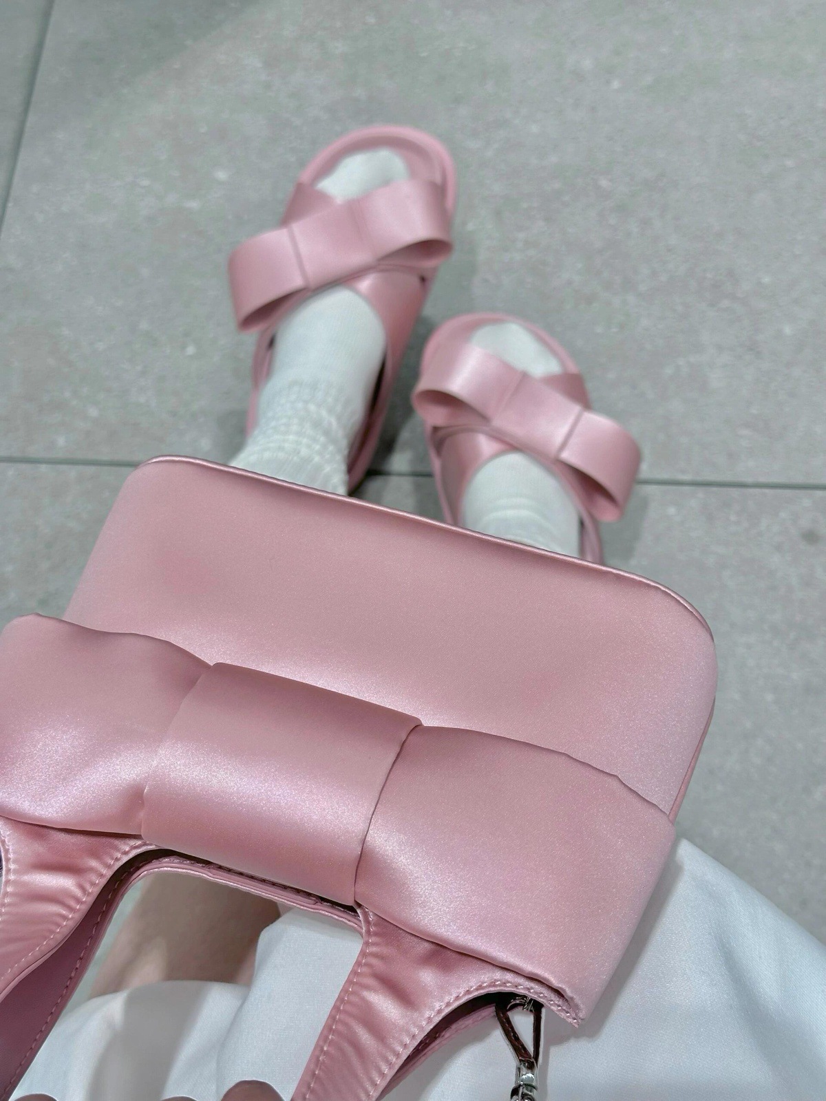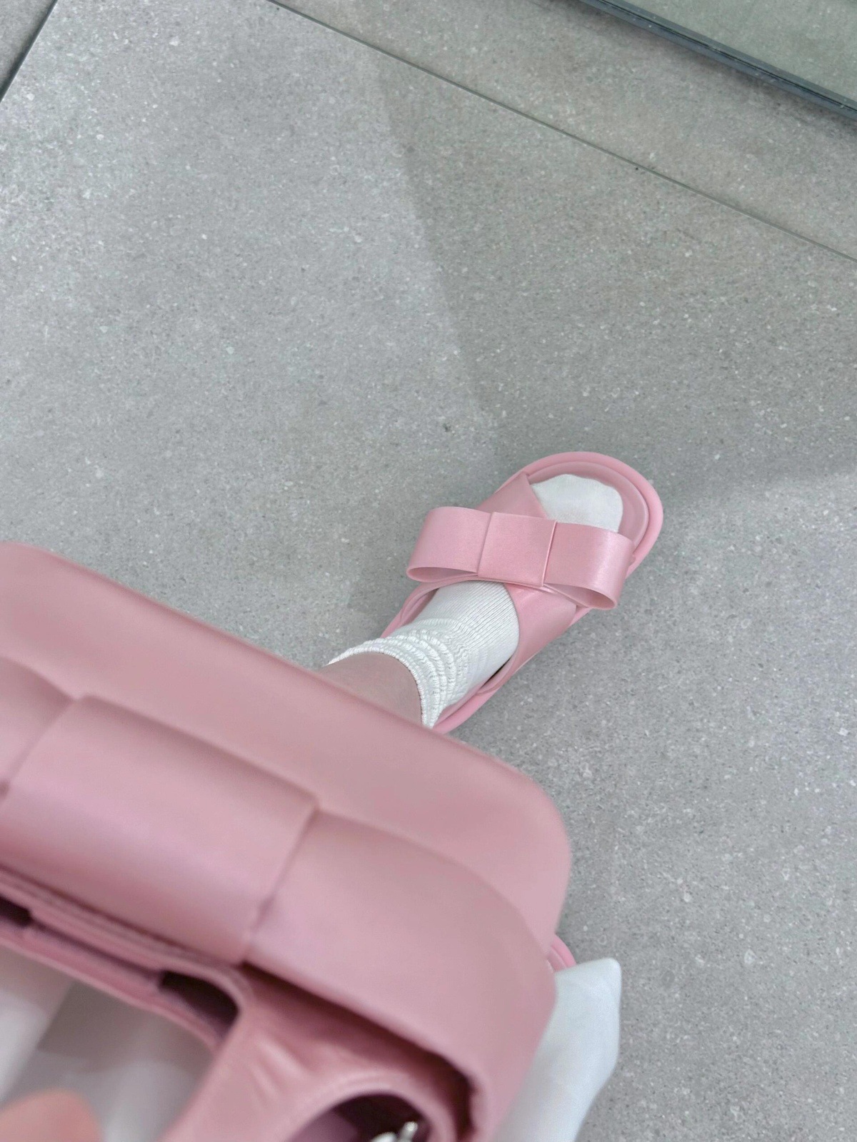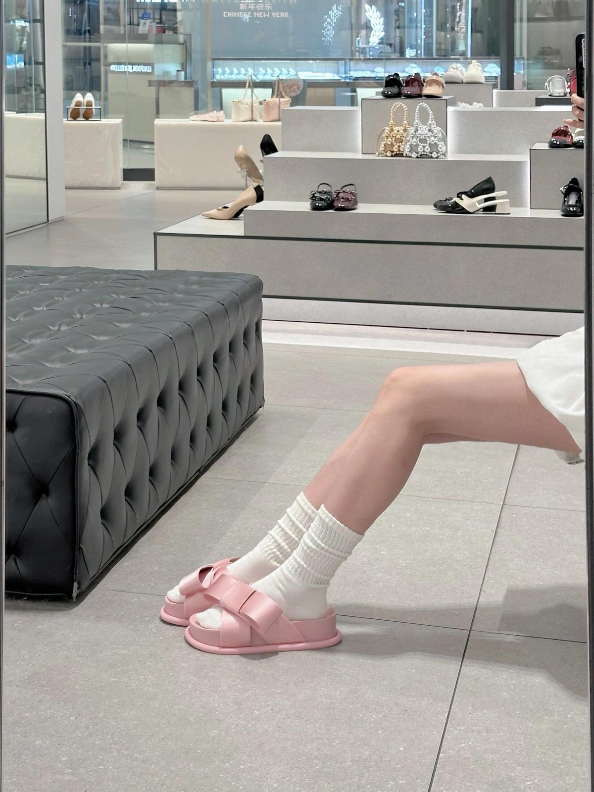 Verano de piel de oveja ~ nuevo arco de cuero grueso fondo zapatillas de una sola palabra para la mujer de la ropa exterior de media altura de tacones altos zapatillas frías