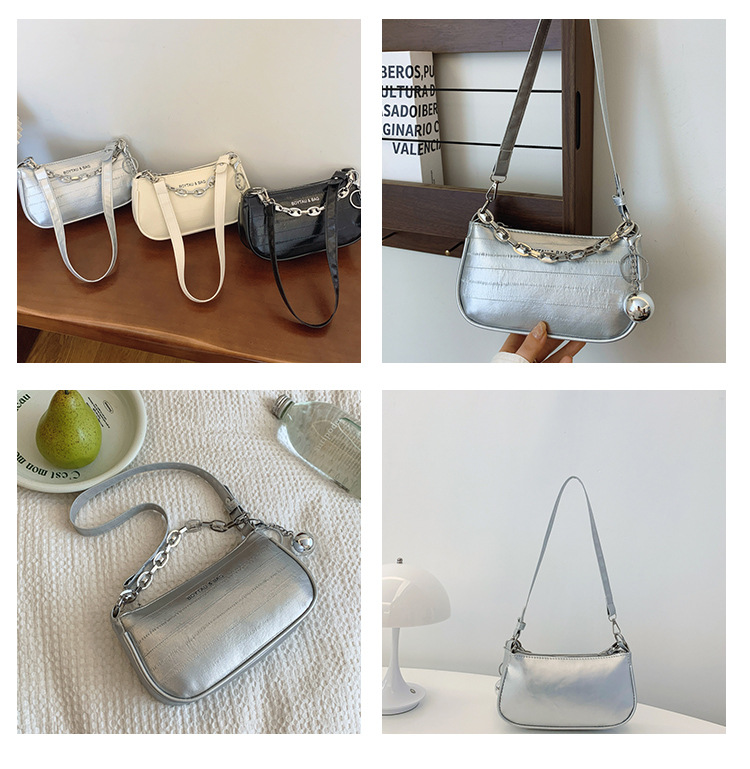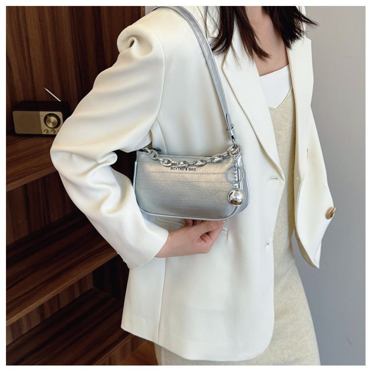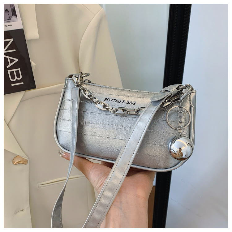 Bolso de brazo plateado de fuego para mujeres 2024 nuevo estilo de verano de lujo ligero nicho de alta calidad cadena bolso de mano para mujeres