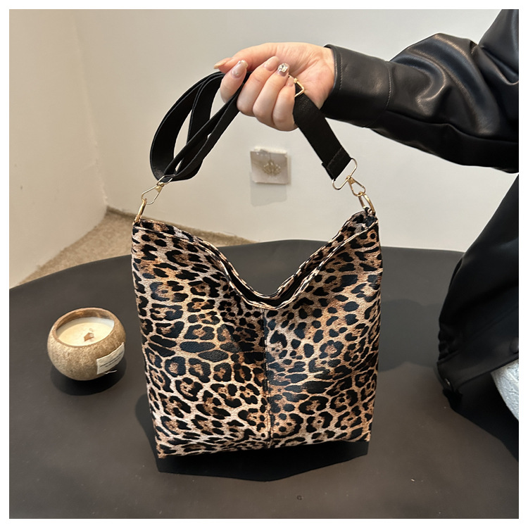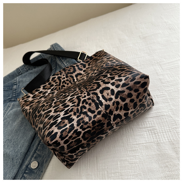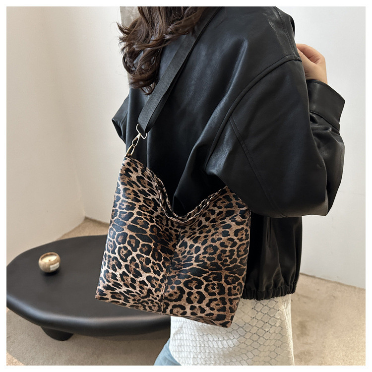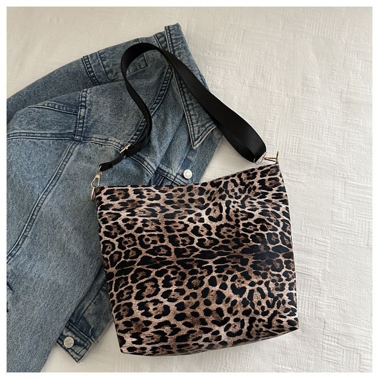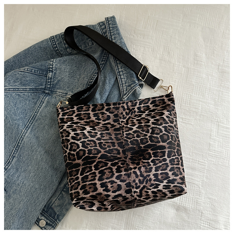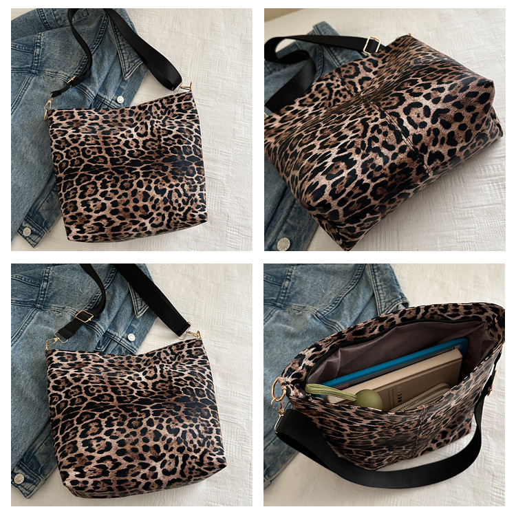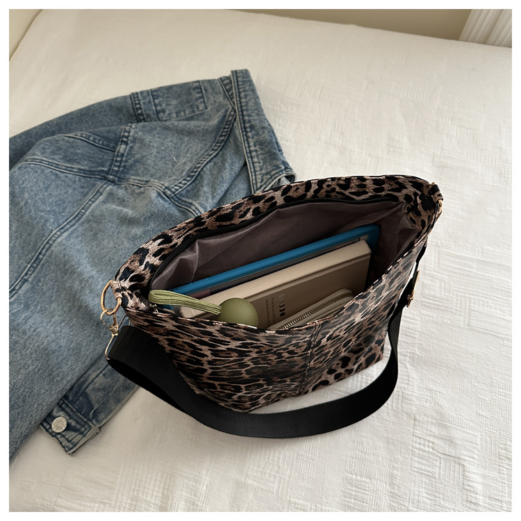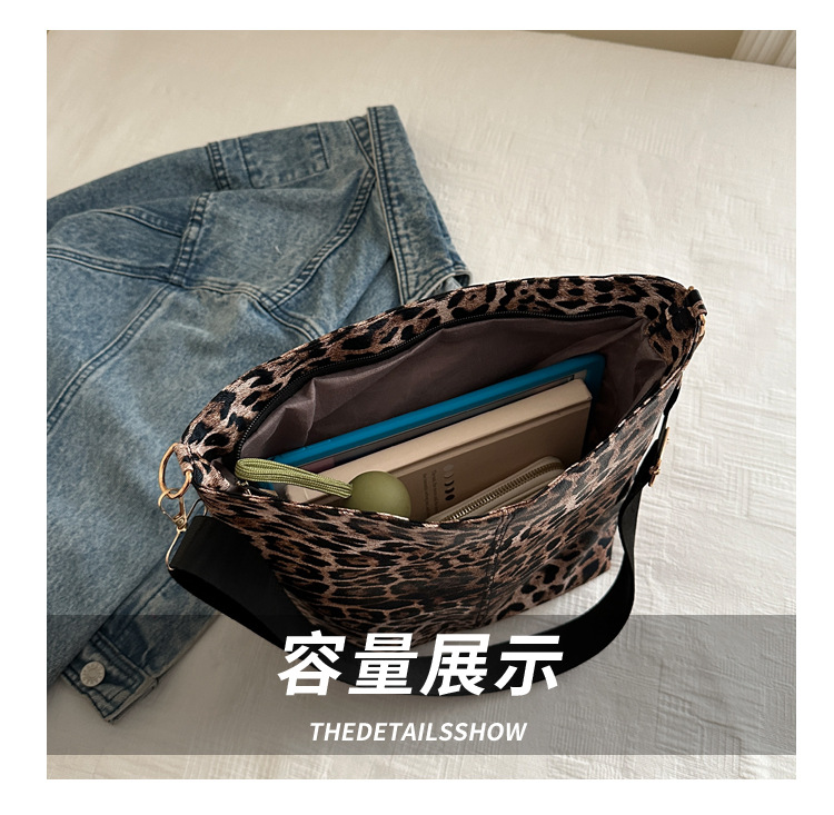Bolso bandolera de todo fósforo moda femenina estampado de leopardo japonés nuevo bolso de hombro de ins retro estilo perezoso bolso de alta capacidad