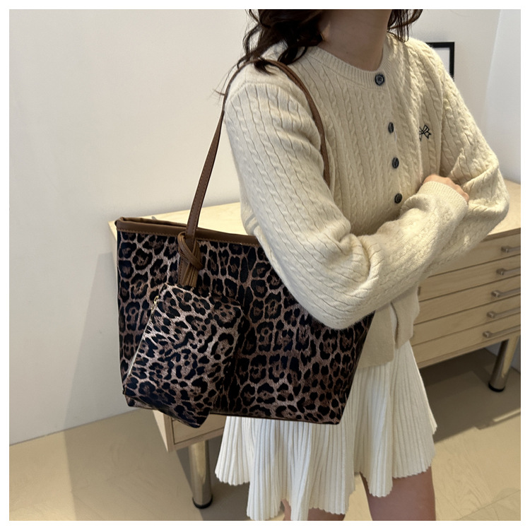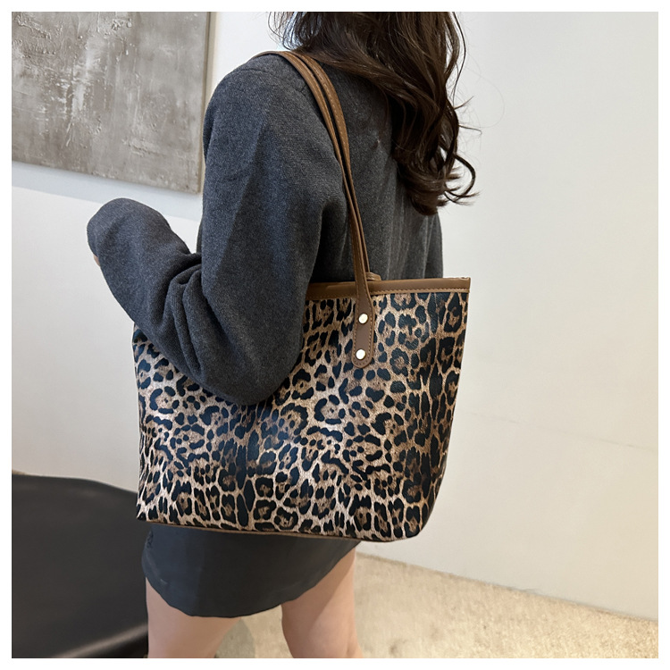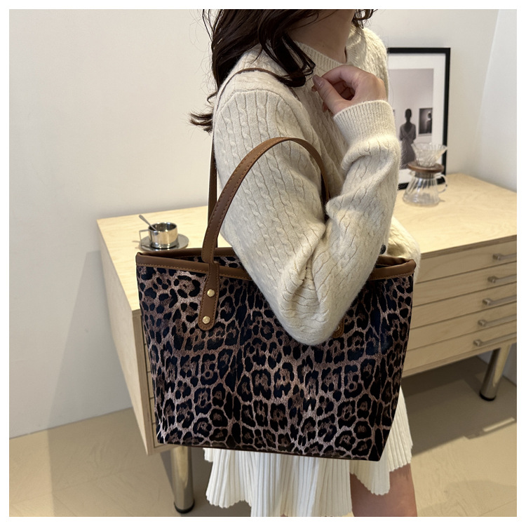 Bolso de gran capacidad de leopardo para mujeres 2024 nueva moda bolso de hombro de moda bolso de mano bolsa de moda bolsa de compras