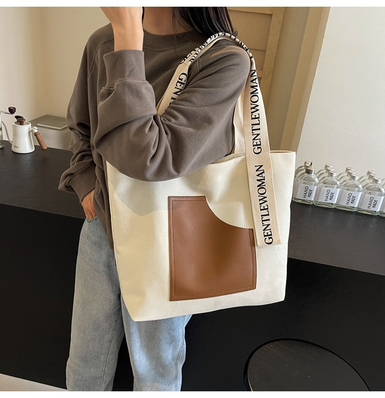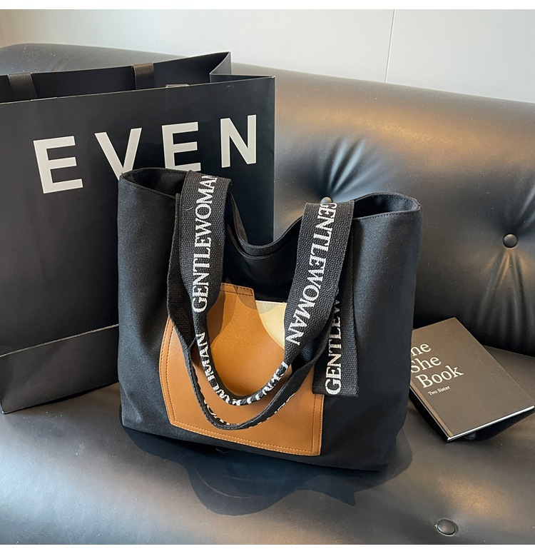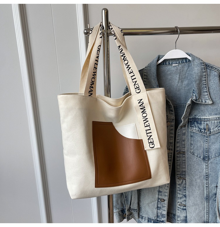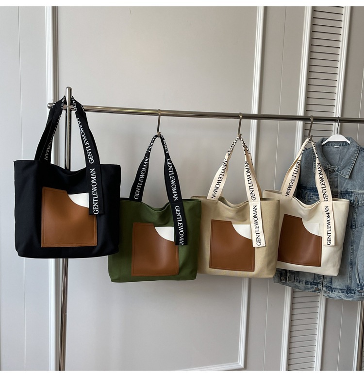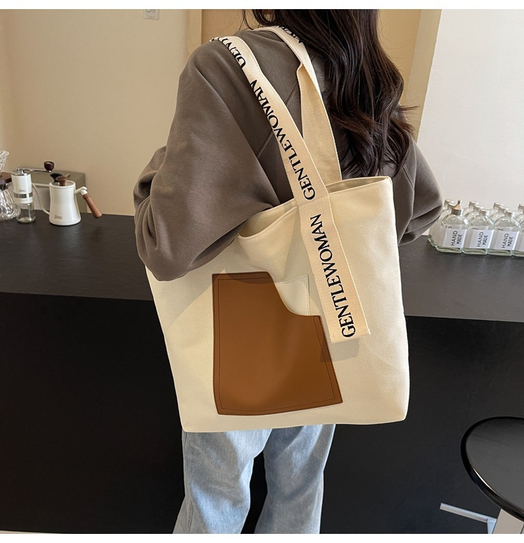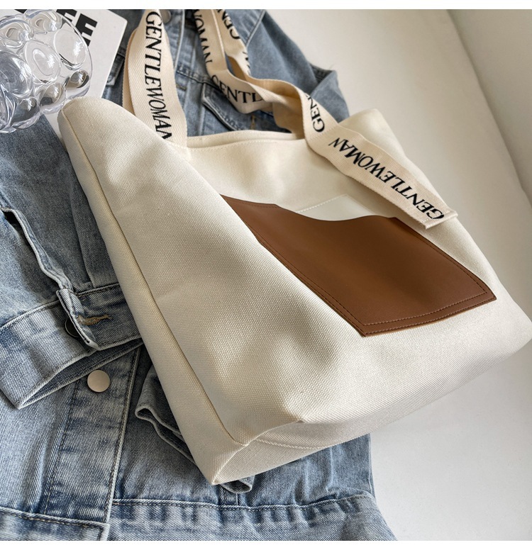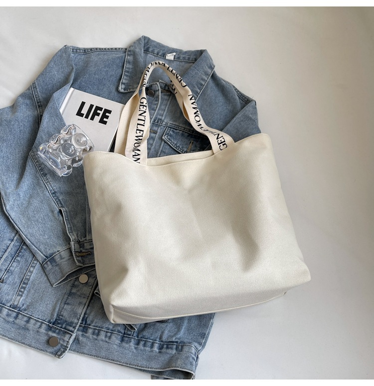 Fábrica directa tote bolsas de lona de niñas bolsas de hombro resistentes al desgaste simple letras impresión bolsas de comercio exterior transfronterizas