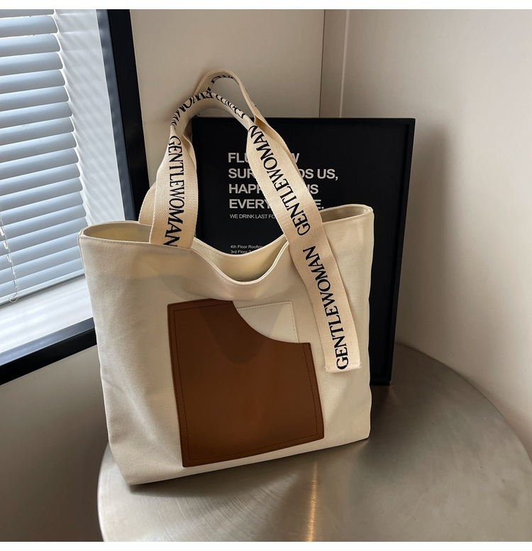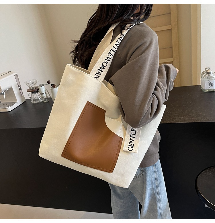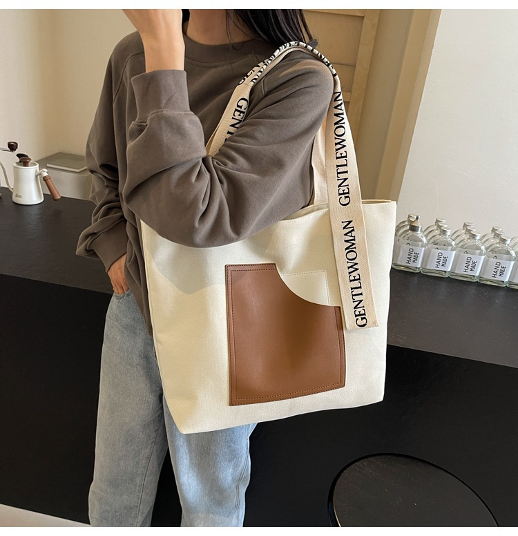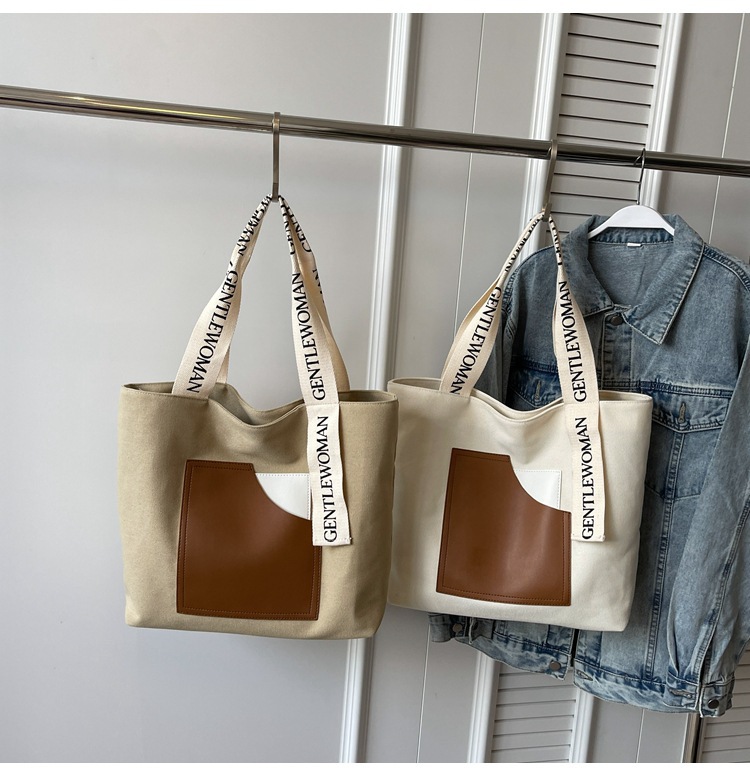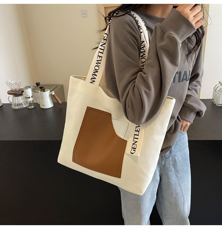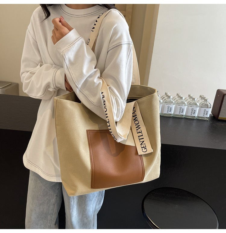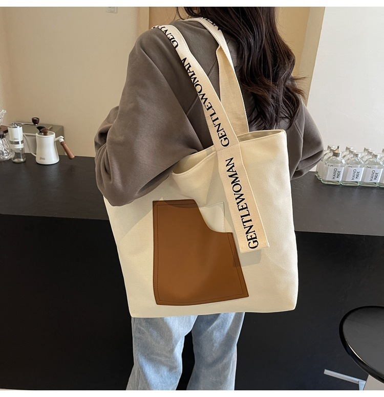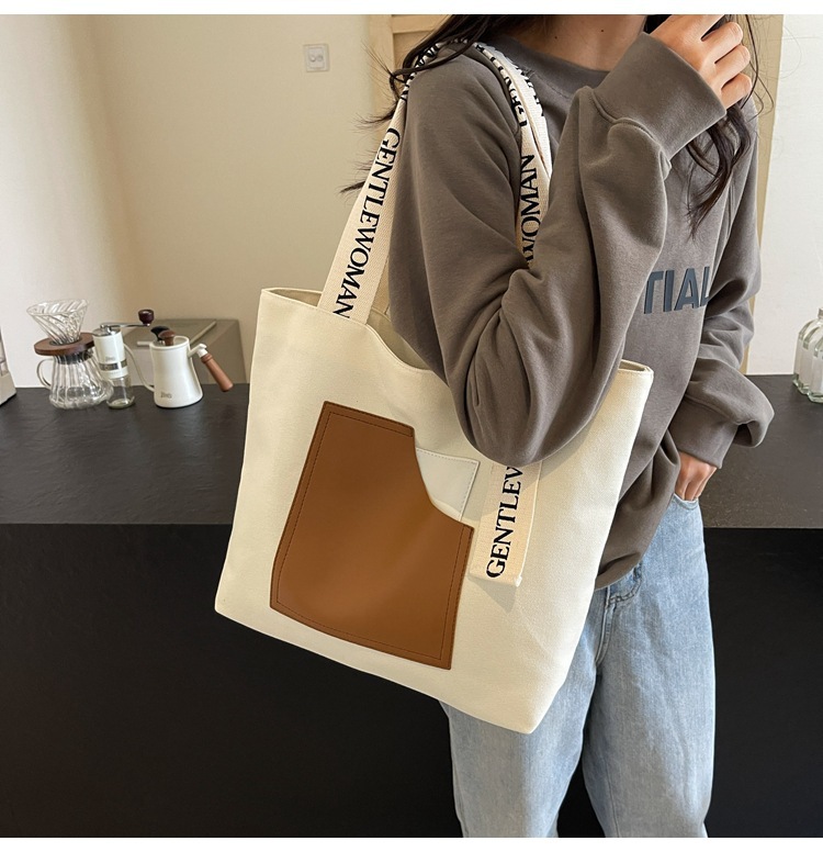 Fábrica directa tote bolsas de lona de niñas bolsas de hombro resistentes al desgaste simple letras impresión bolsas de comercio exterior transfronterizas