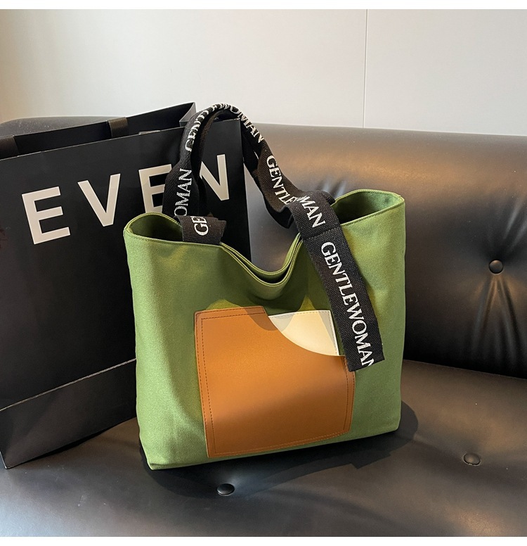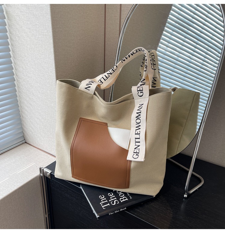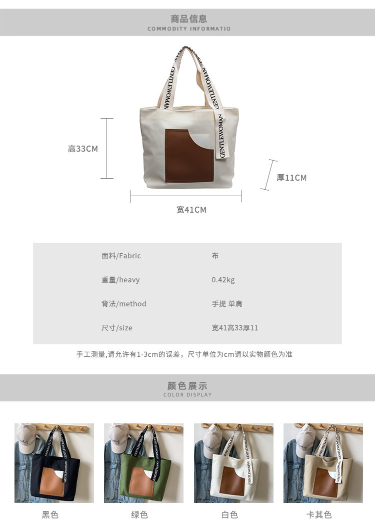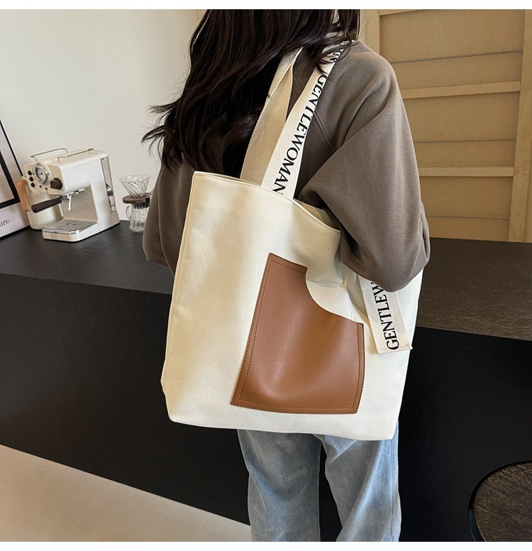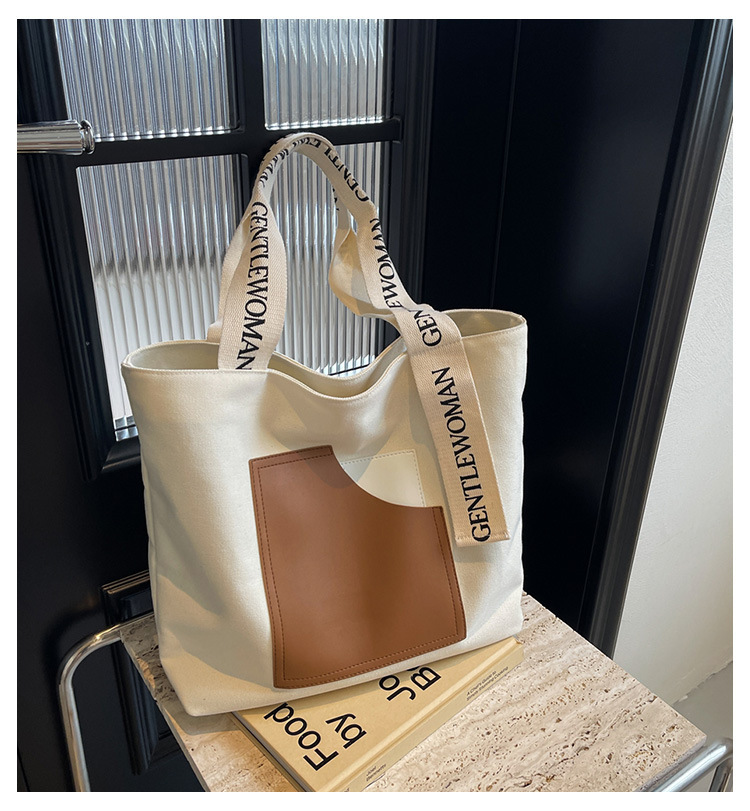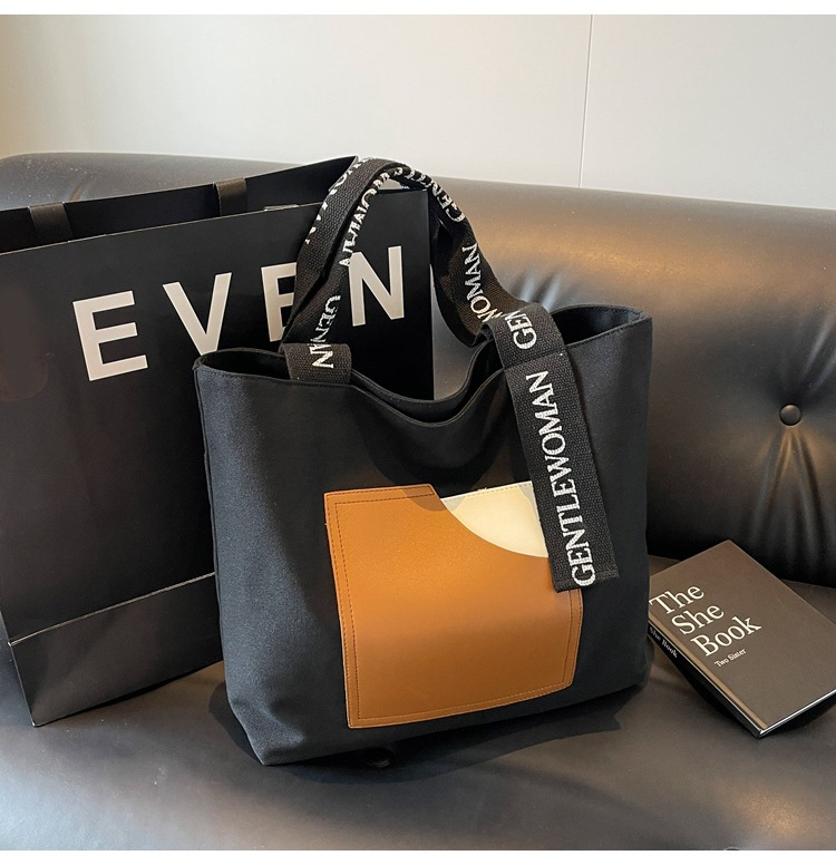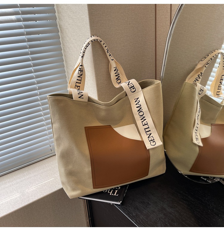 Fábrica directa tote bolsas de lona de niñas bolsas de hombro resistentes al desgaste simple letras impresión bolsas de comercio exterior transfronterizas