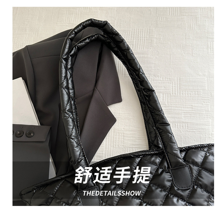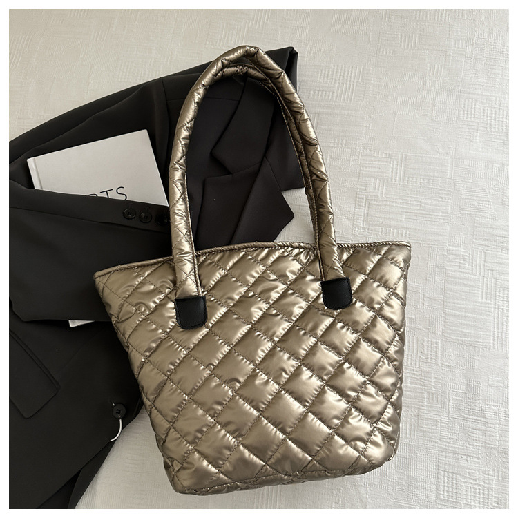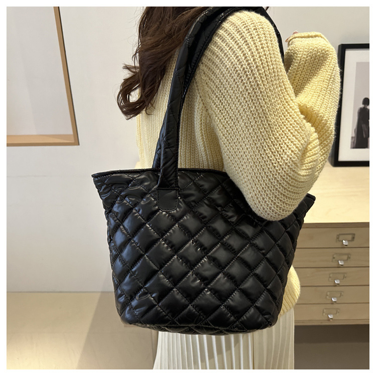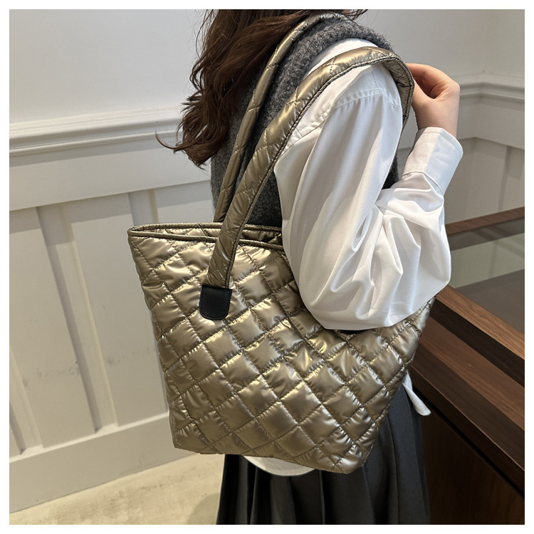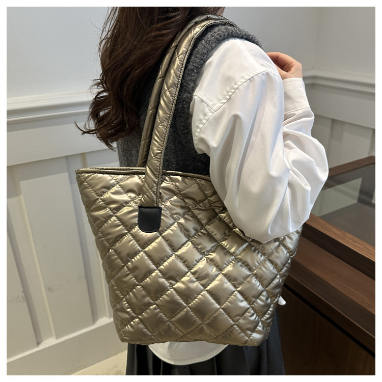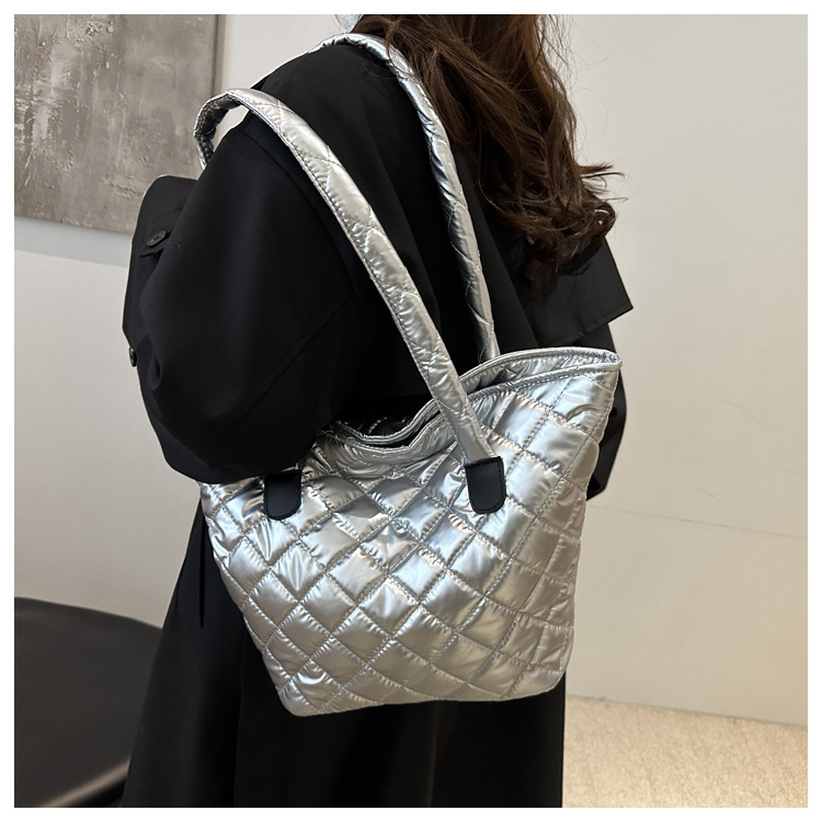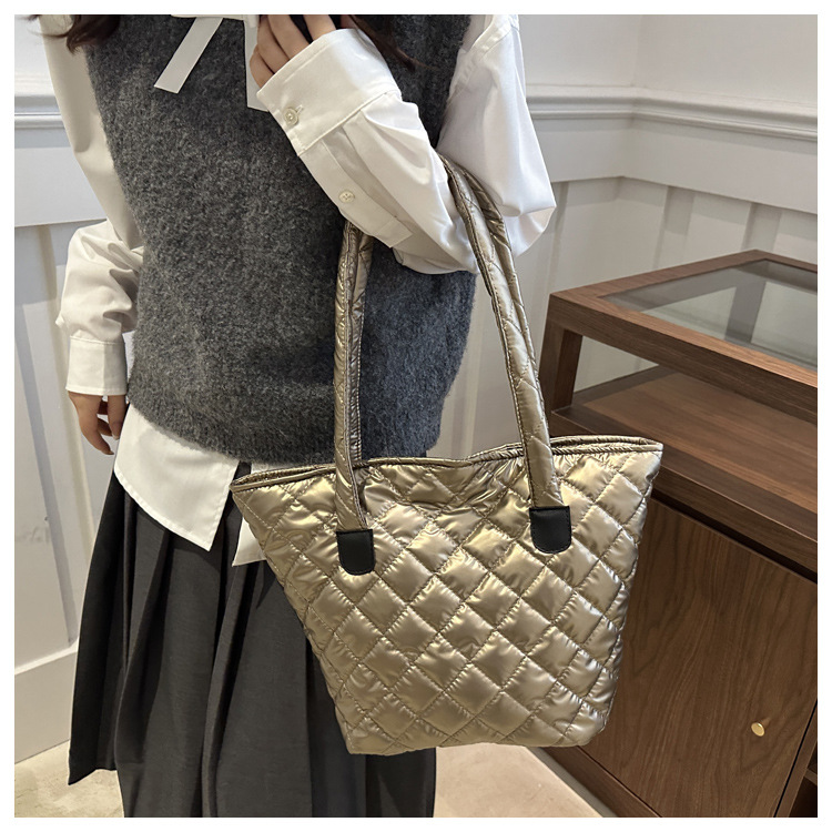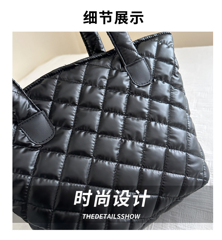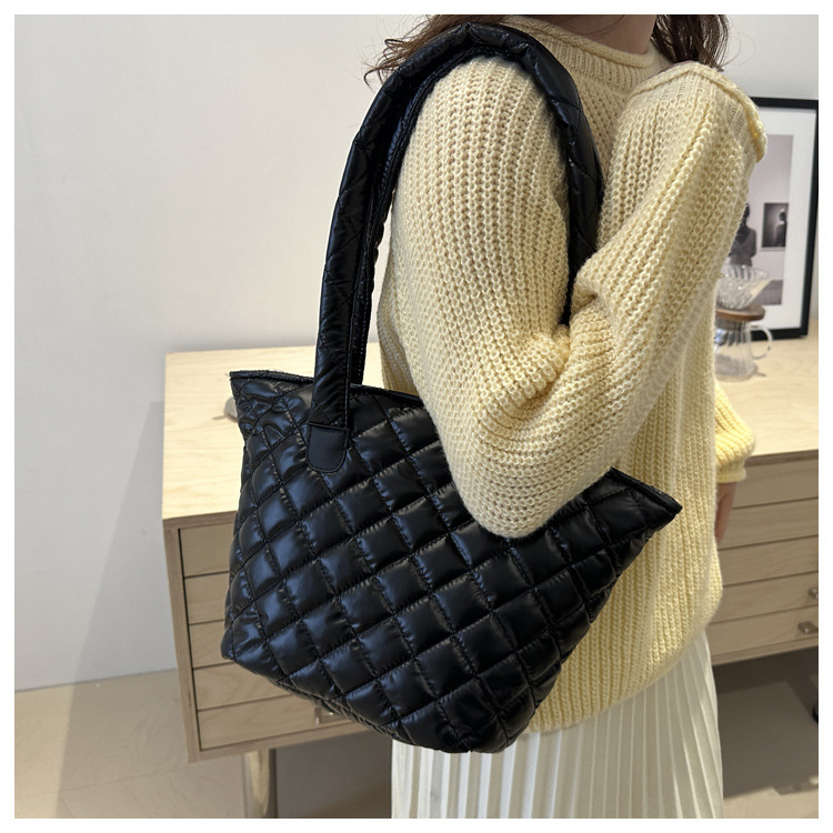 Bolsa de cubo de gran capacidad para mujeres otoño / invierno 2024 nueva personalidad en tela de plumón bolsa de hombro bolsa de viaje