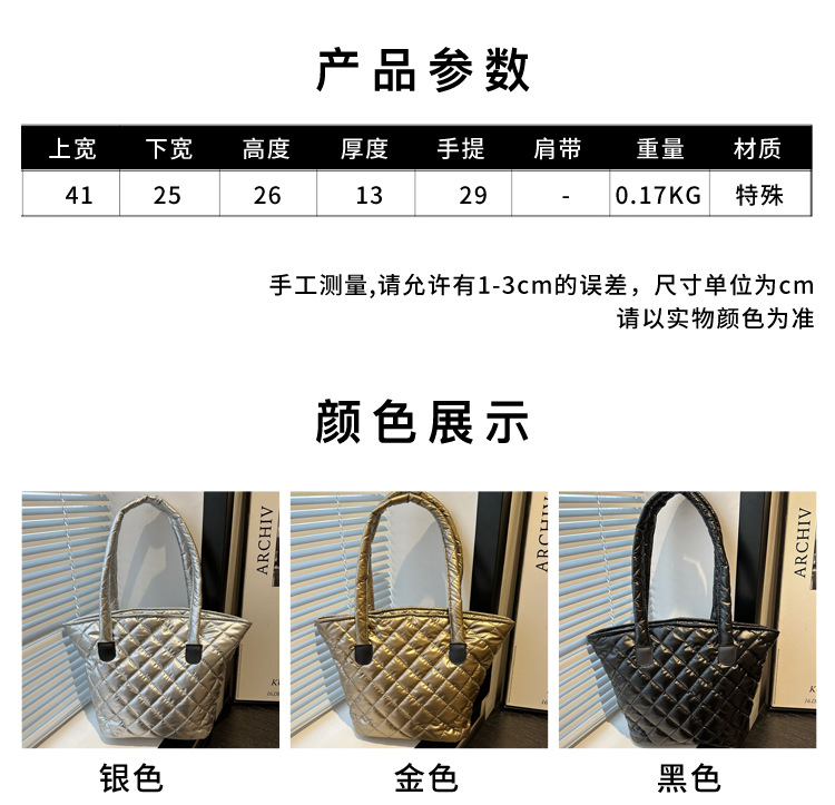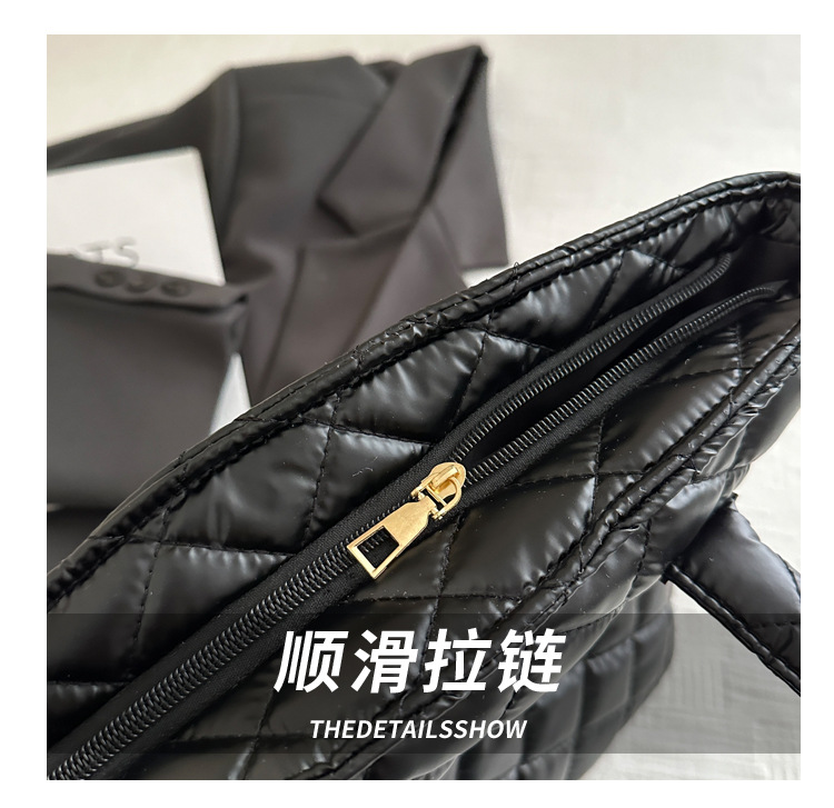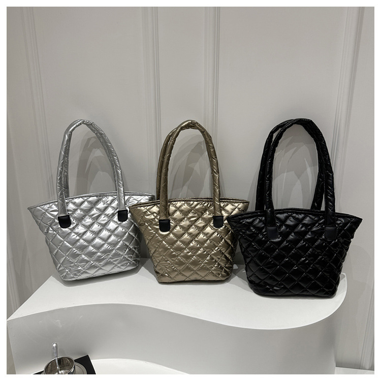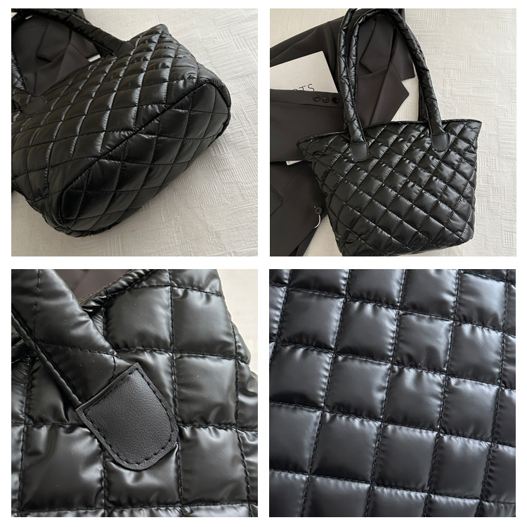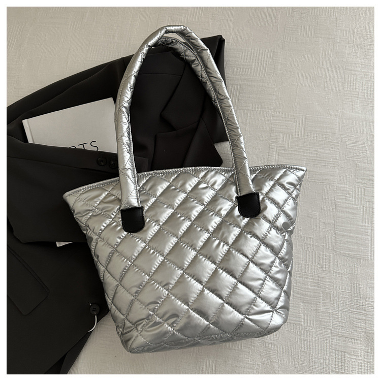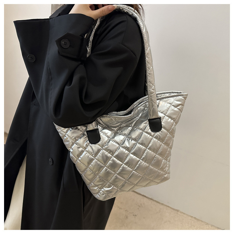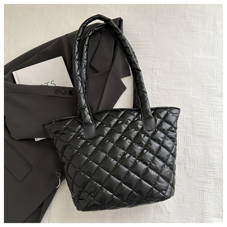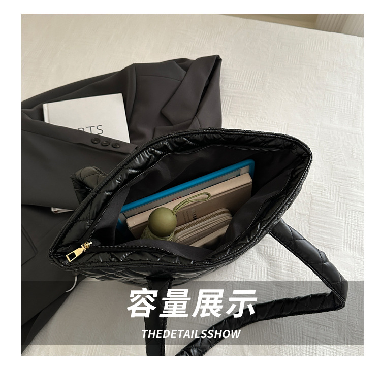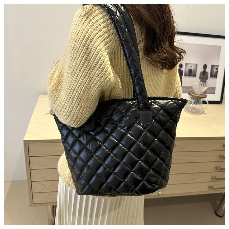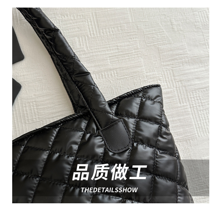 Bolsa de cubo de gran capacidad para mujeres otoño / invierno 2024 nueva personalidad en tela de plumón bolsa de hombro bolsa de viaje