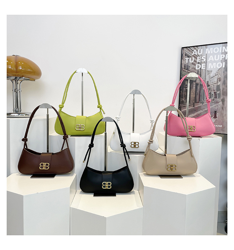 Bolso de mano de cadena de color sólido debajo de la axila para mujeres 2024 nuevo estilo estilo extranjero bolso de hombro de moda textura temperamento mochila casual