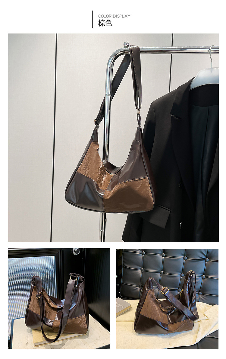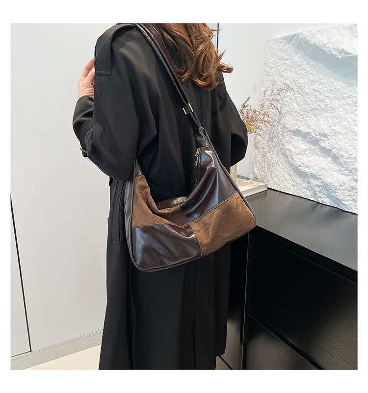 Coreano de tendencia de gran capacidad relajada sensación de moda bolsa de tote otoño / invierno 2024 nuevo estilo extranjero empalme bolso de hombro