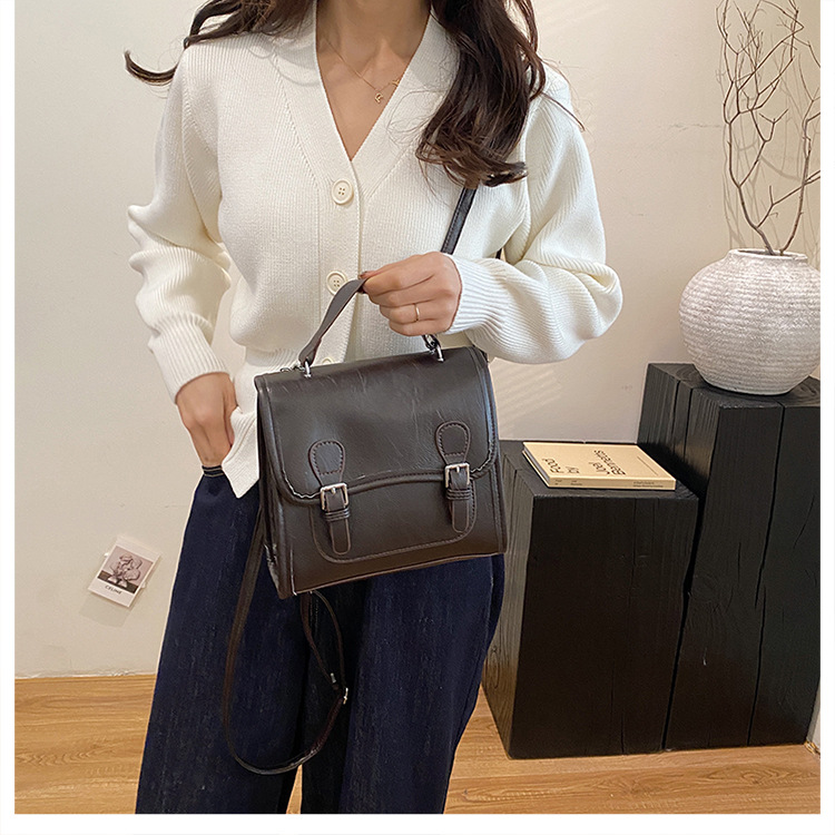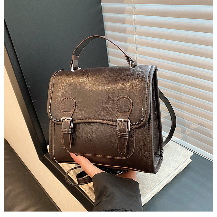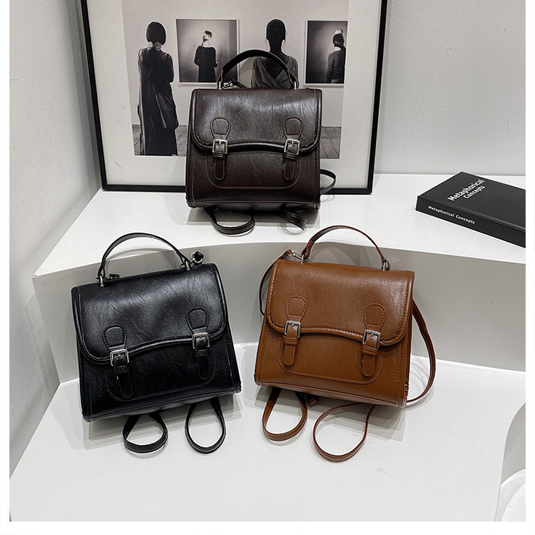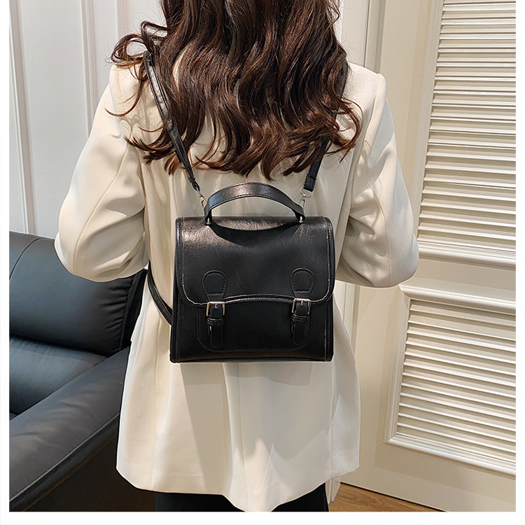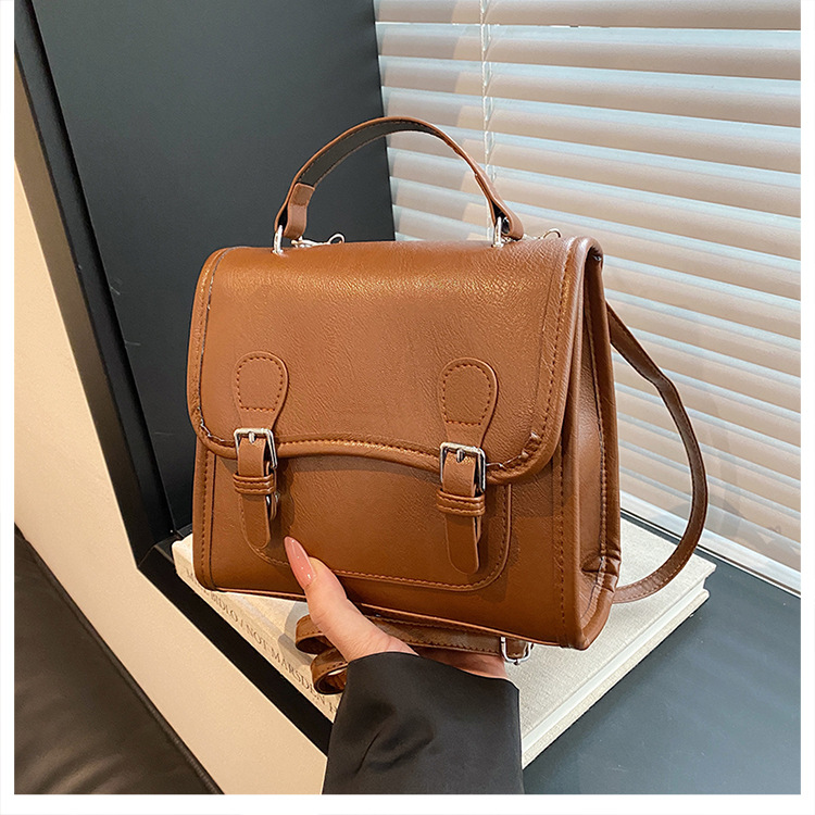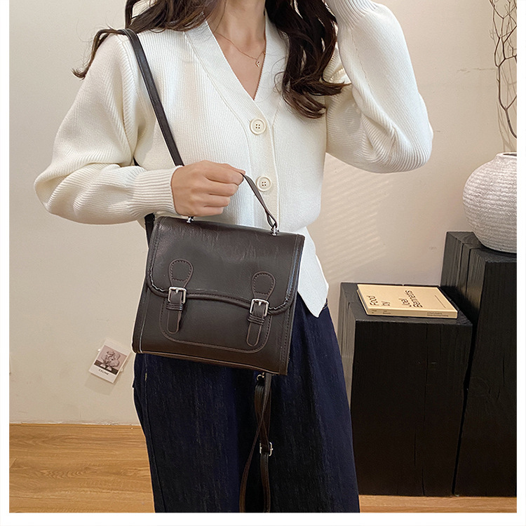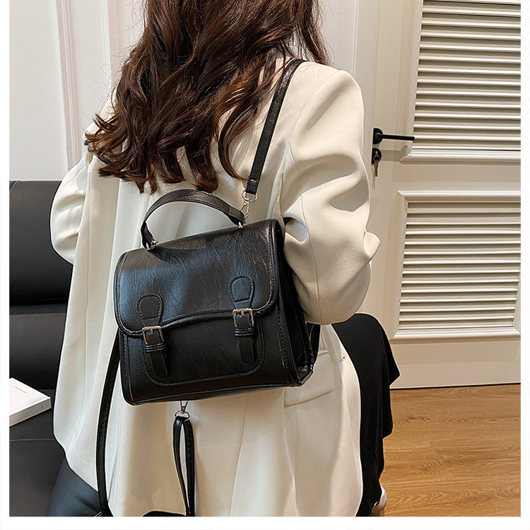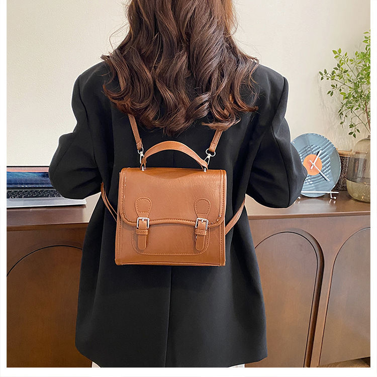 Colegio retro coreano doble hebilla estilo británico 2024 literatura y arte ocio de gran capacidad de moda textura mochila de hombro