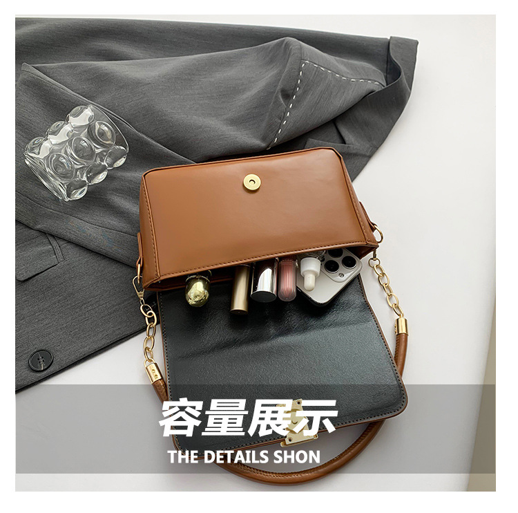 Bolso cuadrado pequeño de cuero suave cadena 2024 moda otoño e invierno nuevo bolso de mensajero literario color caramelo bolso de hombro de estilo perezoso
