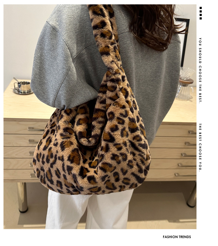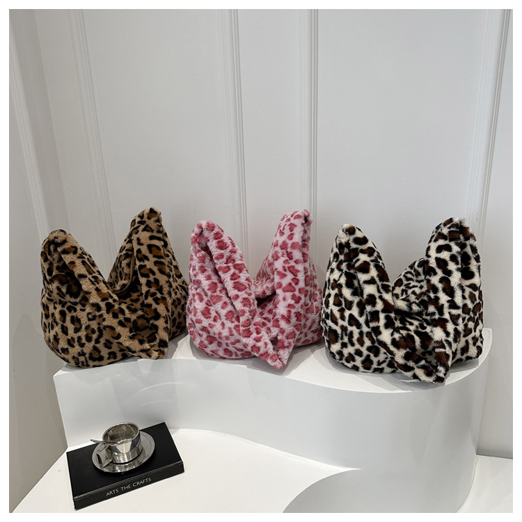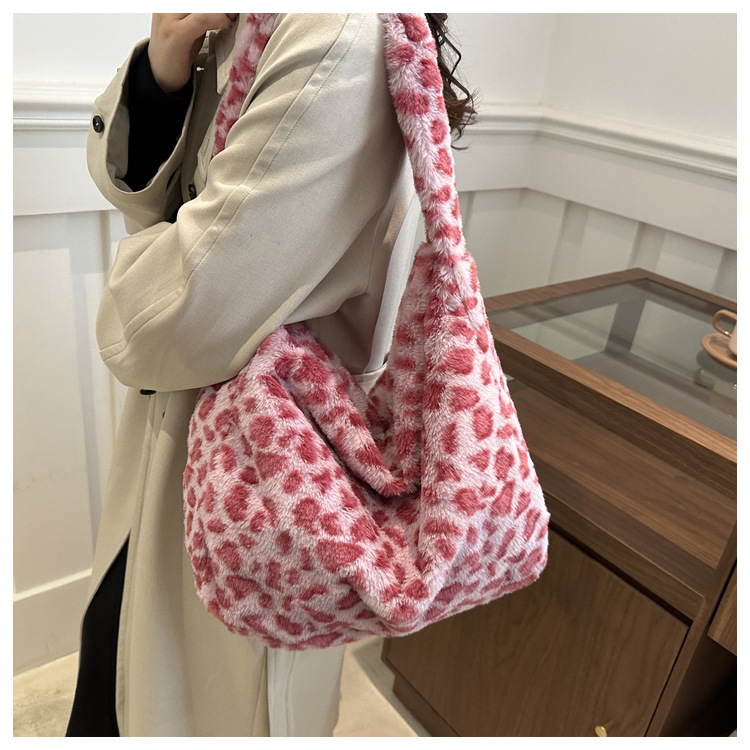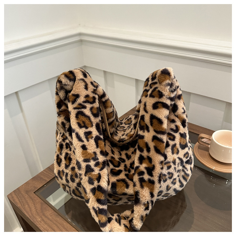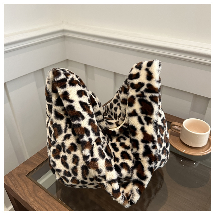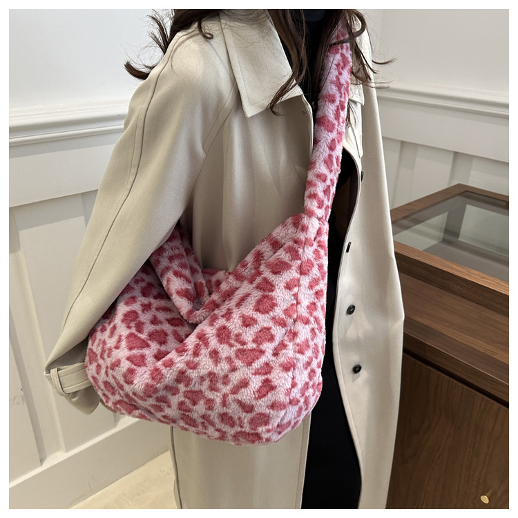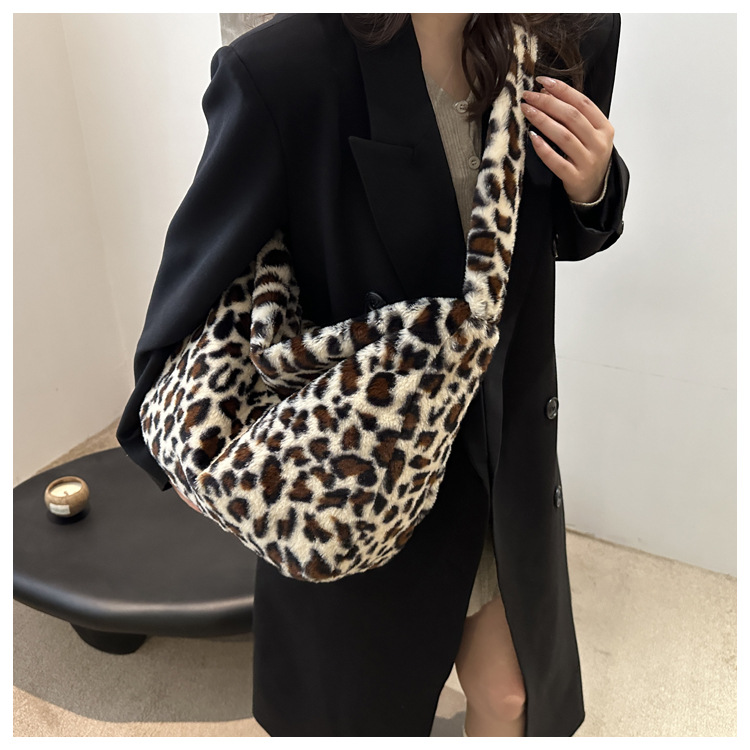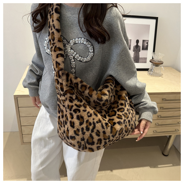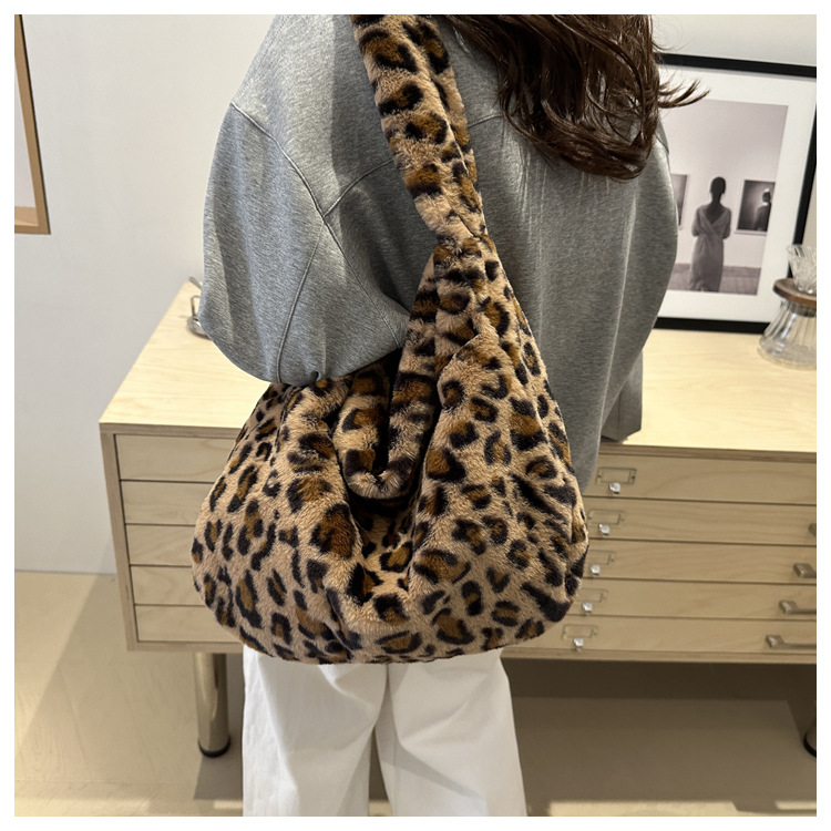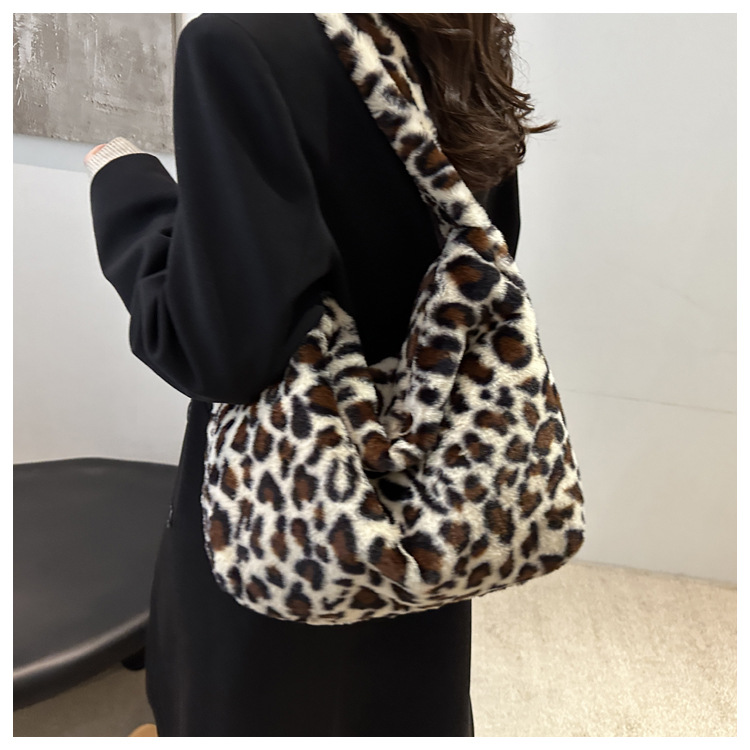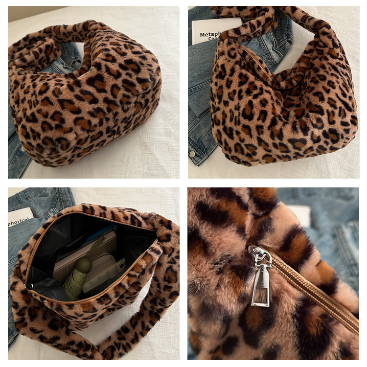 Leopardo tela de peluche bolsas de mujer otoño y invierno nueva moda literatura de hombro bolsas de brazo perezosas moda bolsas de mano de lana