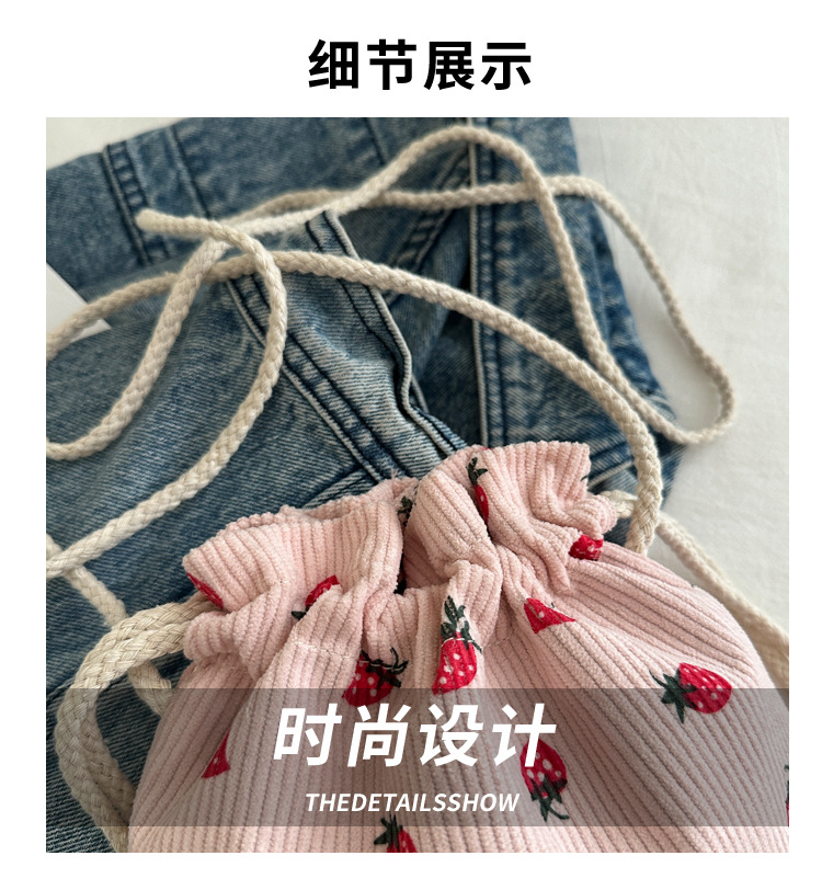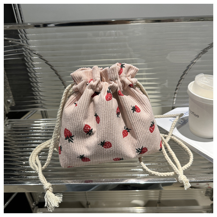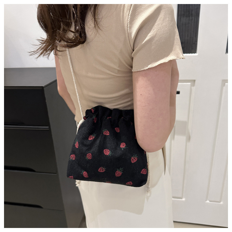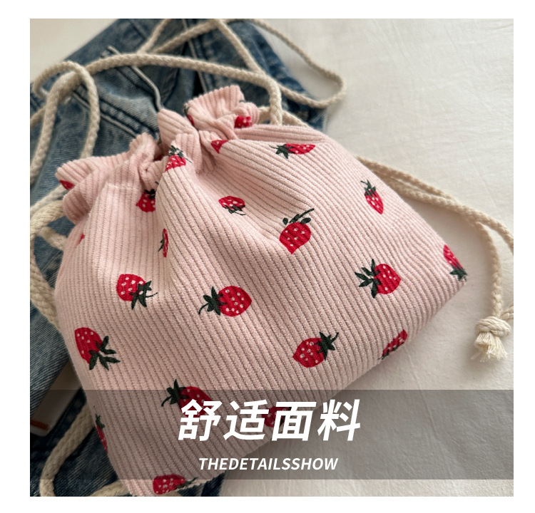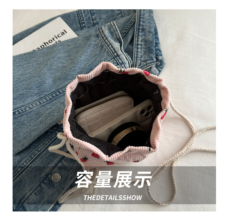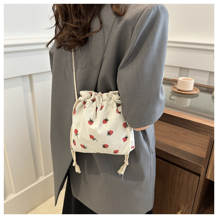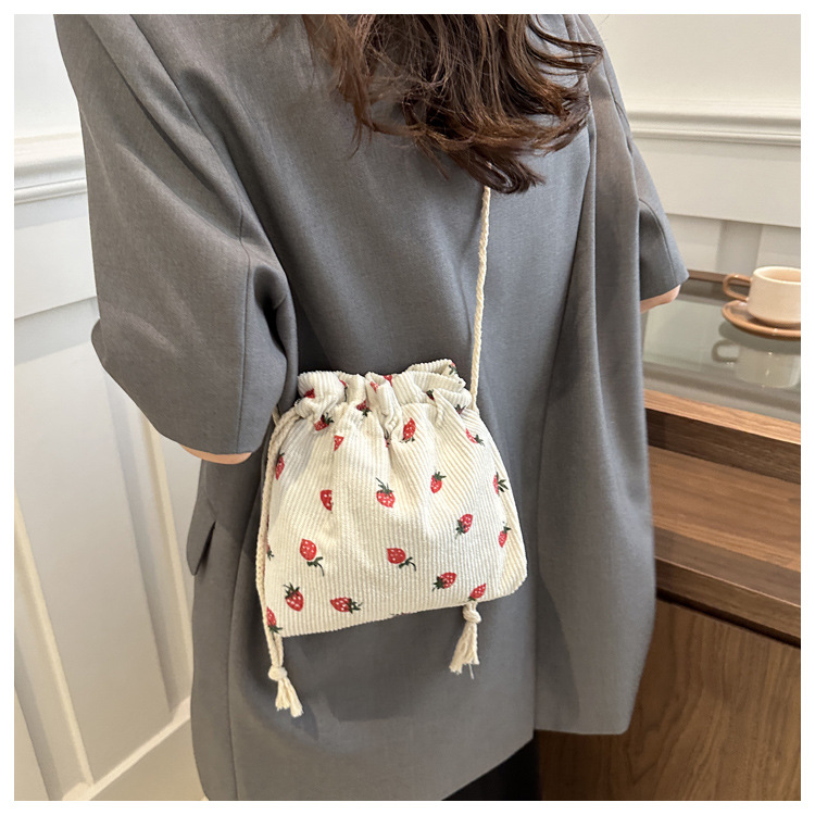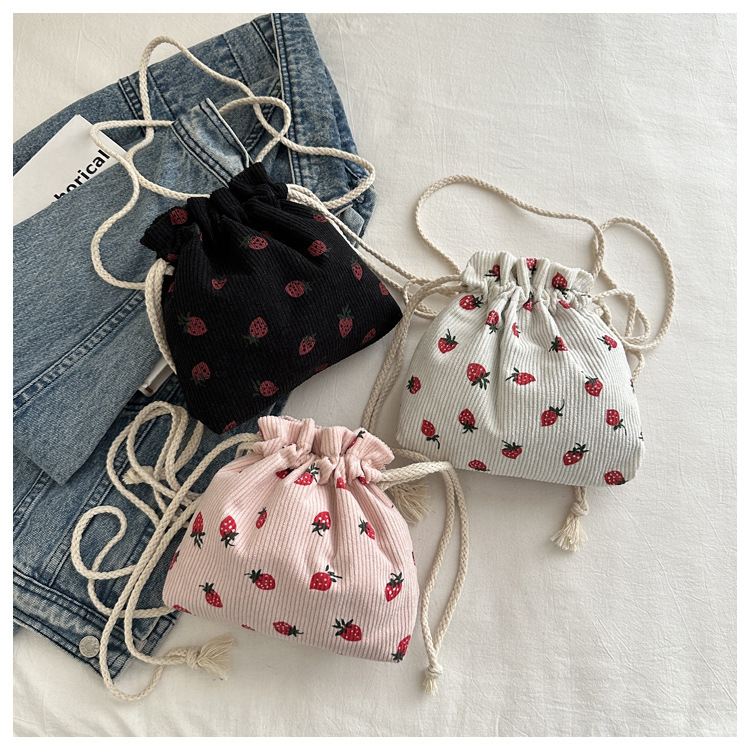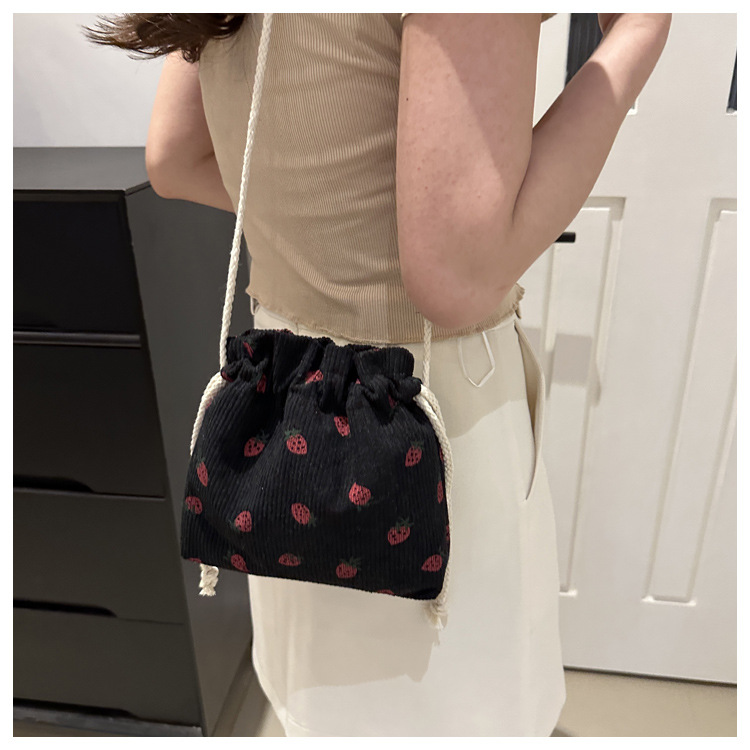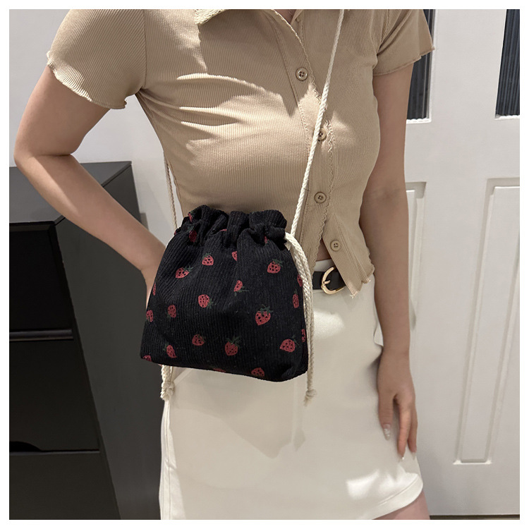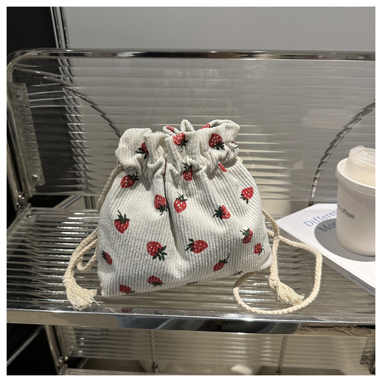 Este año, la moda impresa encantadora fresas mini bolso de balde 2024 nuevo verano versátil mochila de hombro
