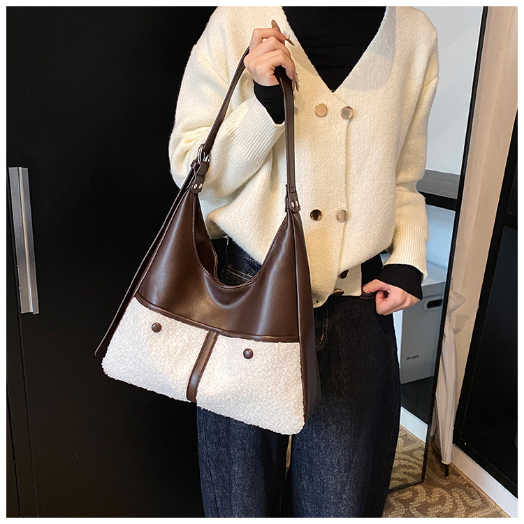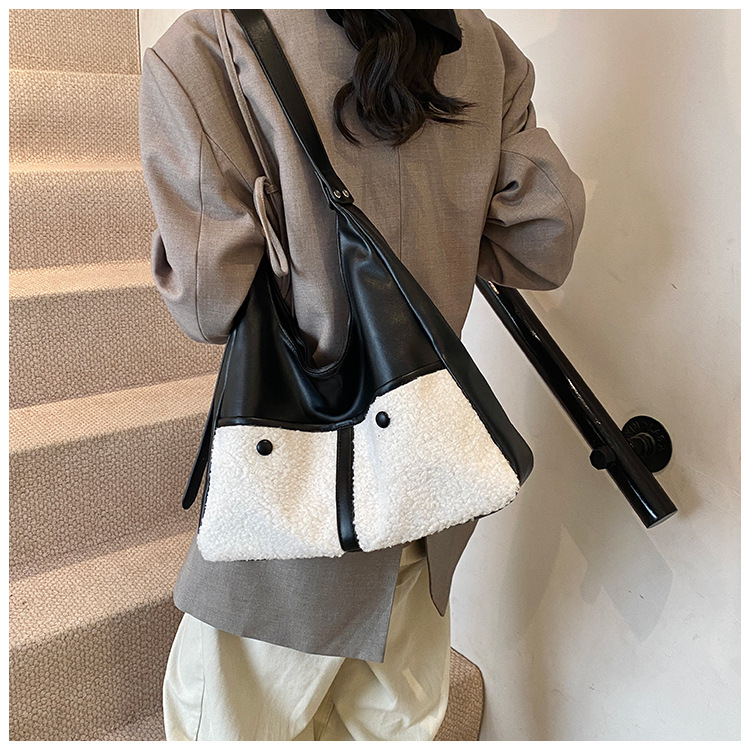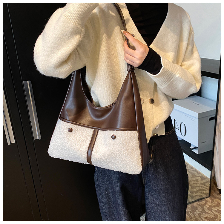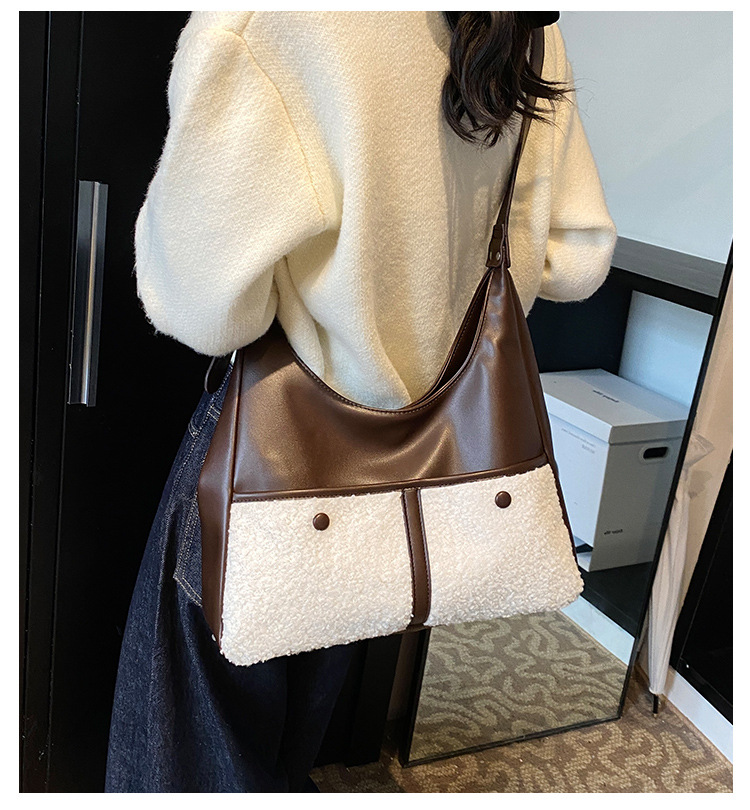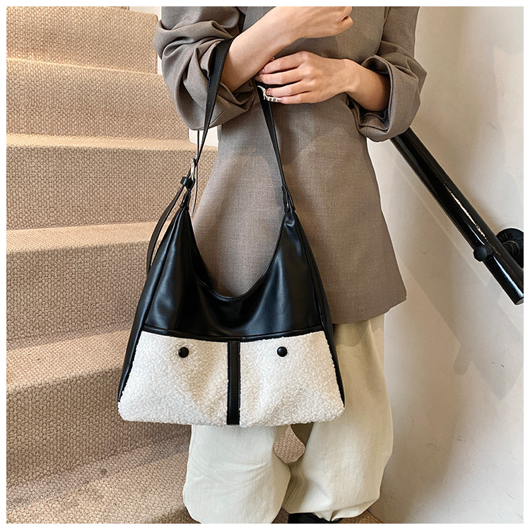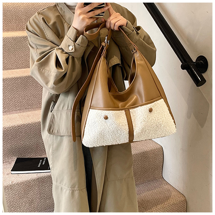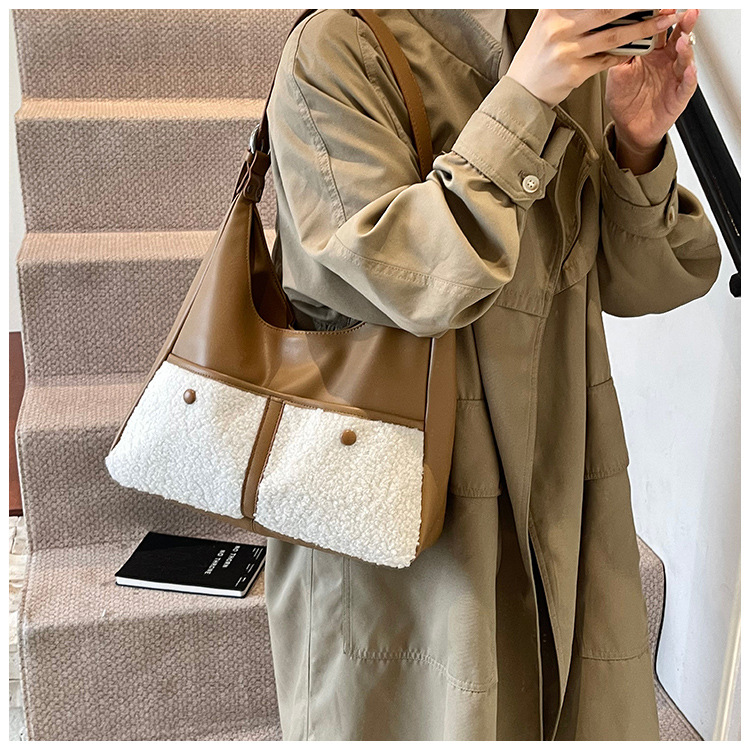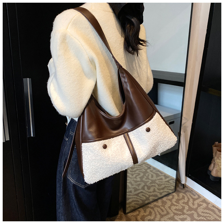 Color contrastante empalme moda bolso de peluche bolso de mujer 2024 invierno nuevo paquete de hombro de gran capacidad bolso de brazo de viaje