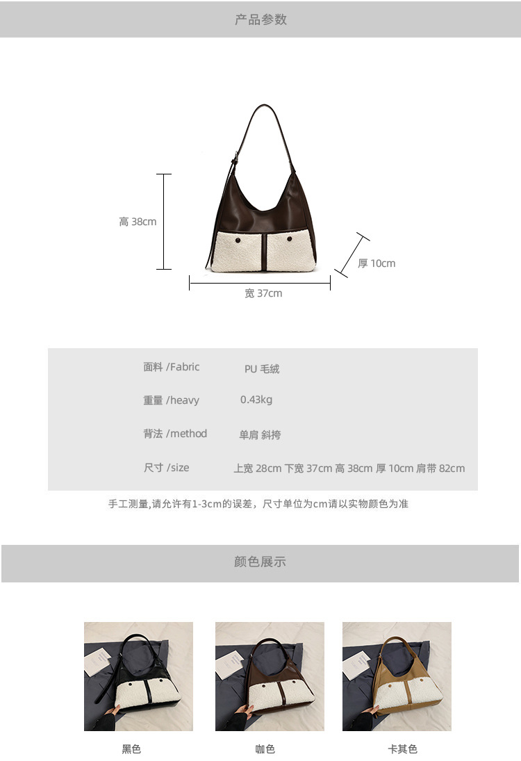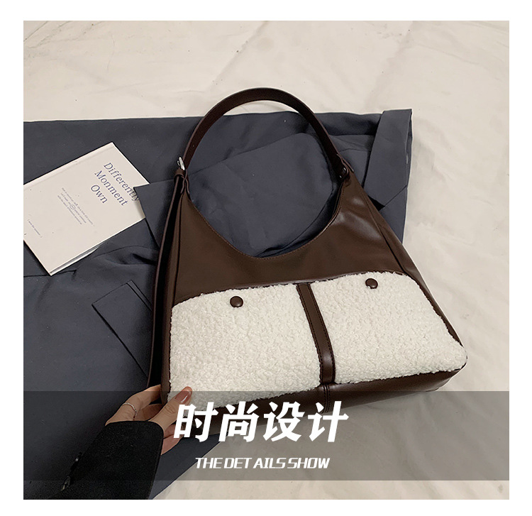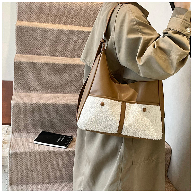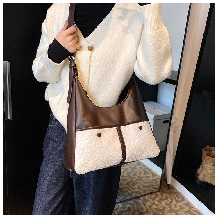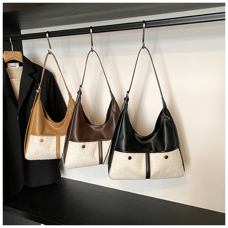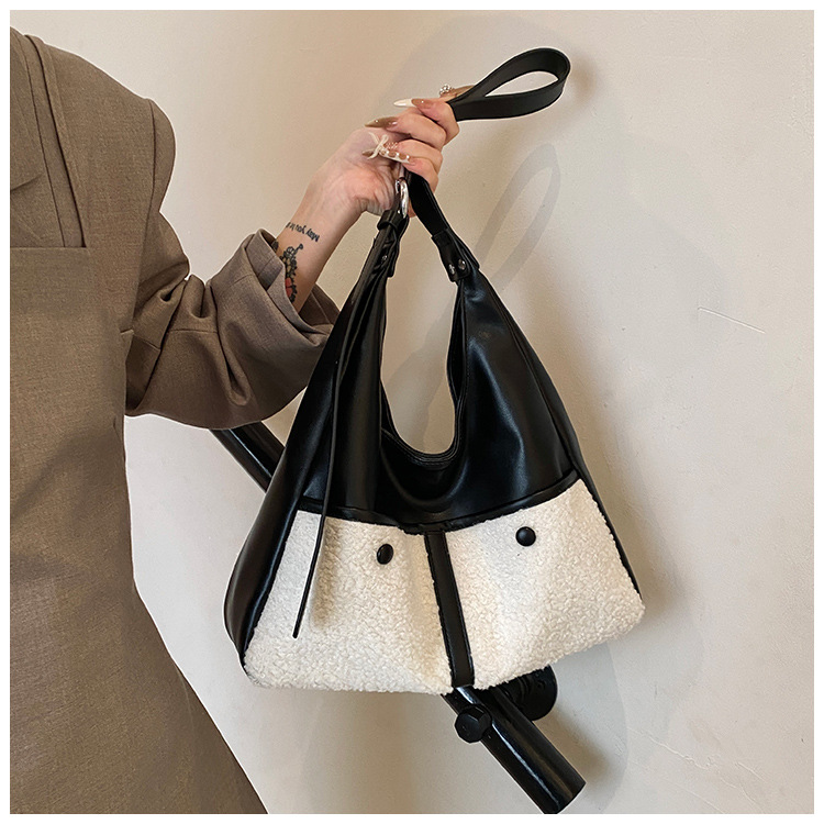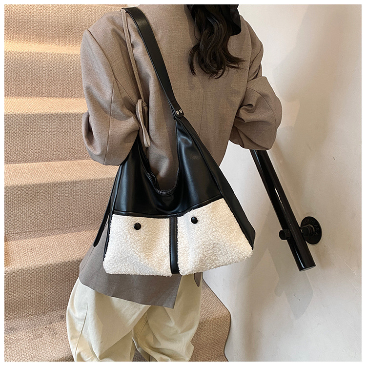 Color contrastante empalme moda bolso de peluche bolso de mujer 2024 invierno nuevo paquete de hombro de gran capacidad bolso de brazo de viaje