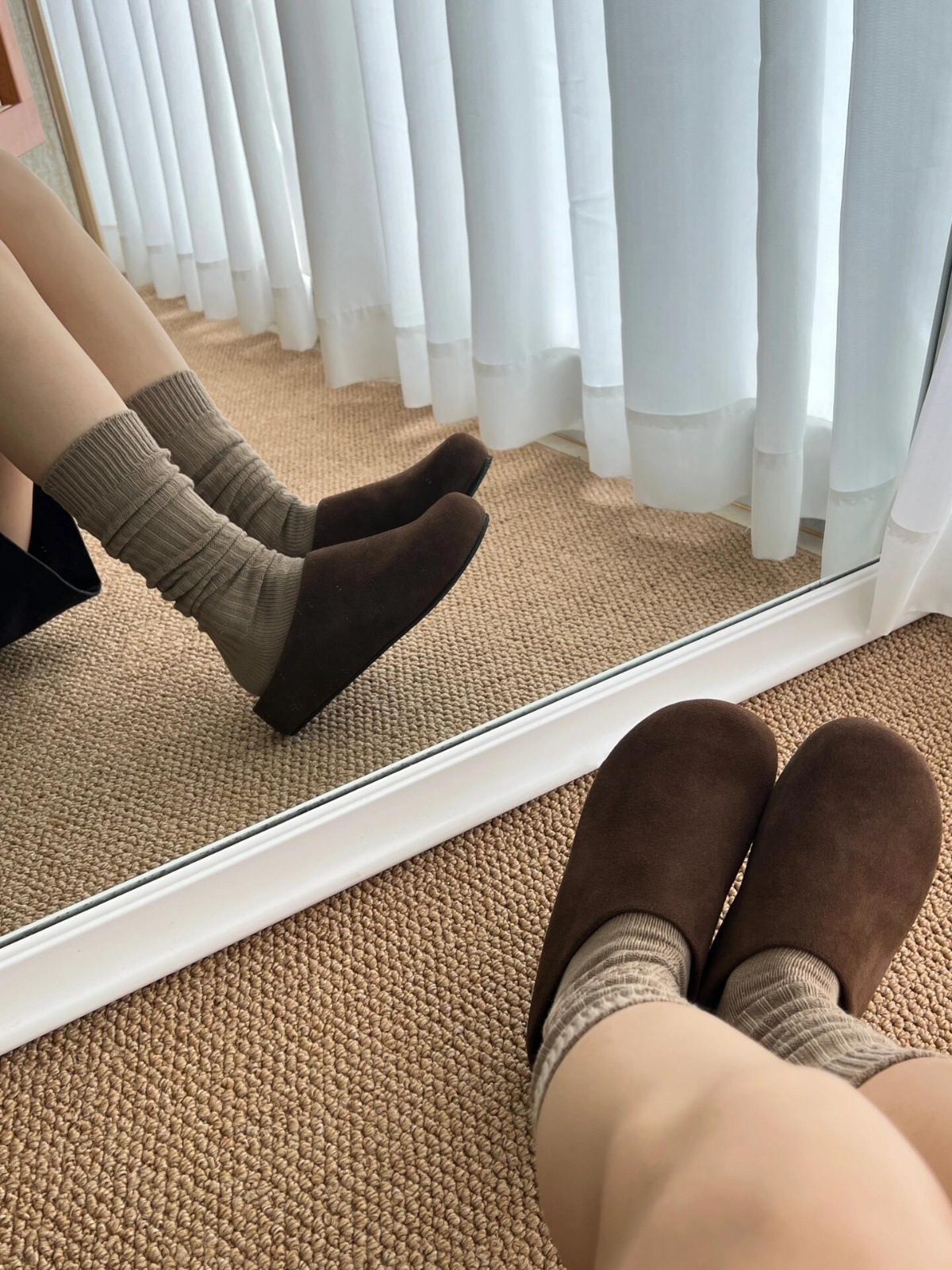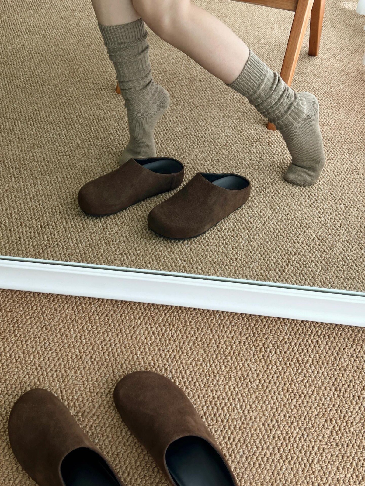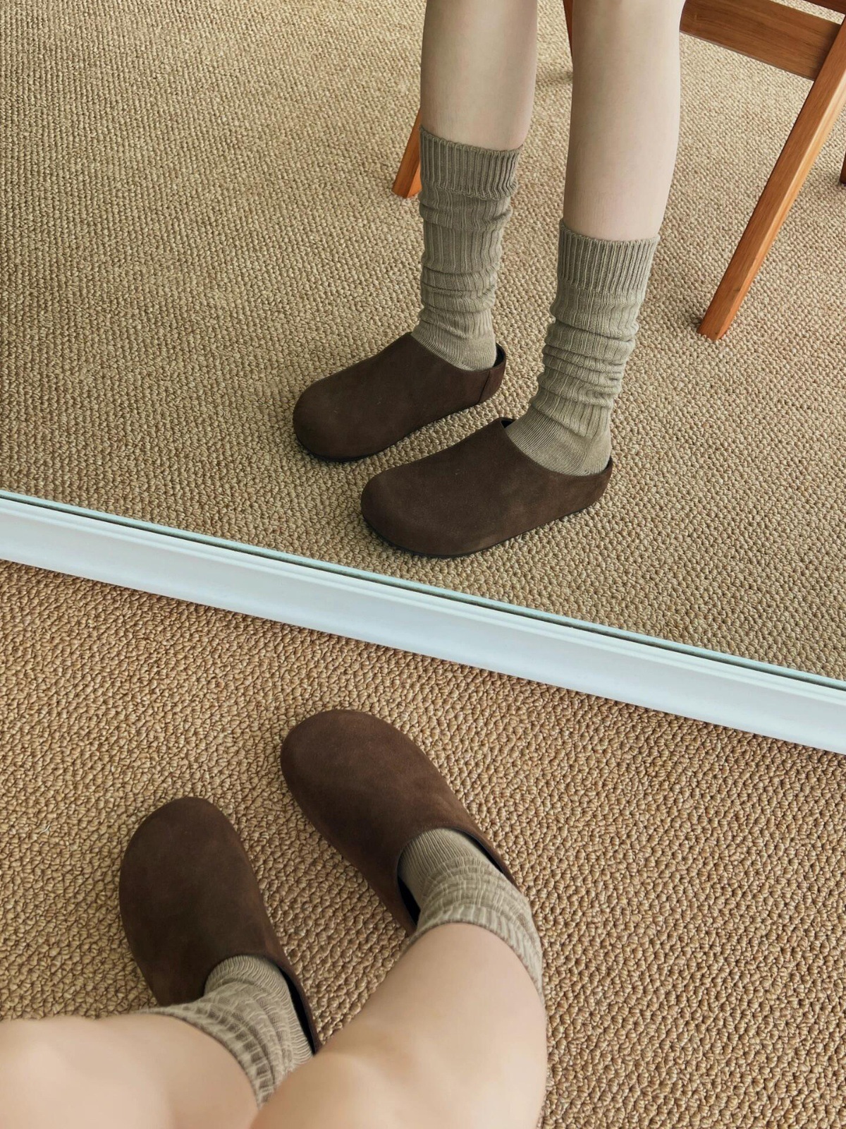 Zapatos Sambo Burken todo incluido para mujeres de cuero auténtico y veludo otoño y invierno nuevos zapatillas de pesca de corcho de fondo grueso medio retro hombre