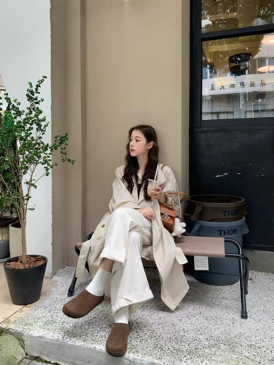 Invierno de cordero coreano zapatos de mujer con zapatos de frijol y algodón retro con una sola pie plana.
