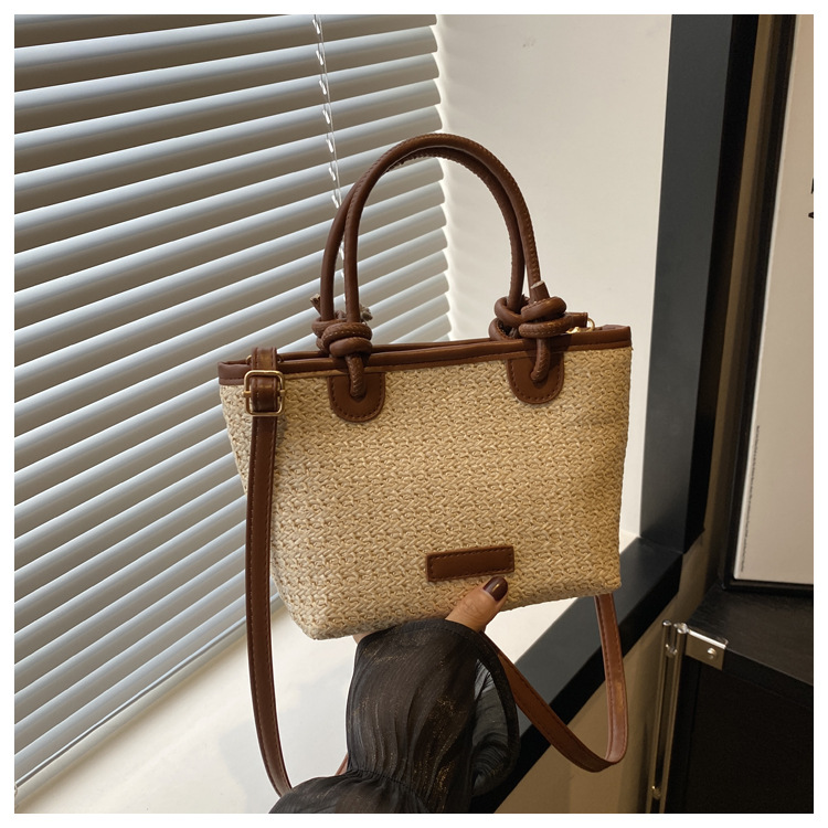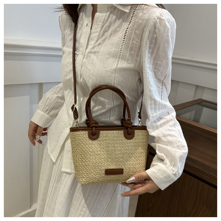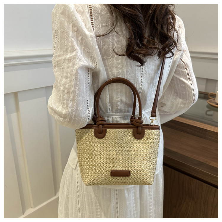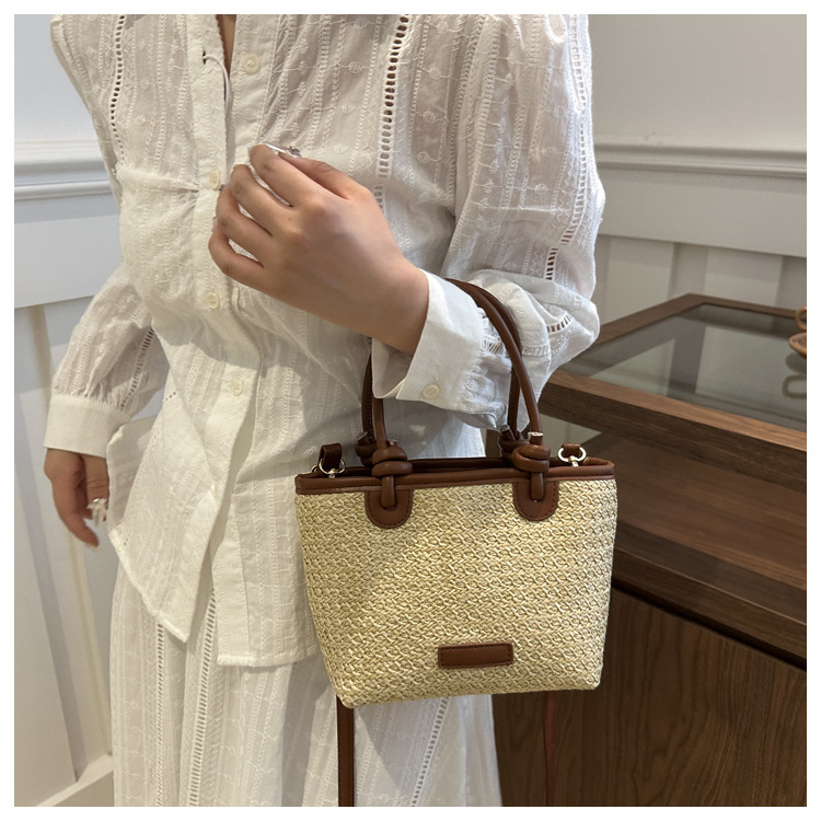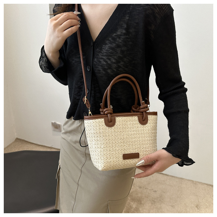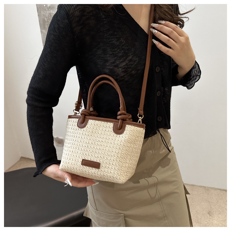 Bolso tejido de paja estilo playa de vacaciones de verano bolso de mensajero portátil 2024 nuevo estilo nudo de cuerda de aire extranjero bolso de canasta de verduras bolso tejido