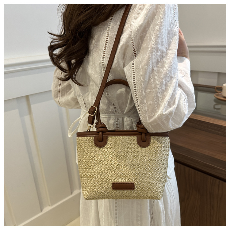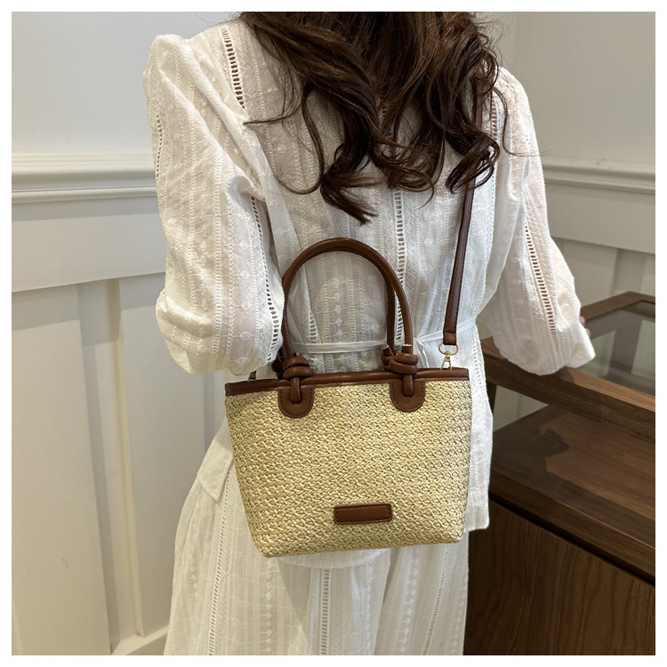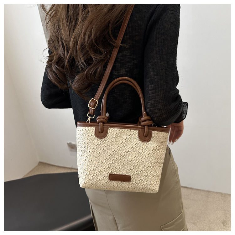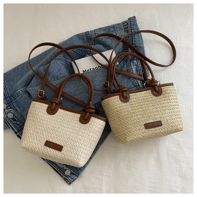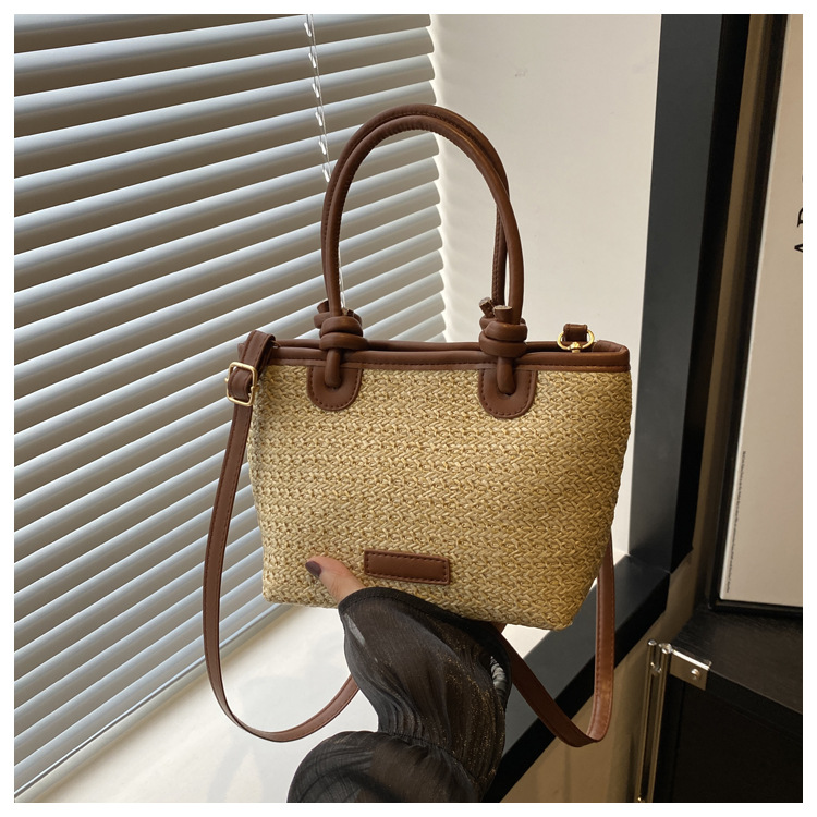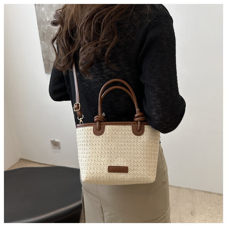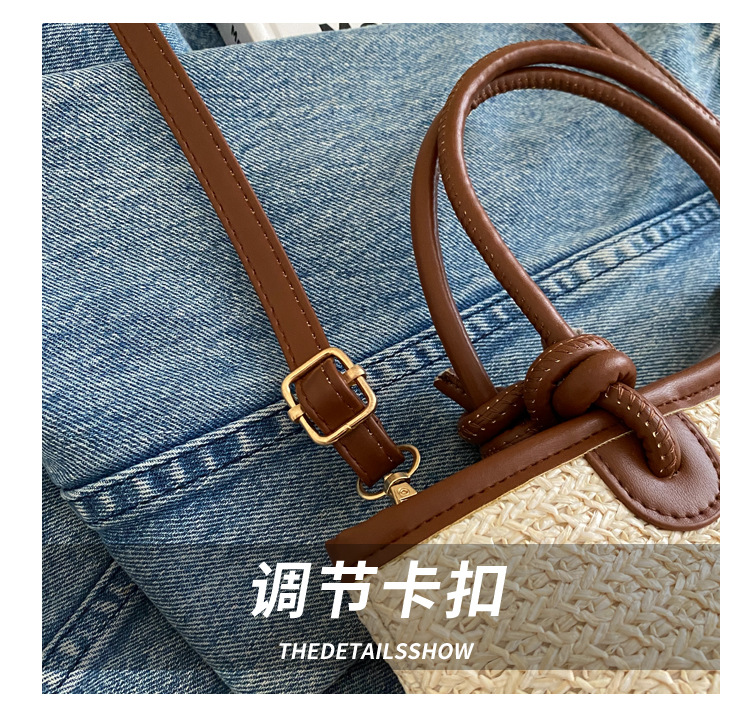 Bolso tejido de paja estilo playa de vacaciones de verano bolso de mensajero portátil 2024 nuevo estilo nudo de cuerda de aire extranjero bolso de canasta de verduras bolso tejido