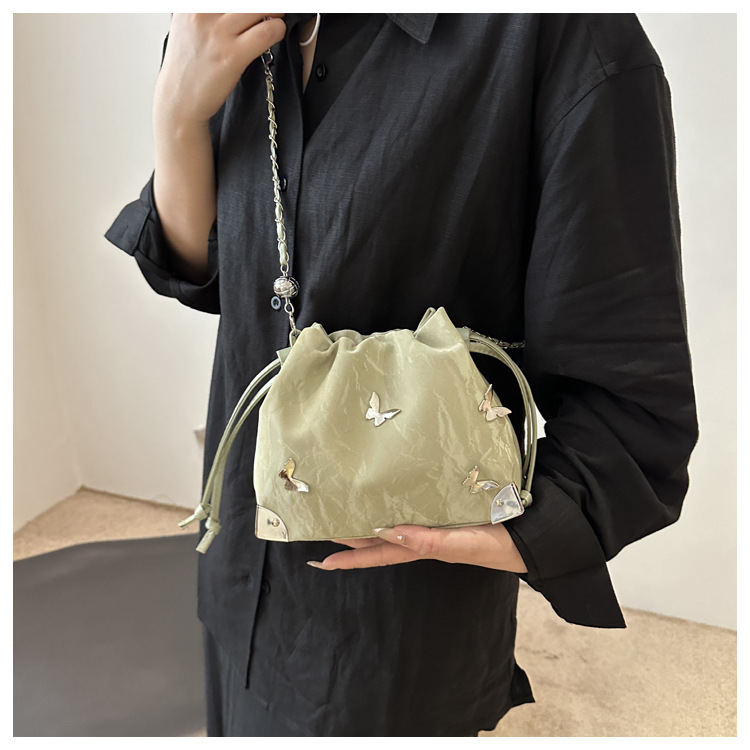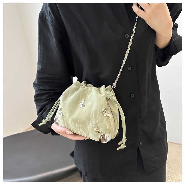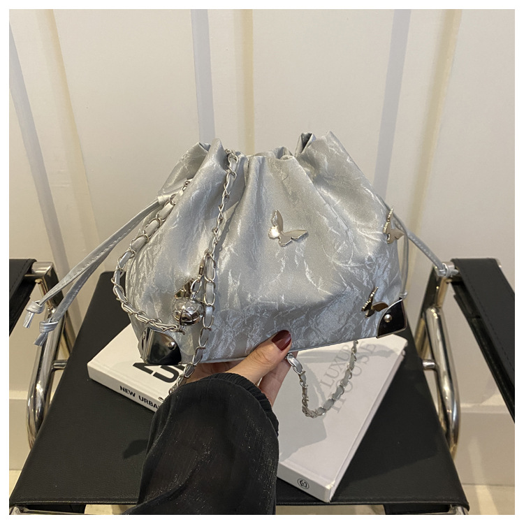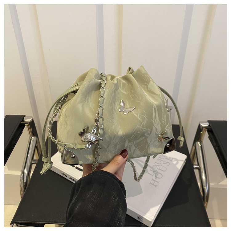 Bolso de cubo de textura transfronteriza 2025 nuevo bolso de mujer bolso de hombro esmerilado retro bolso de mensajero con cadena de cuentas